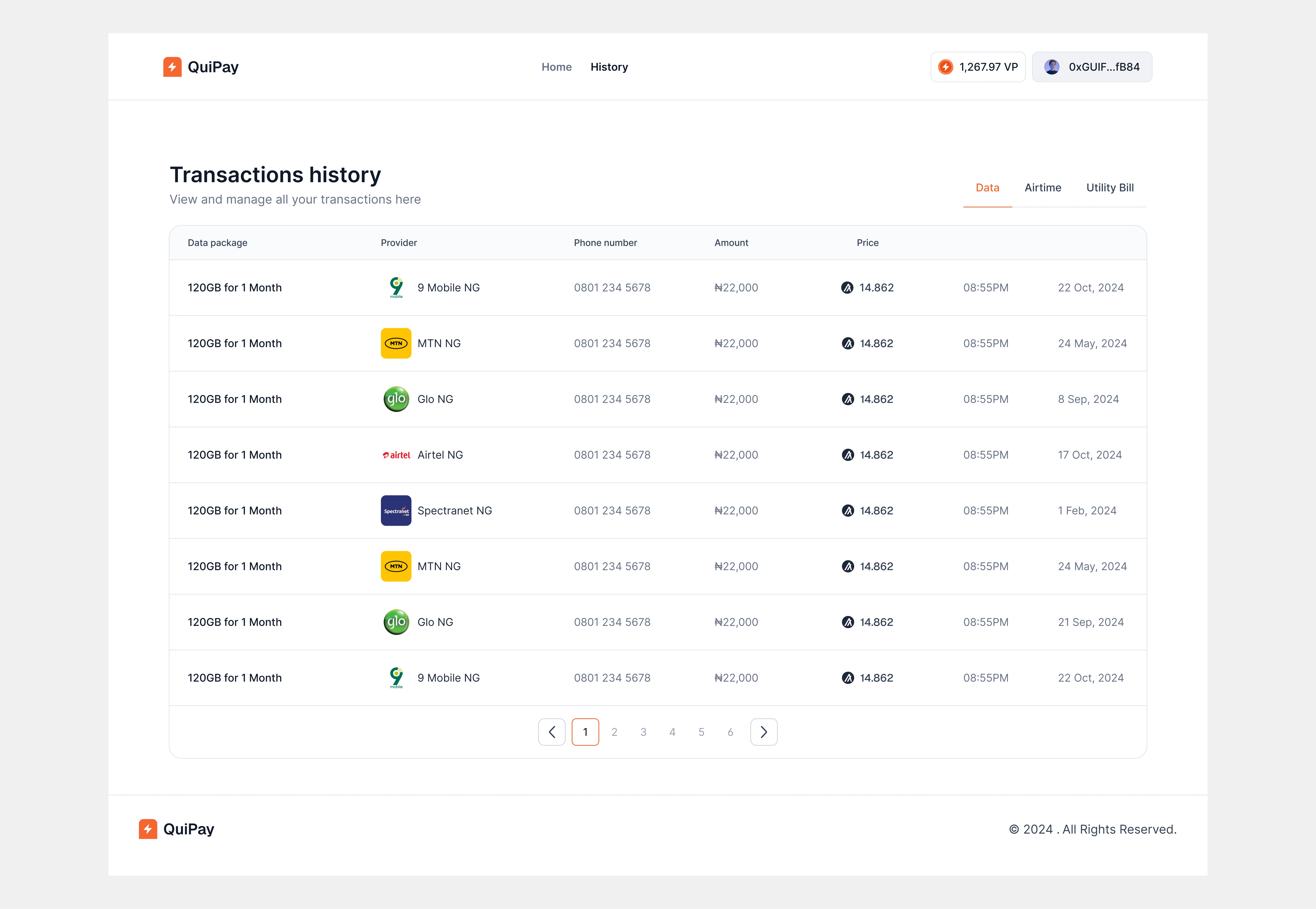I led the end-to-end design of QuiPay's MVP, turning blockchain complexity into a seamless experience that felt as familiar. QuiPay was designed to let people pay for airtime, electricity, and internet bills directly with crypto, as easily as using a regular finance app.
