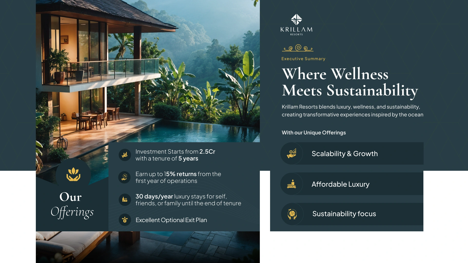 Designed a polished and persuasive fundraising pitch deck for a real estate development company seeking investment for upcoming residential and commercial projects. I structured the content to highlight market potential, financial projections, project scale, and investor returns. The visual design emphasized trust, sophistication, and clarity — blending architectural visuals, data visualization, and premium layout styles to support high-stakes investor conversations.