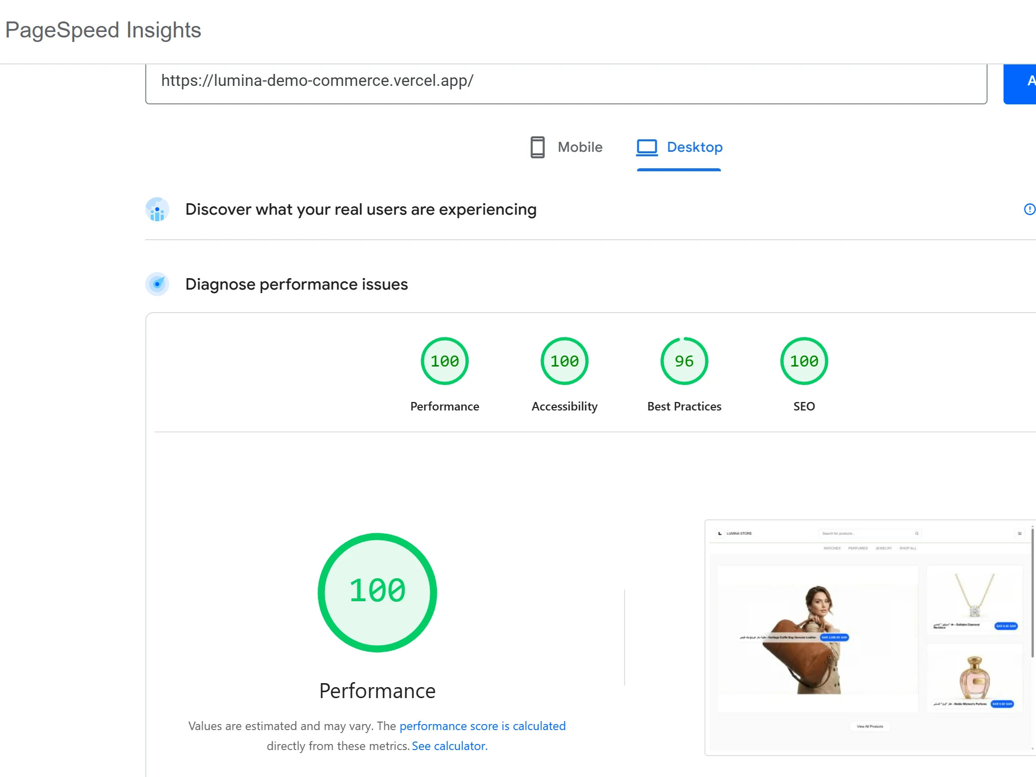 Lumina Store | 100/100 Performance | Next.js & Headless Shopify
