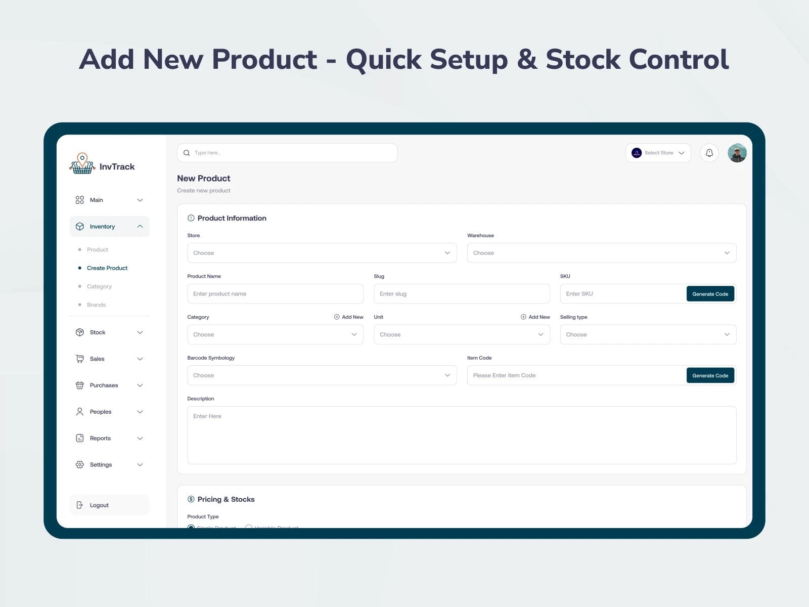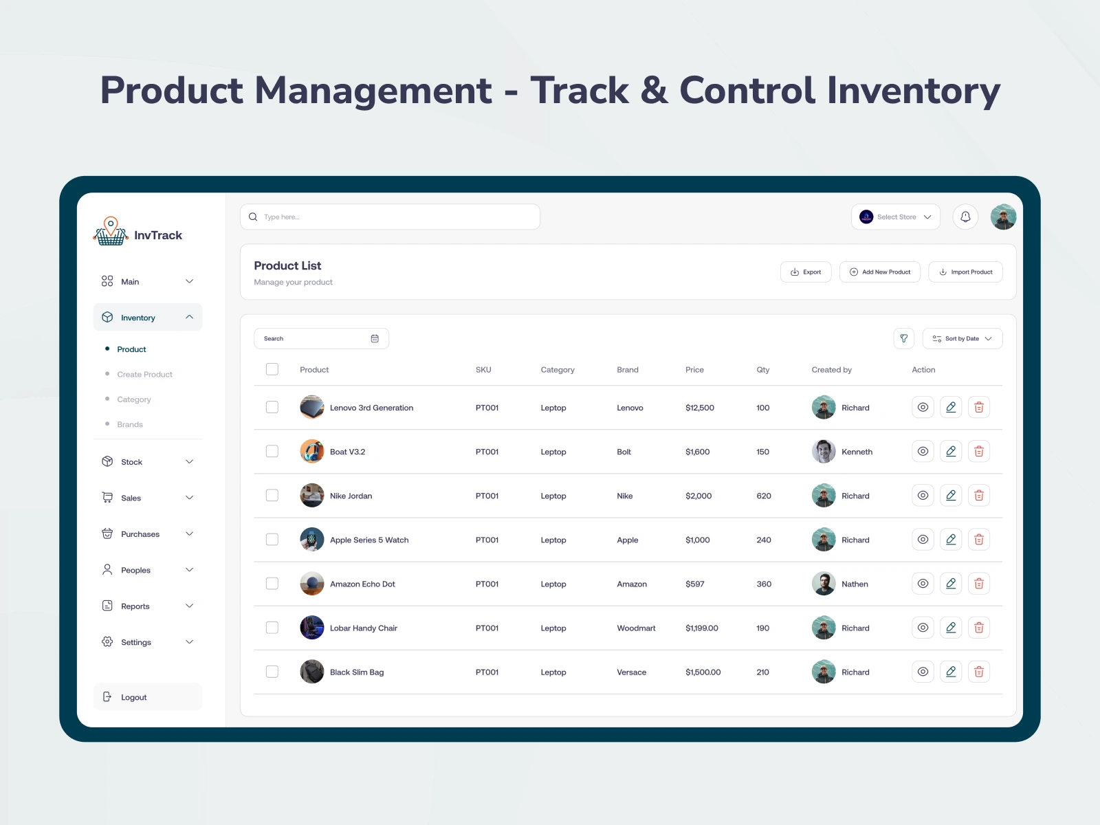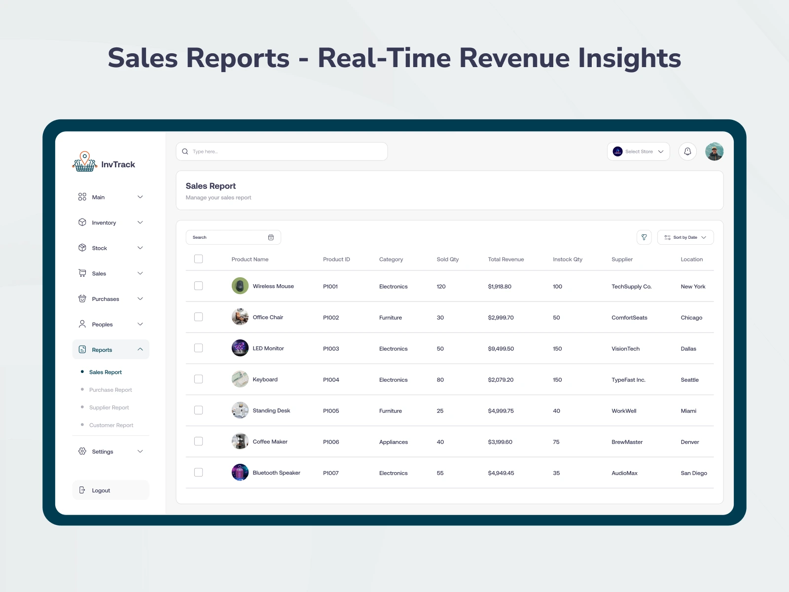 InvTrack was designed as an all-in-one dashboard that brings clarity and control to inventory operations. The solution focuses on: