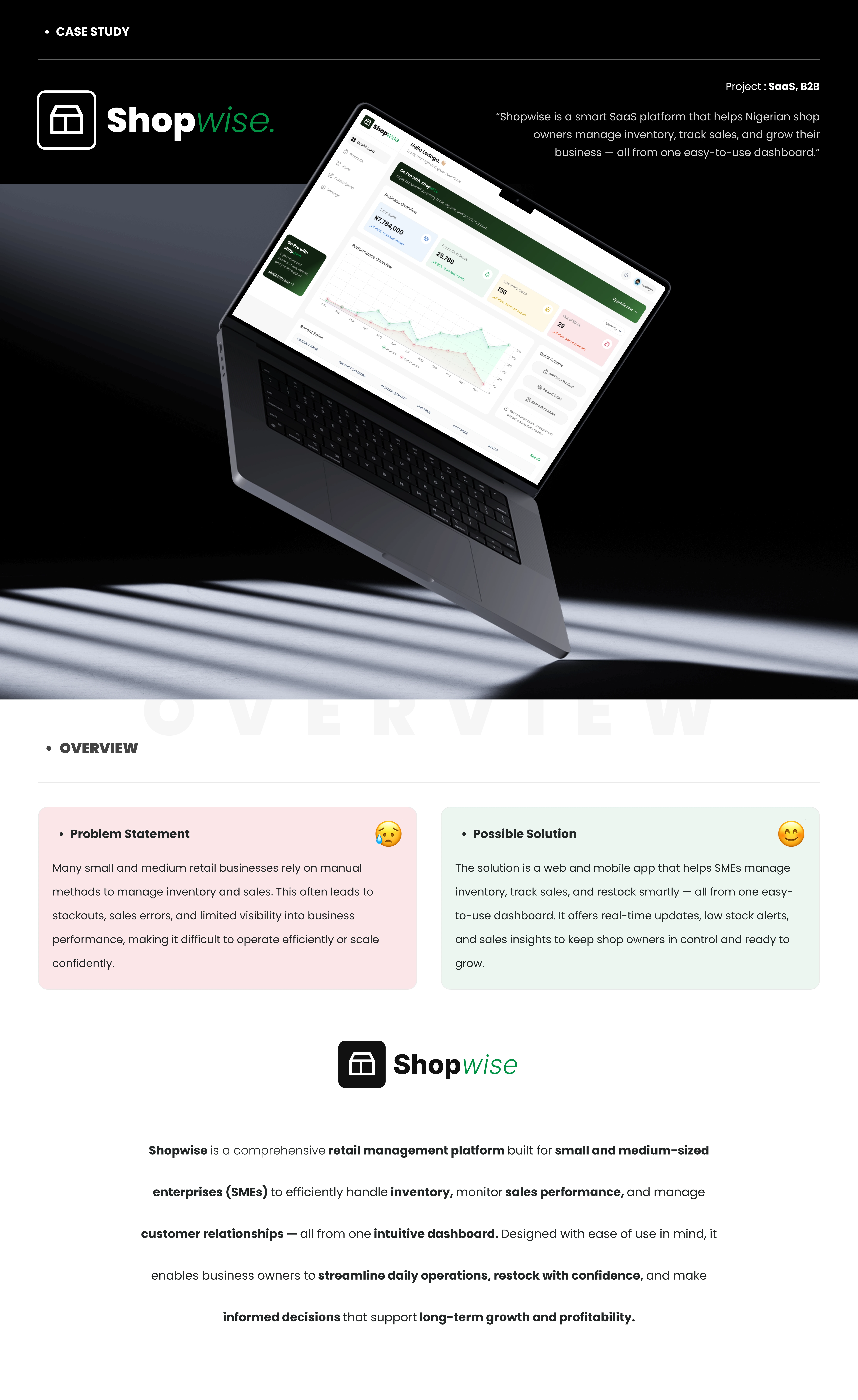 Shopwise is a comprehensive retail management platform built for small and medium-sized enterprises (SMEs) to efficiently handle inventory, monitor sales performance, and manage customer relationships — all from one intuitive dashboard. Designed with ease of use in mind, it enables business owners to streamline daily operations, restock with confidence, and make informed decisions that support long-term growth and profitability.