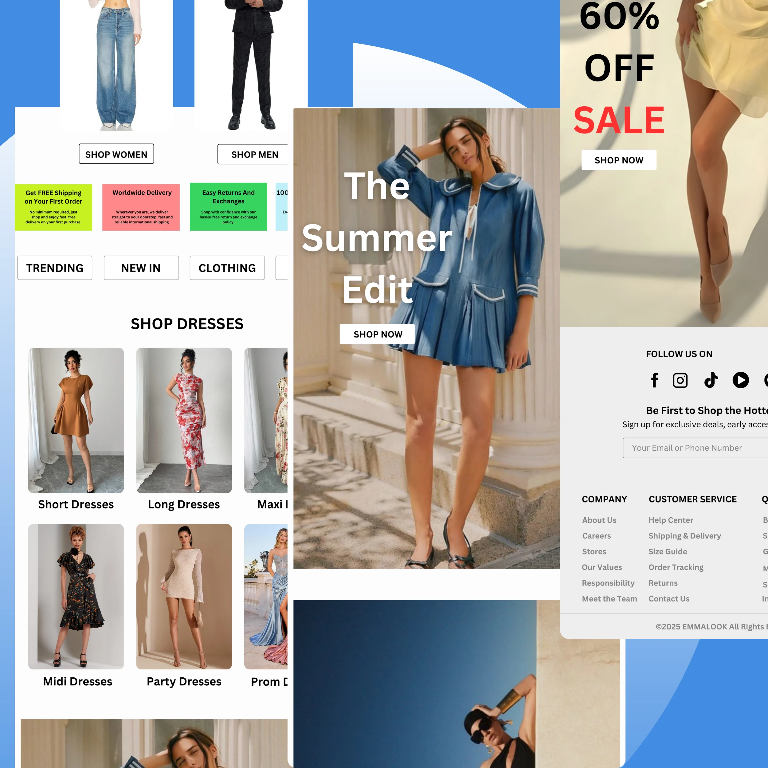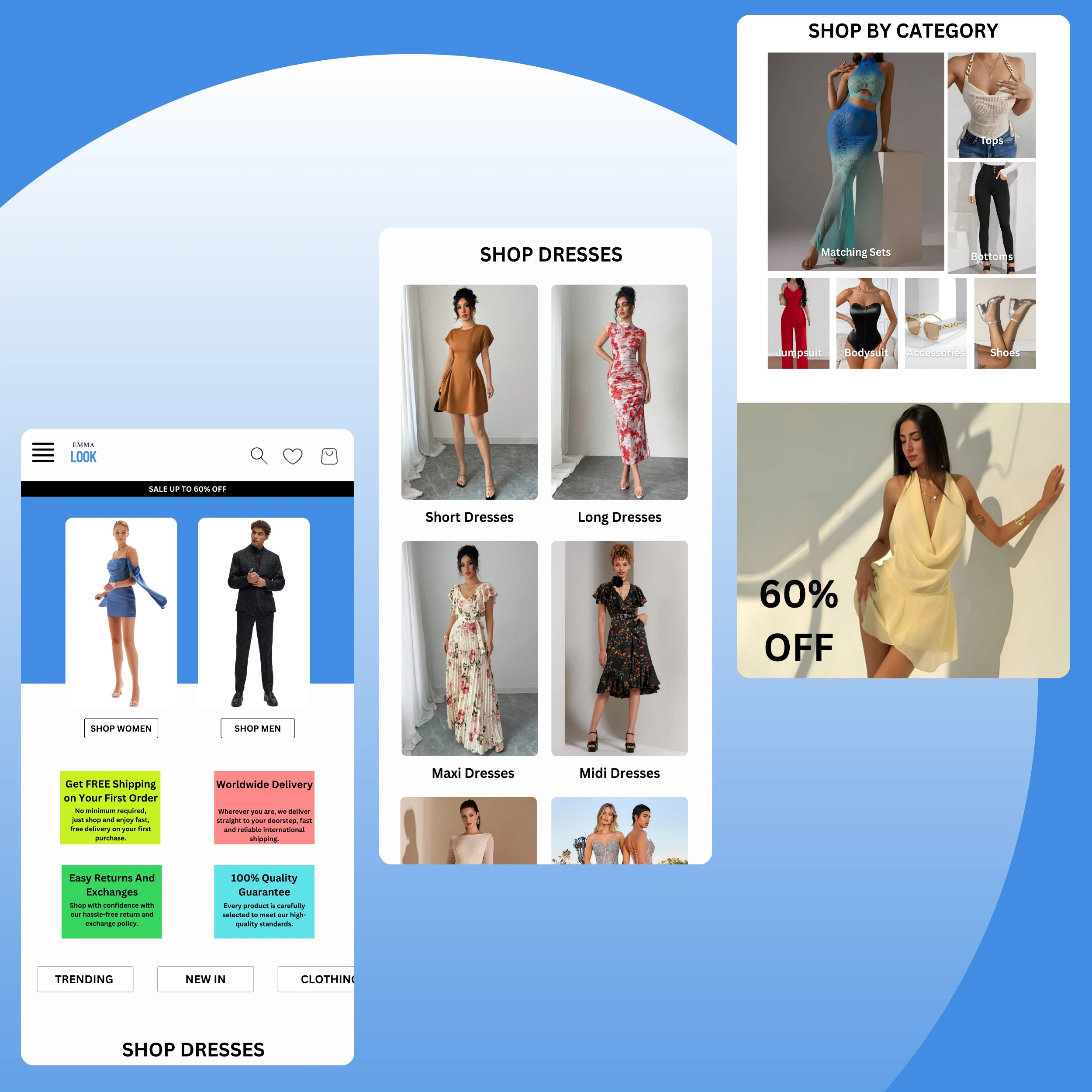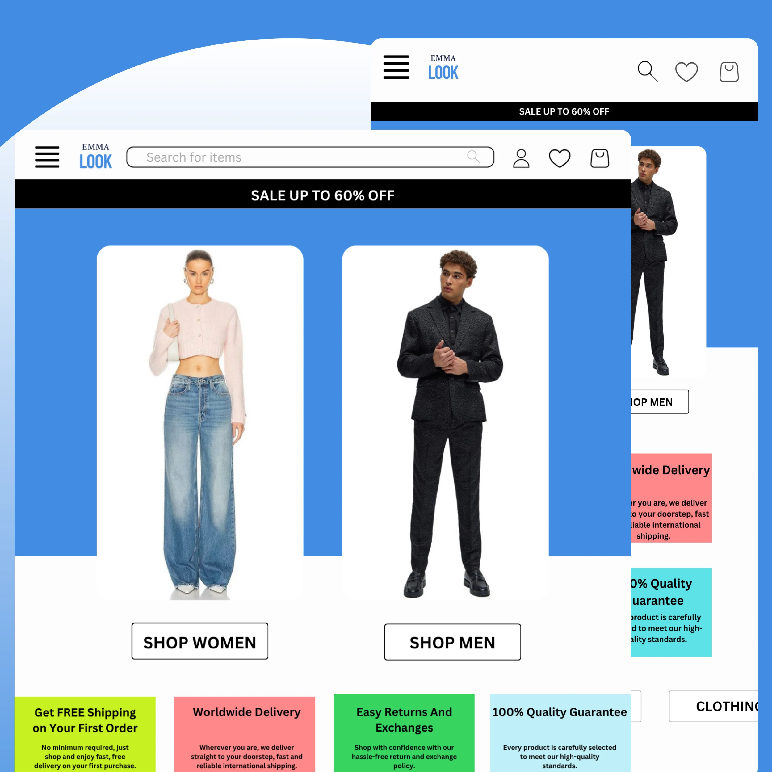 Full UI/UX design for a fashion eCommerce store, delivering a modern, visually appealing interface and a seamless shopping experience from browsing to checkout.