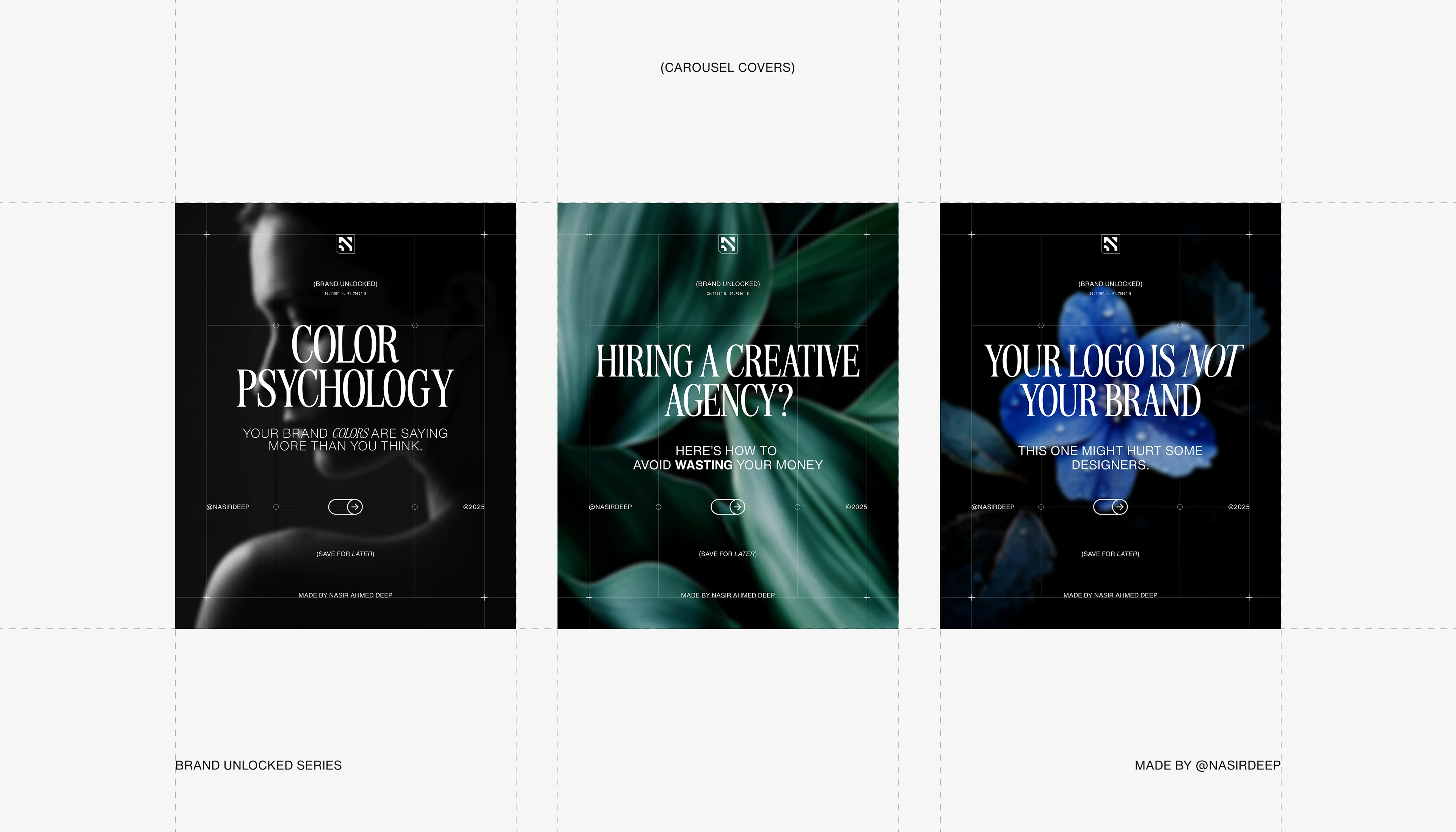 Brand Unlocked is an ongoing educational carousel series designed to simplify branding concepts through bold, scroll-stopping visuals.