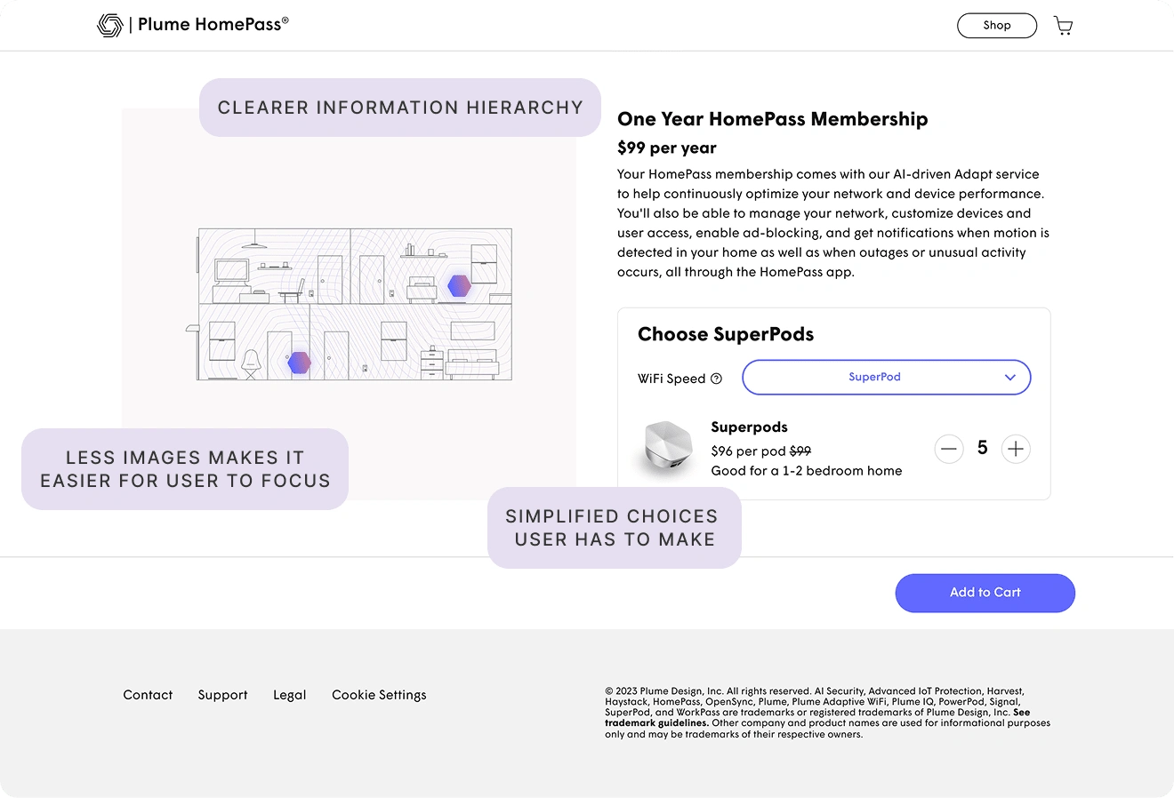 This project was so successful in converting users that Plume requested a similar design to be made across their line of products.