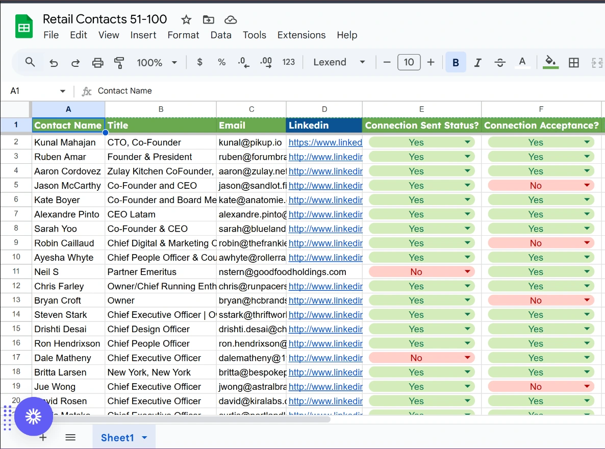 ✅ Delivered a ready-to-use outreach dashboard for ongoing follow-ups and CRM integration