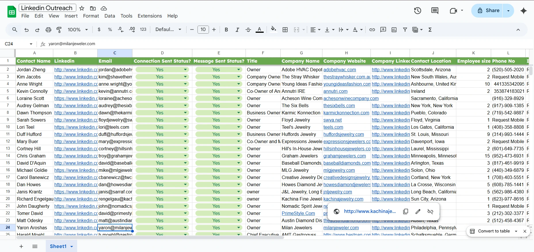✅ Compiled a verified list of business owners with LinkedIn profiles and email addresses