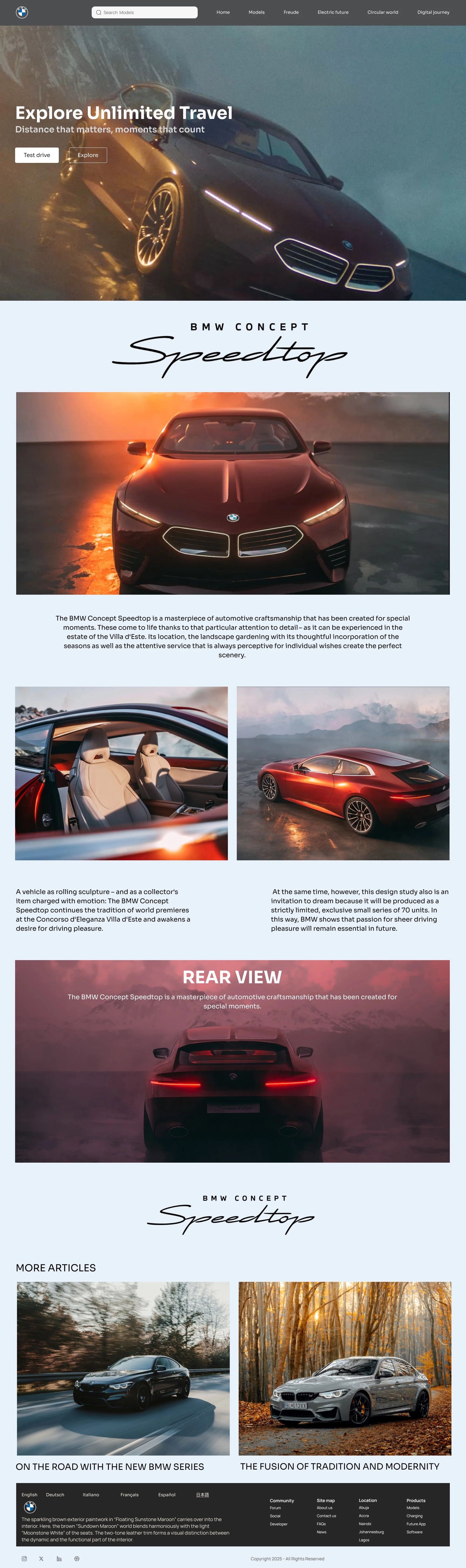 When I began designing this BMW landing page, I wanted to capture not just a car, but a legacy of engineering excellence and emotional connection. BMW is more than a machine it’s a statement of confidence, precision, and driving pleasure.
