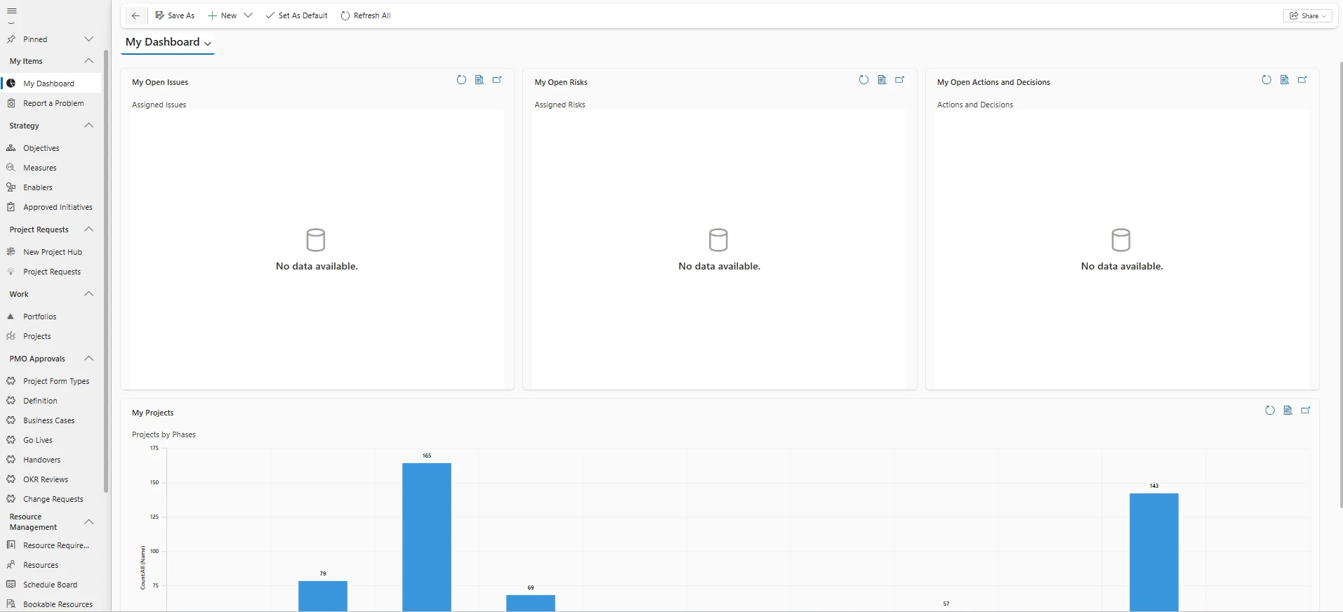 The client's project management processes were hindered by a generic tool that couldn't adapt to their needs for tracking programs, risks, phase-gates, resource bookings, and change requests. This led to fragmented data and manual workarounds.