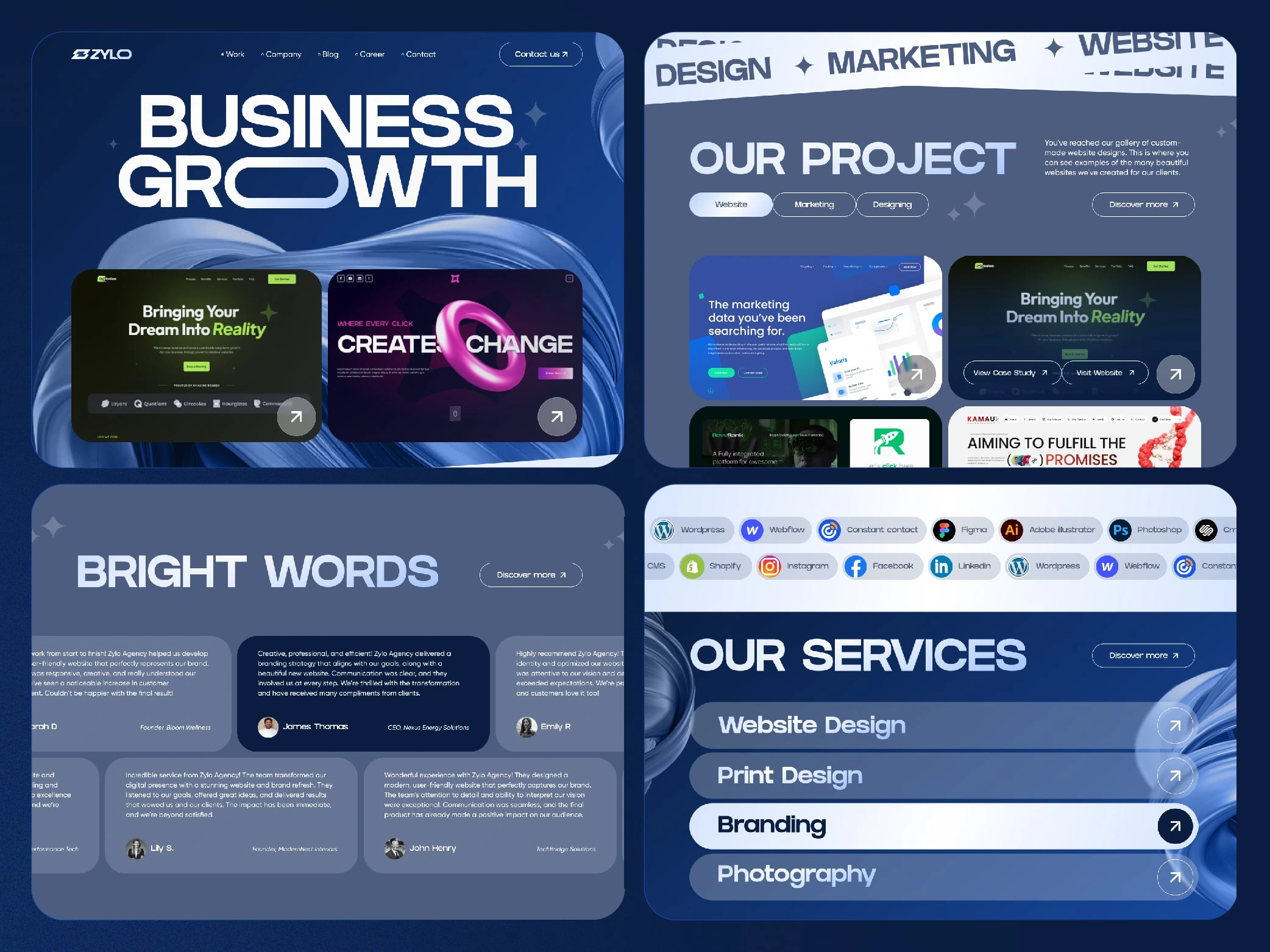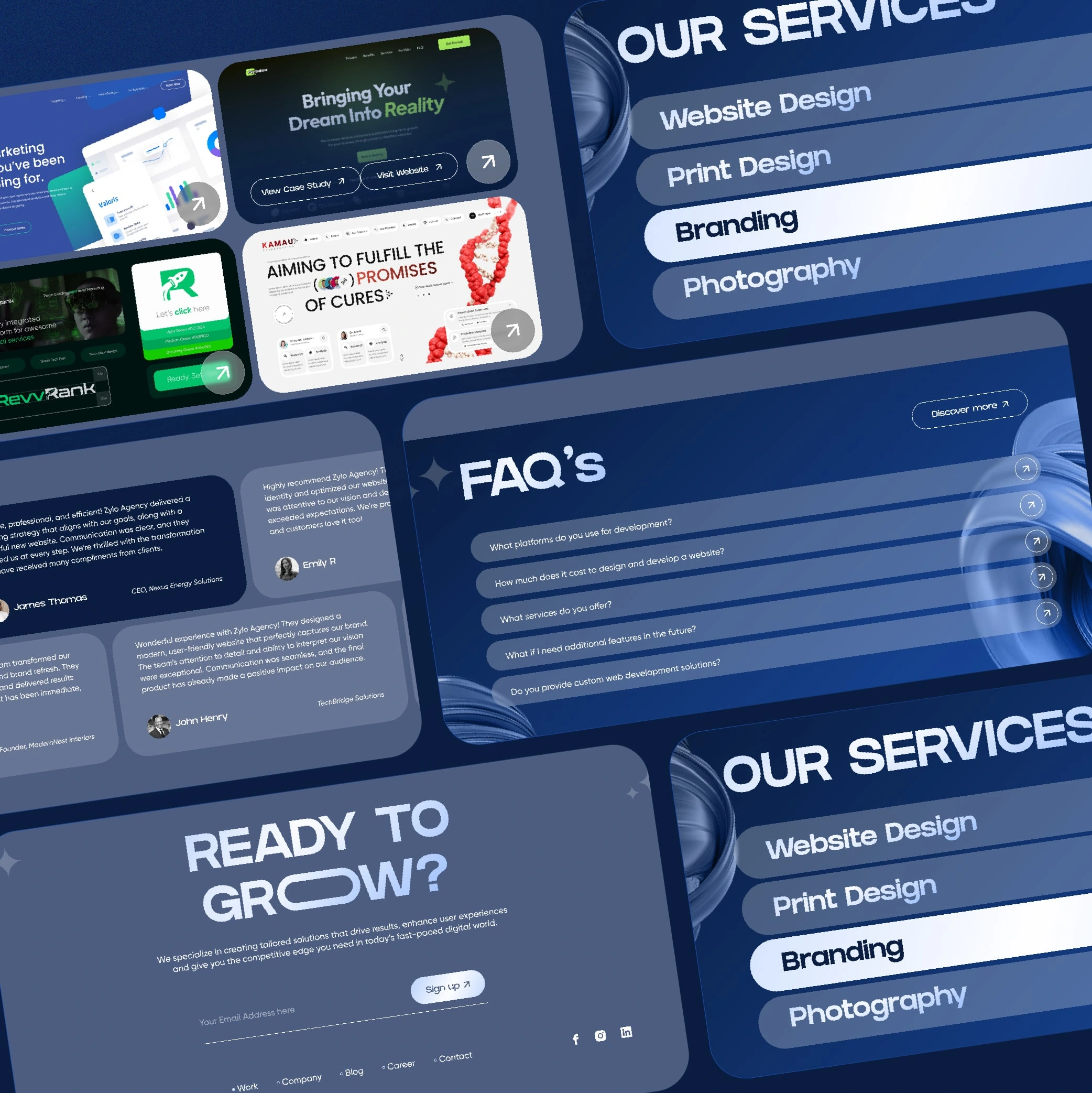 I designed the UI of the Xylo website, a technological and creative agency dealing in web design and development. The client requested a very creative and interactive interface with contemporary animations and a shiny blue color scheme. I began designing a detailed wireframe to define the structure and flow first, then proceeded to the final UI design upon approval from the client. The aim was to get the site to look professional and energetic without making anything too difficult to use. The result is a clean, dynamic look that expresses Xylo's technical proficiency and creative personality.