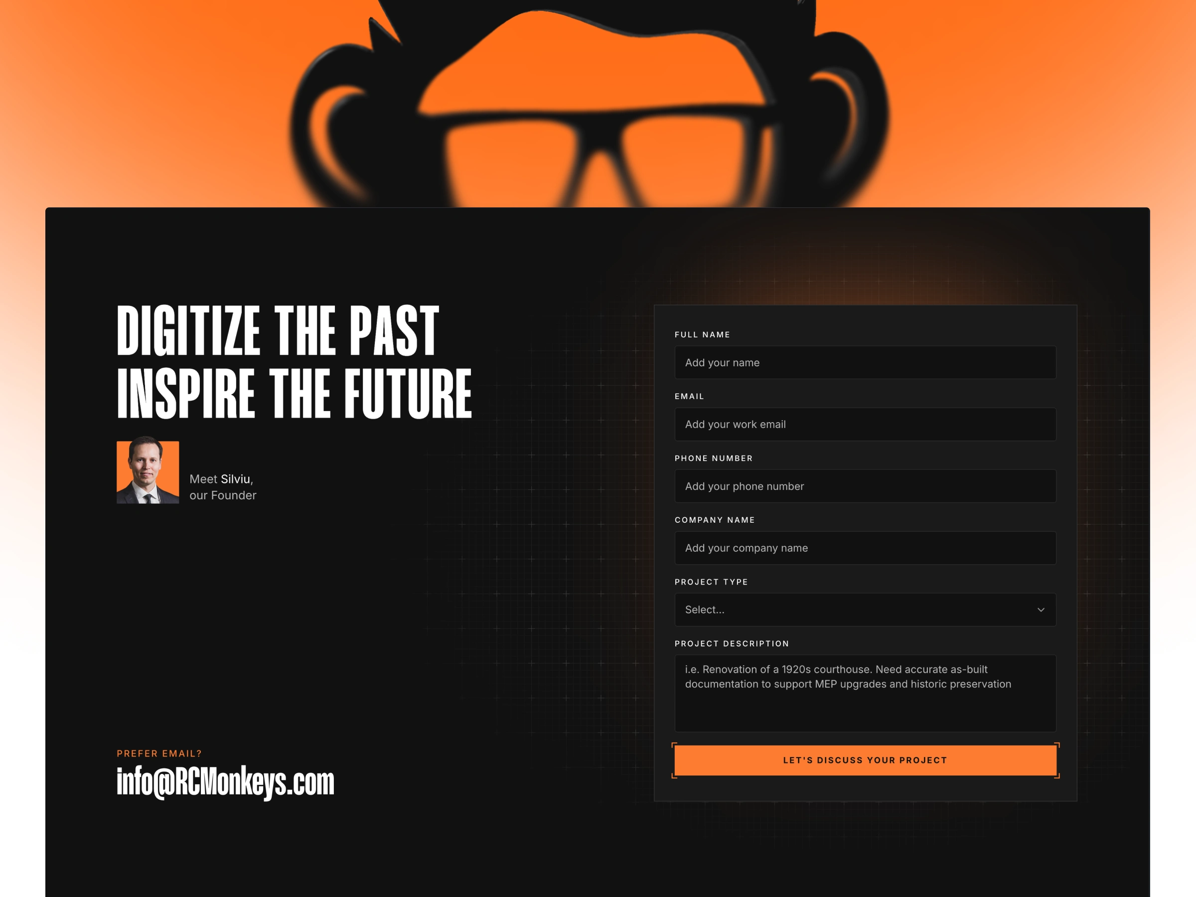 RC Monkeys had outgrown their website. The old Squarespace site no longer reflected the company’s rapid growth, the scale of projects they were handling, or the sophistication of their services. Maintenance was costly, flexibility was limited, and most importantly, the brand didn’t look like the serious player they had become.