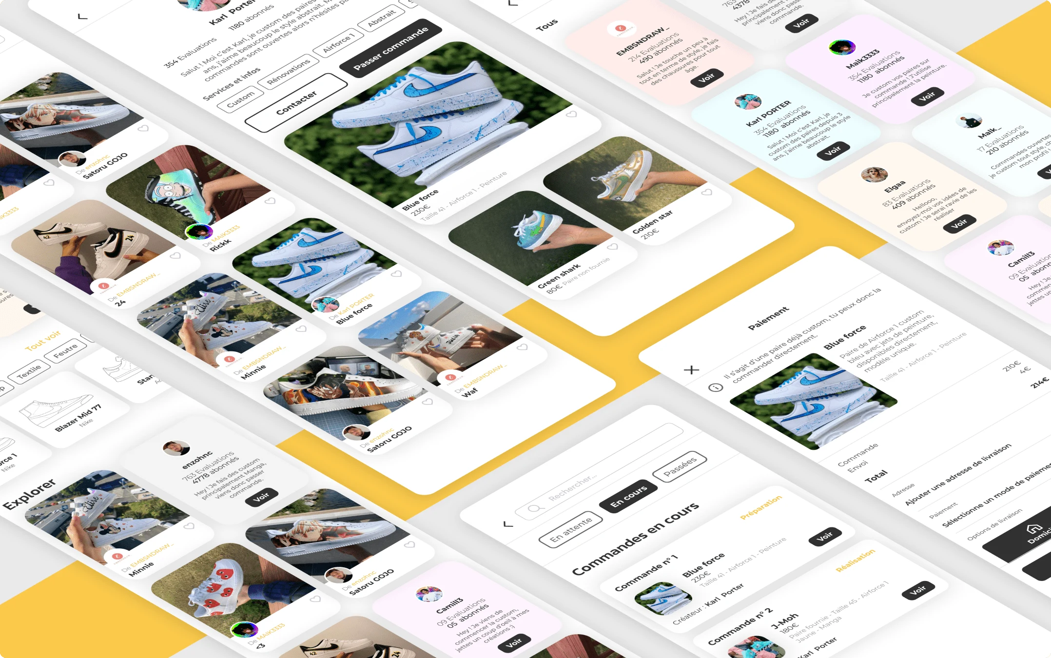 Kraft is a mobile app which connects artists who make custom baskets and whoever that want to buy an unique and customized pair of shoes.I worked alone on this project, from the user research to the complete mobile UI. I made the logo, the branding and the design system which is used for the mobile app.