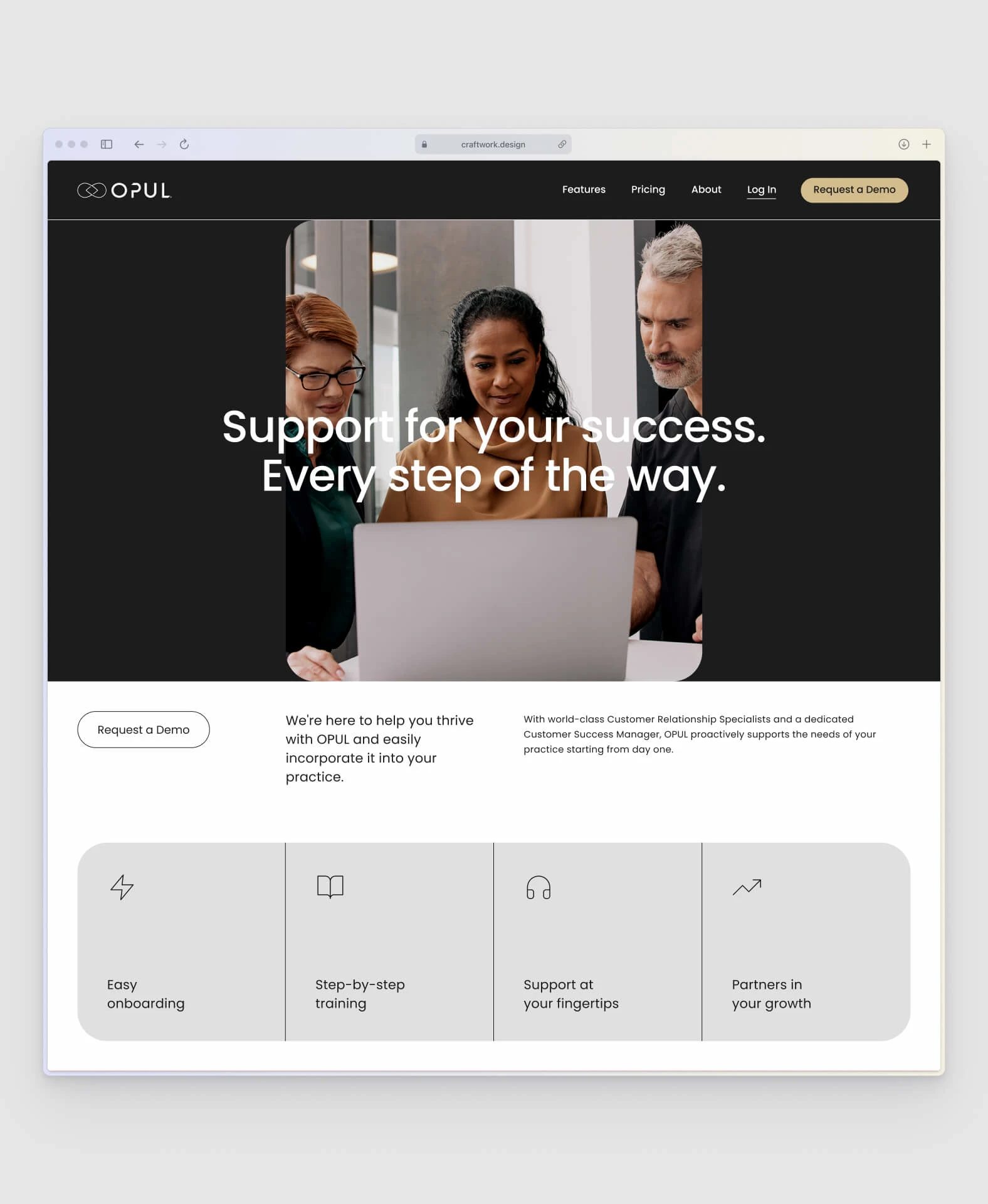 The foundation of this brand evolution was rooted in the B2B web experience; a digital hub that would serve as the cornerstone for establishing the brand’s presence while also functioning as a comprehensive resource center for aesthetic practices to explore and inquire about Opul’s groundbreaking new SaaS platform.
