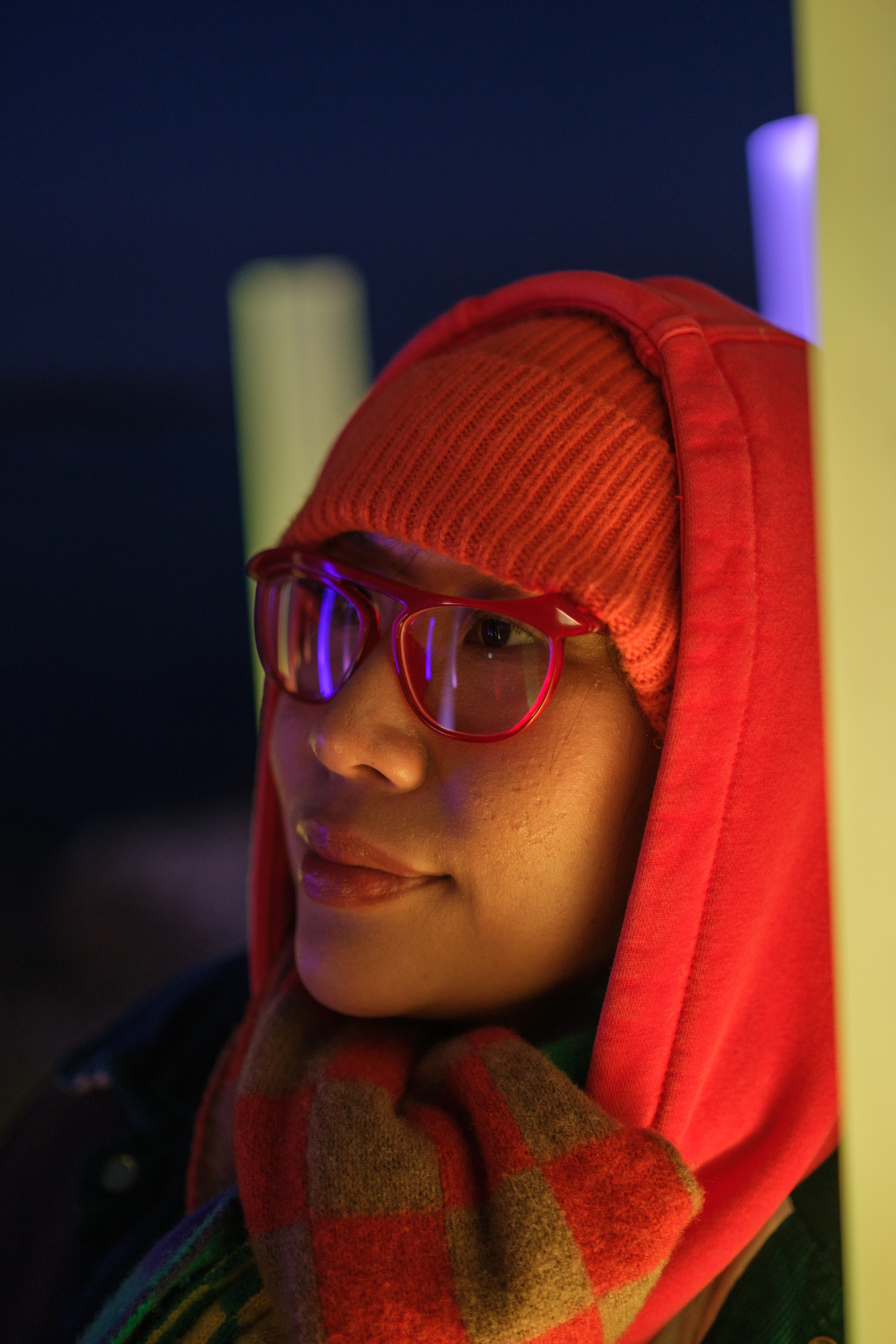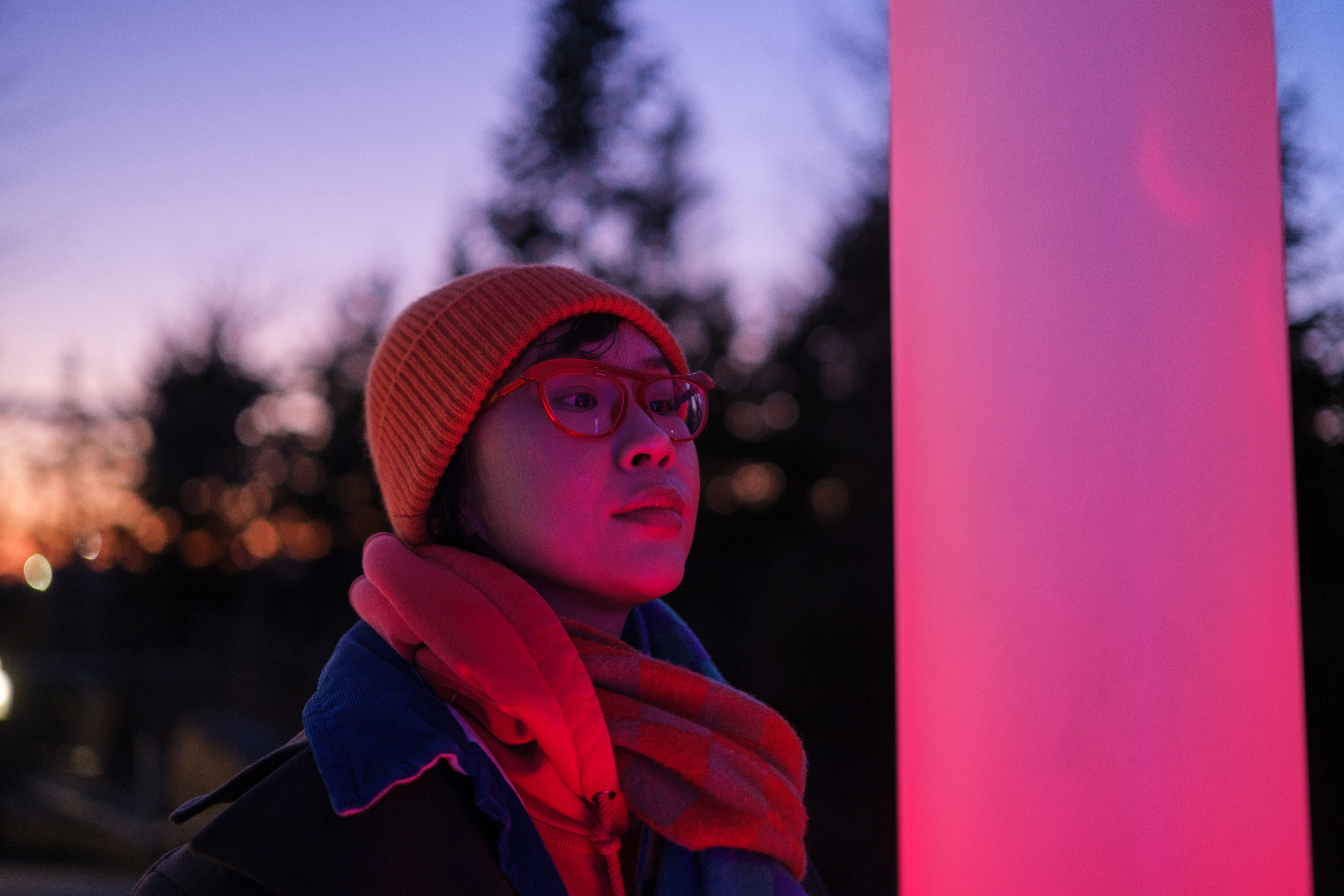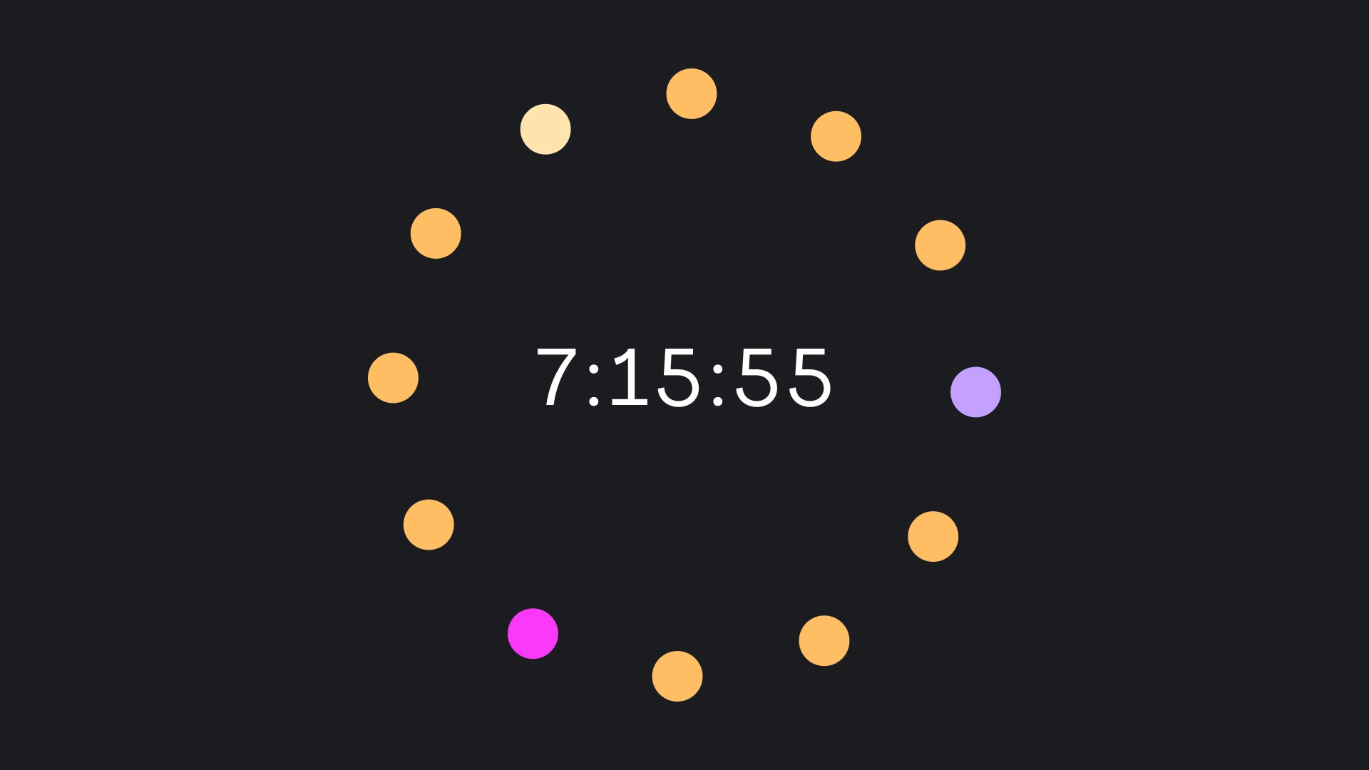 Ripples in Time is an interactive, human-scale clock that makes time and movement perceptible through light. Twelve luminous pillars, each seven feet tall, mark the passing of hours, minutes and seconds. As they move through the installation, visitors can send colourful ripples across the pillars, creating new patterns.