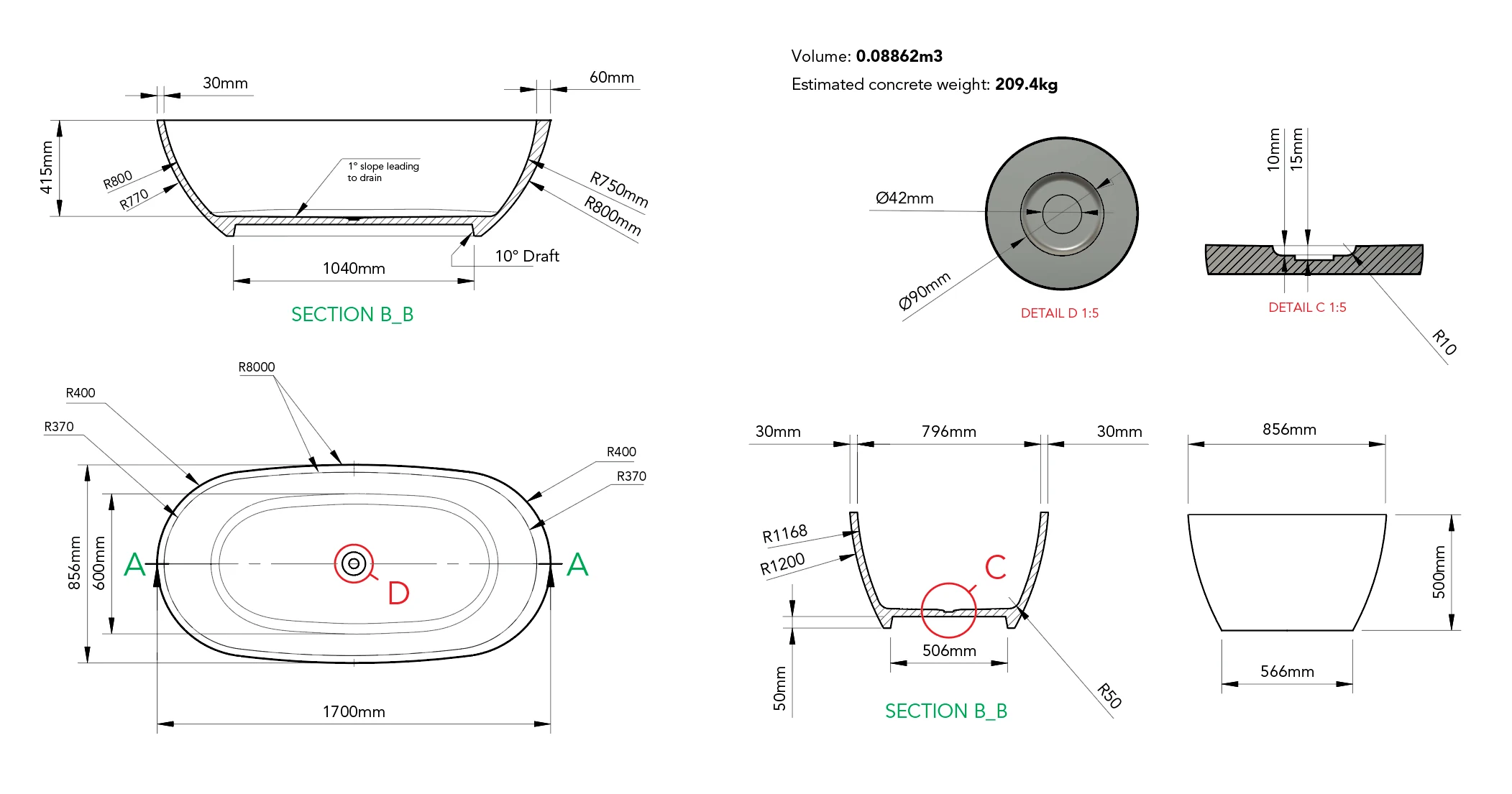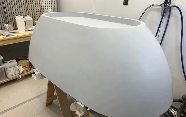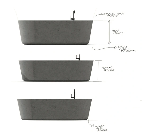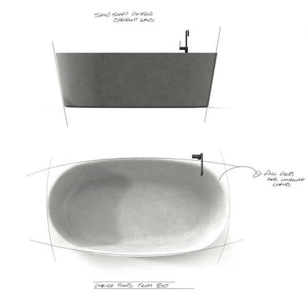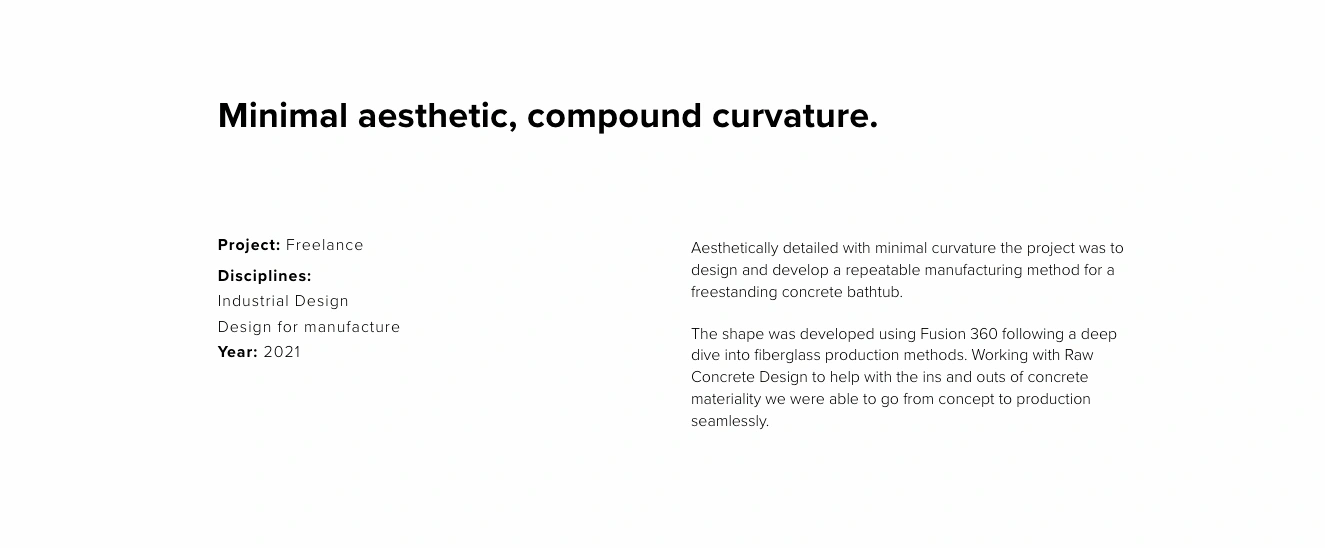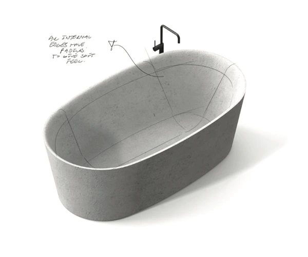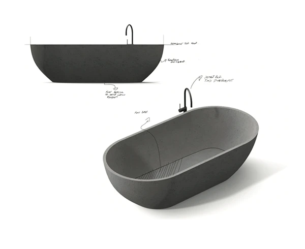 Aesthetically detailed with minimal curvature the project was to design and develop a repeatable manufacturing method for a freestanding concrete bathtub.