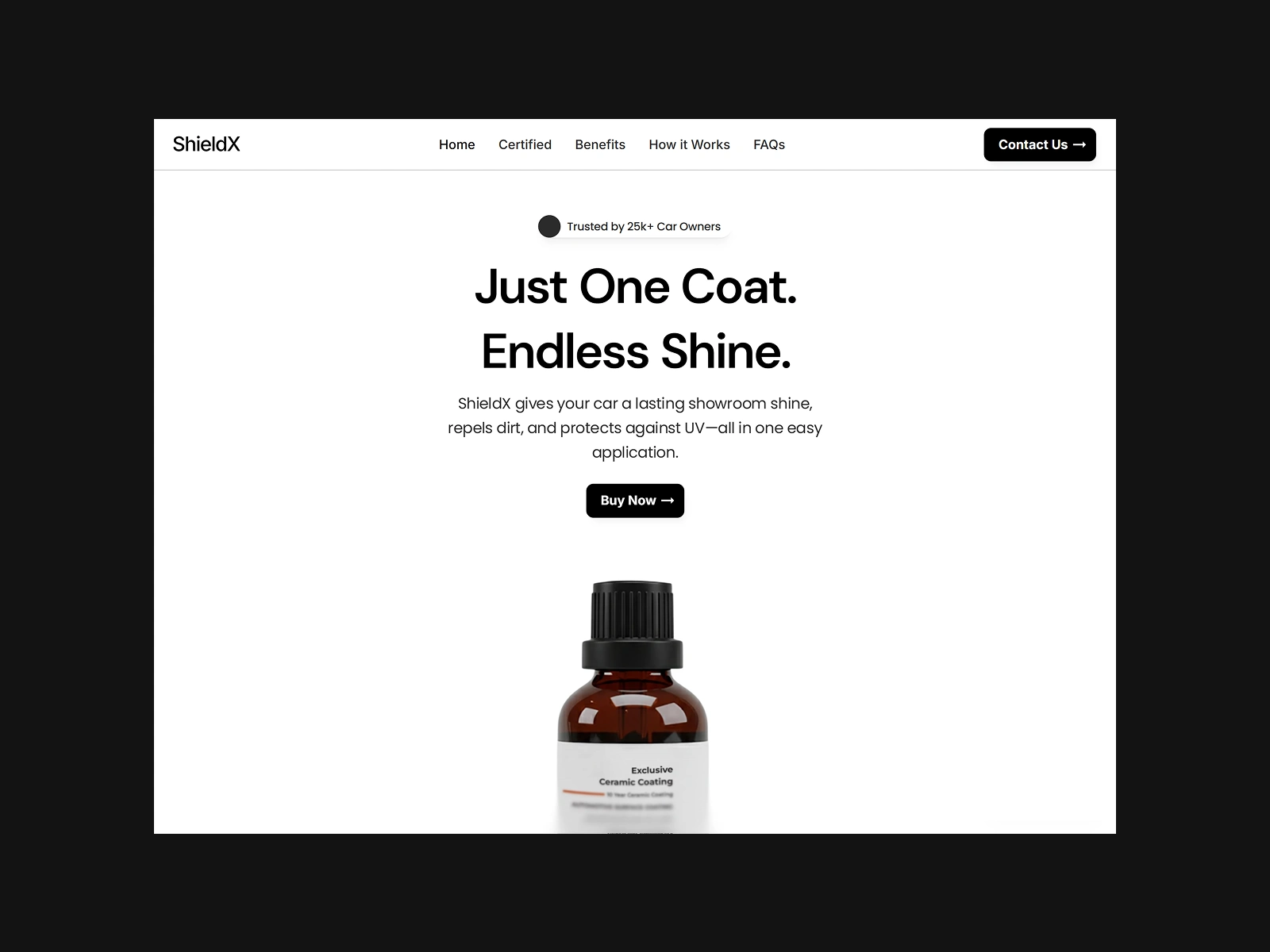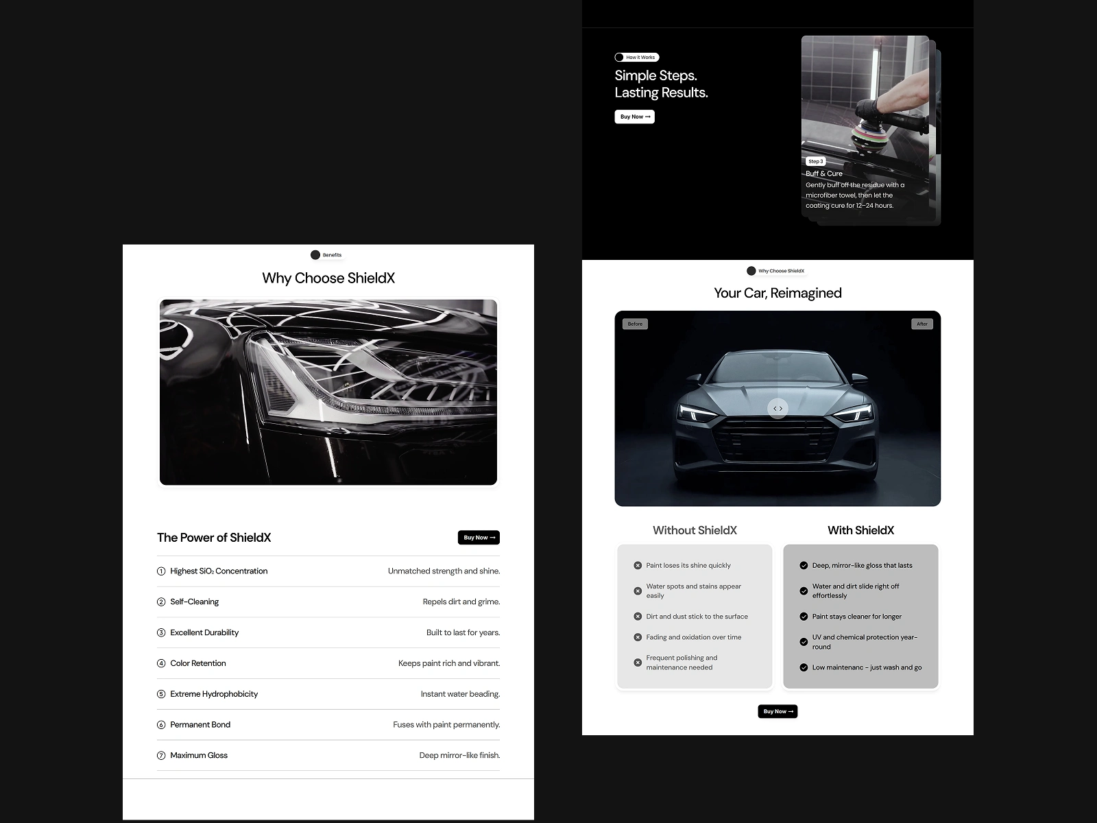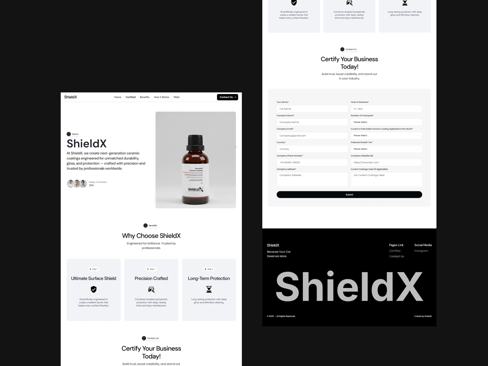 Designed a clean and modern product detail layout for ShieldX Ceramic Coating, highlighting premium quality, durability, and sleek brand identity.