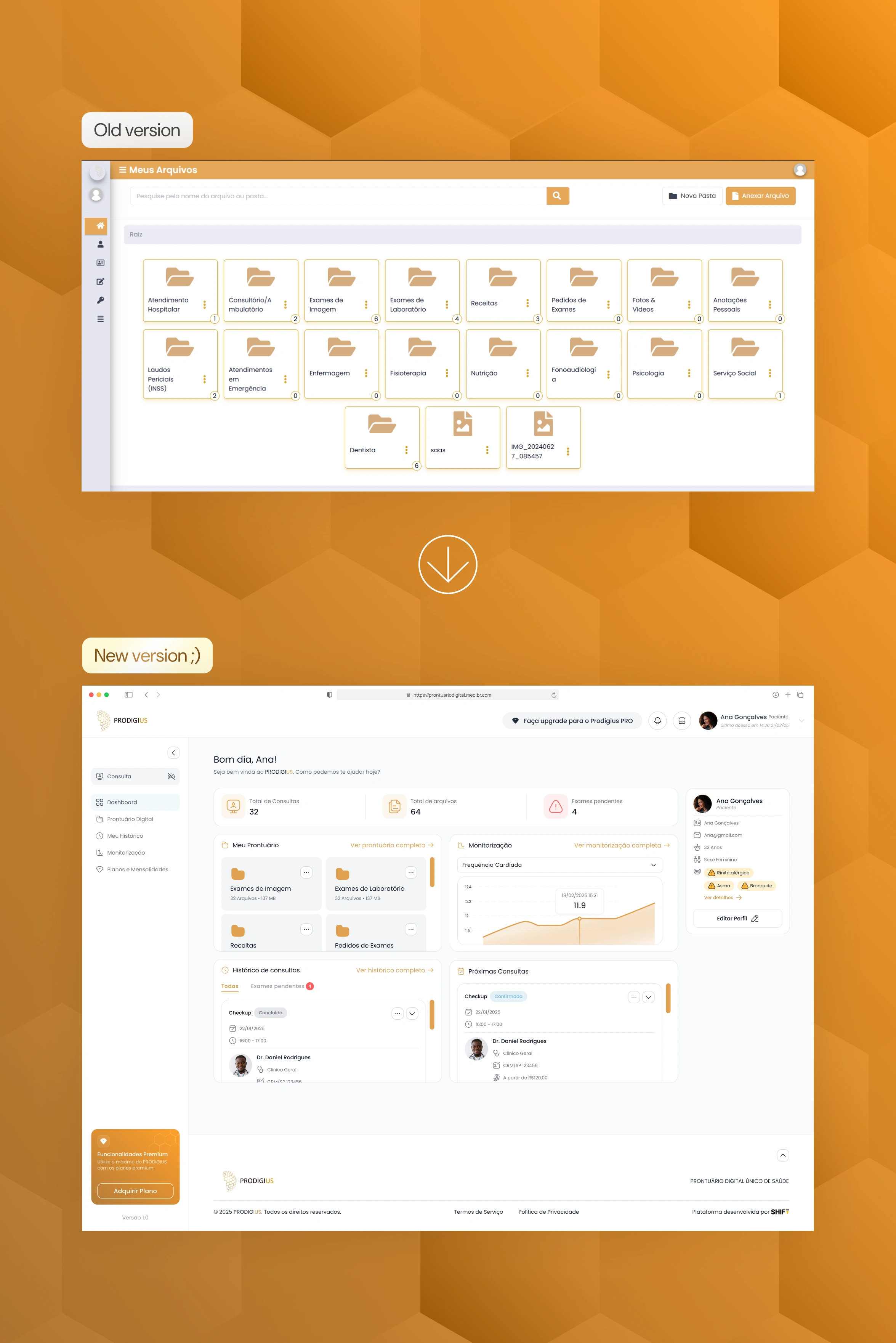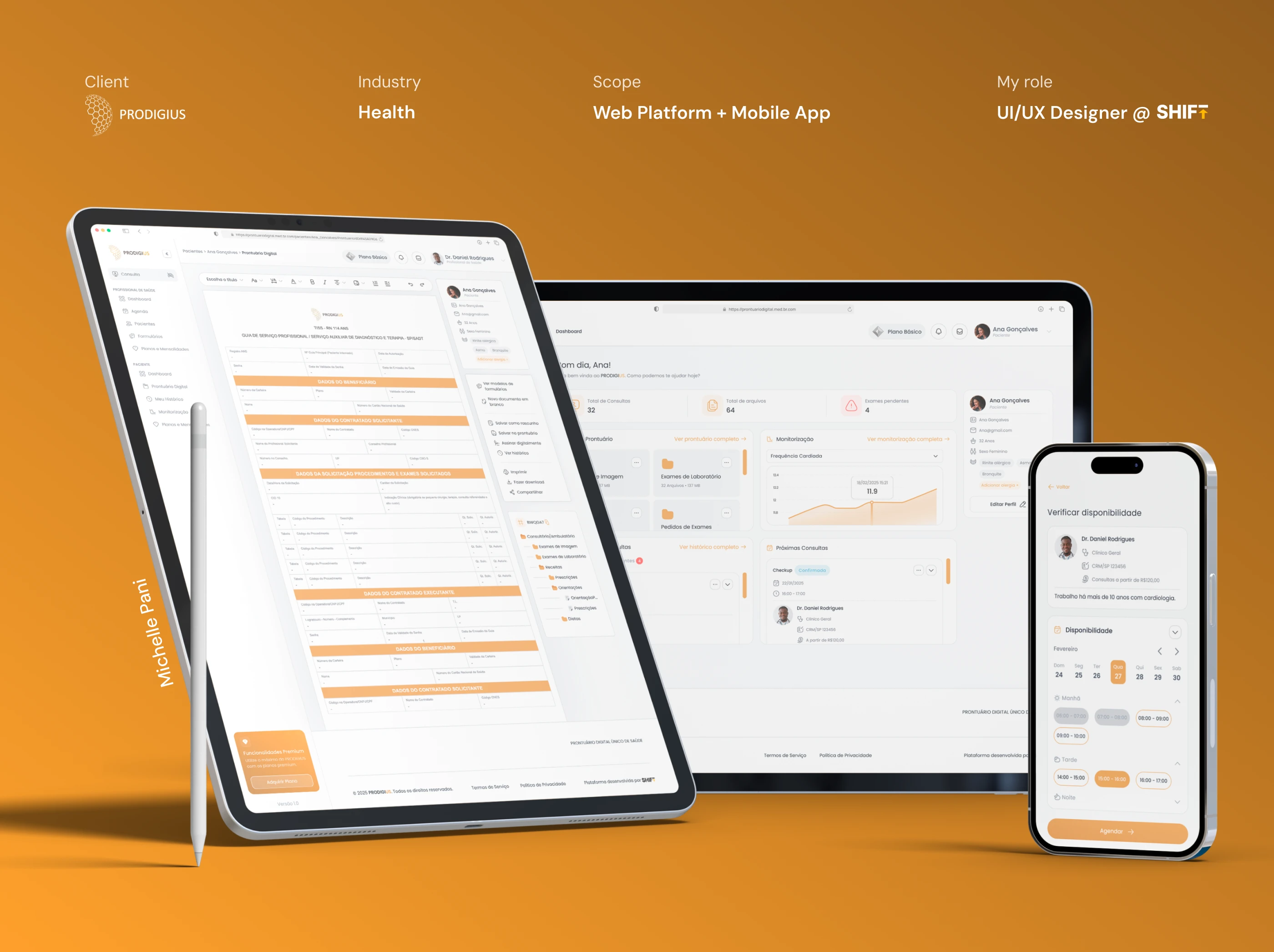 Prodigius is a healthtech platform I redesigned while working at Shift Sistemas. Platform is in active development. All designs shown are my original work.