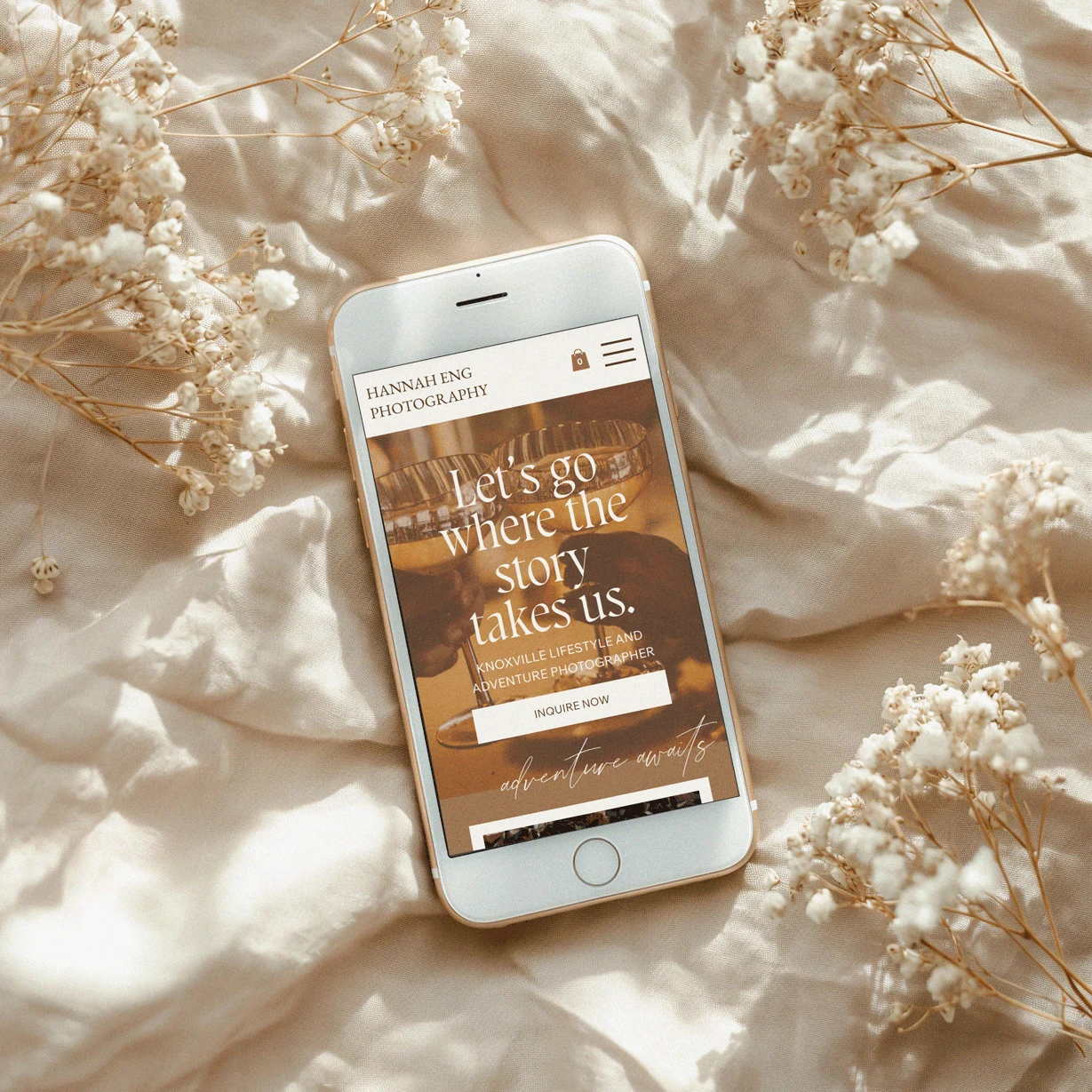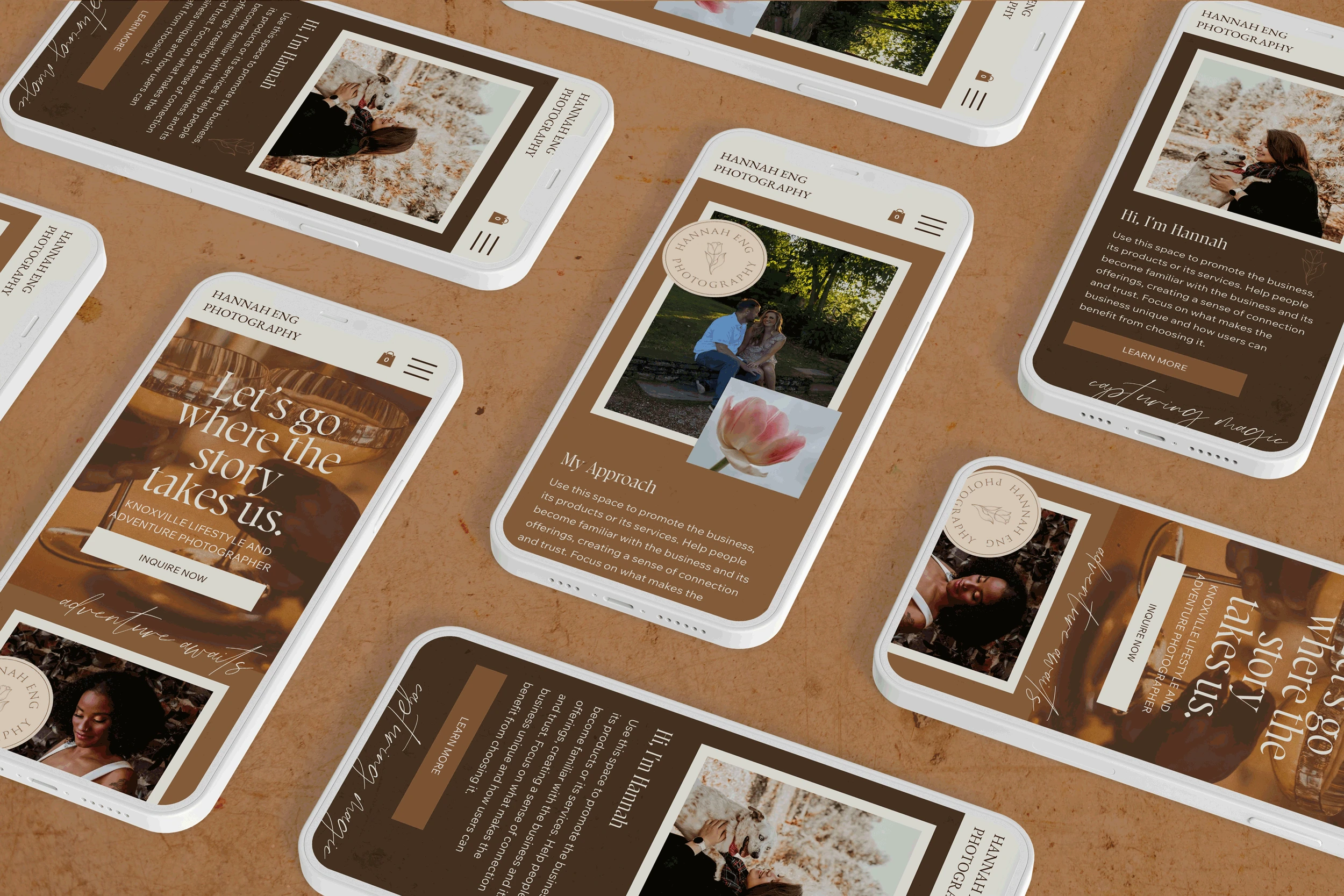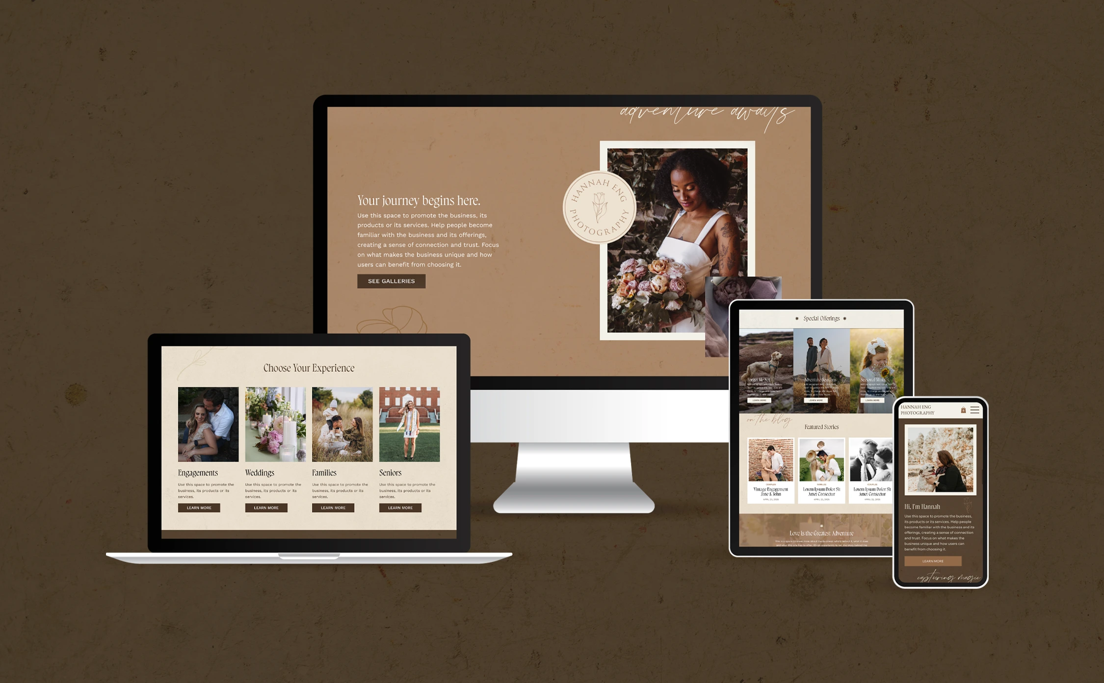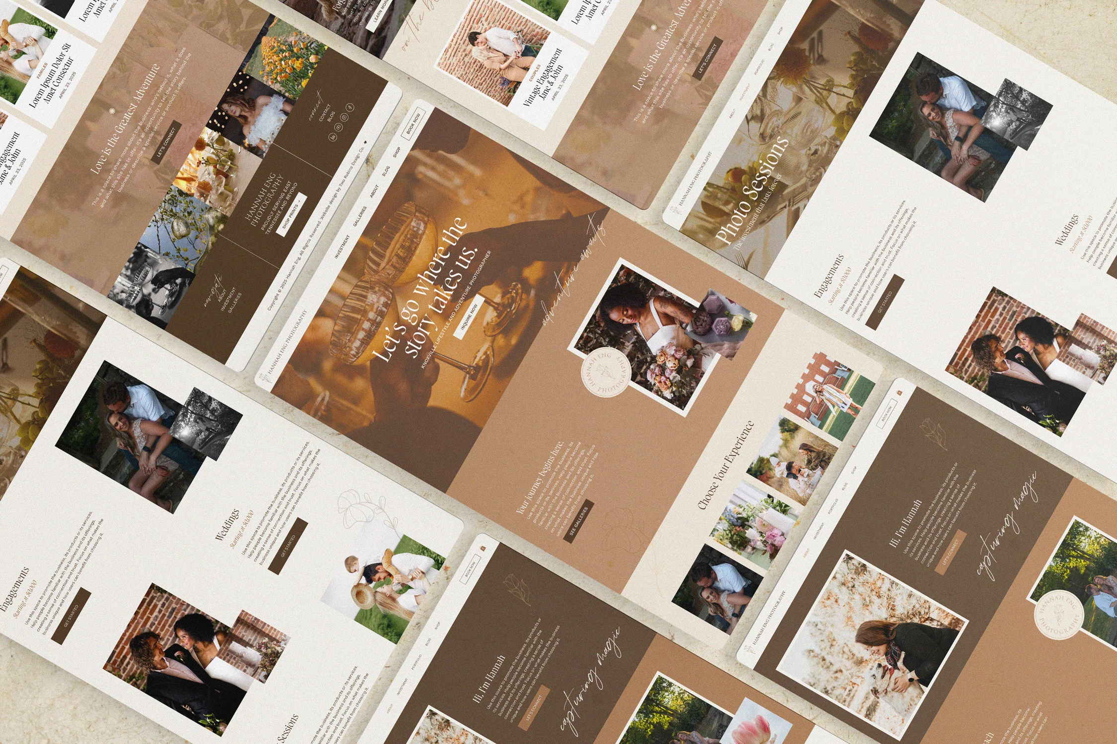 Using Hannah's existing logo as a foundation, we crafted a broader brand identity that could extend across the full website experience. We pulled font pairings, color inspiration, and layout styles that complemented the logo and her portfolio of photography. “Adventurous” was the word she used to describe her vision and style—so every design choice, from layered textures to immersive page layouts, was guided by that one word.