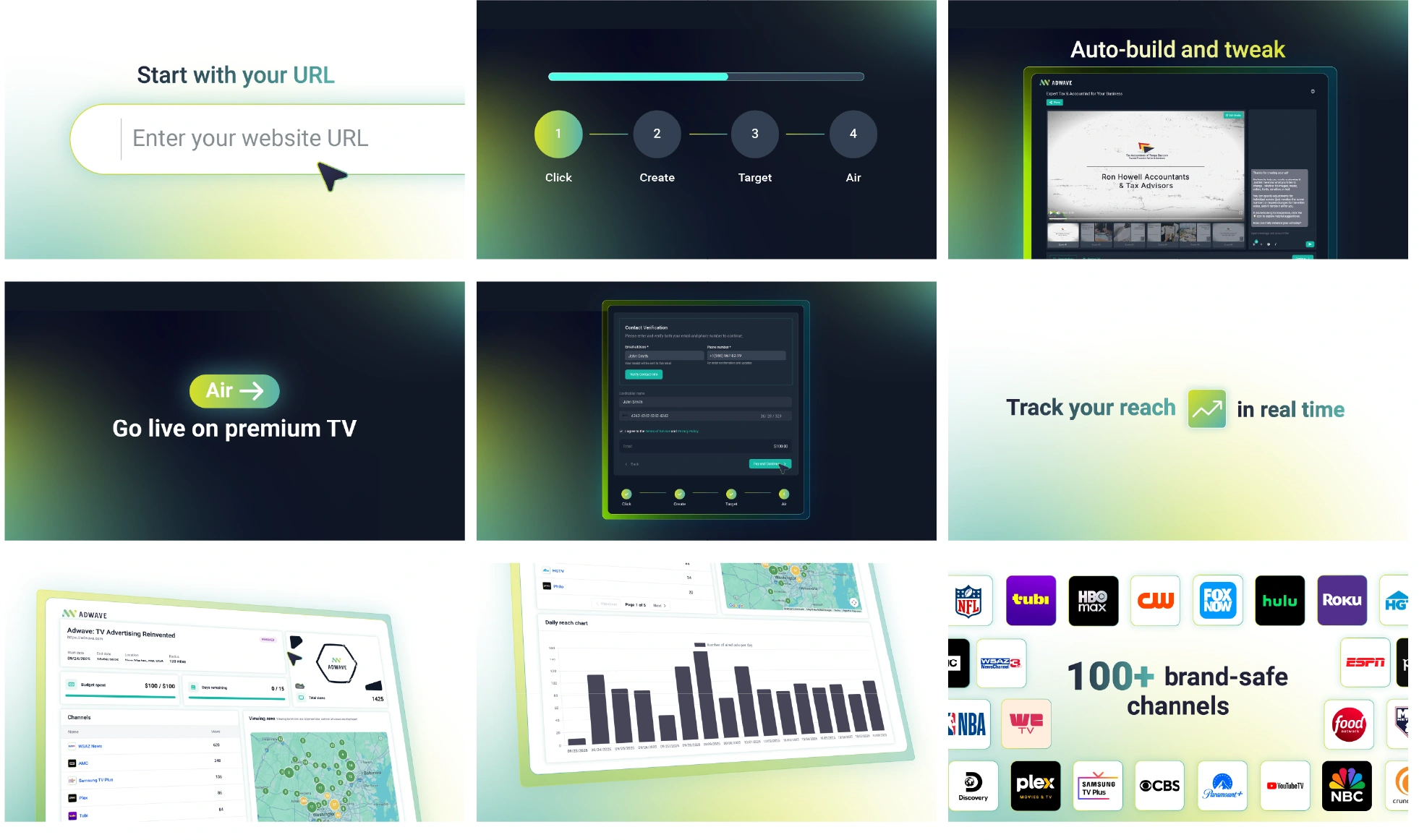 The video is used on Adwave’s landing page, social channels, and sales communication to show how the platform works and why it removes the complexity of traditional TV advertising.