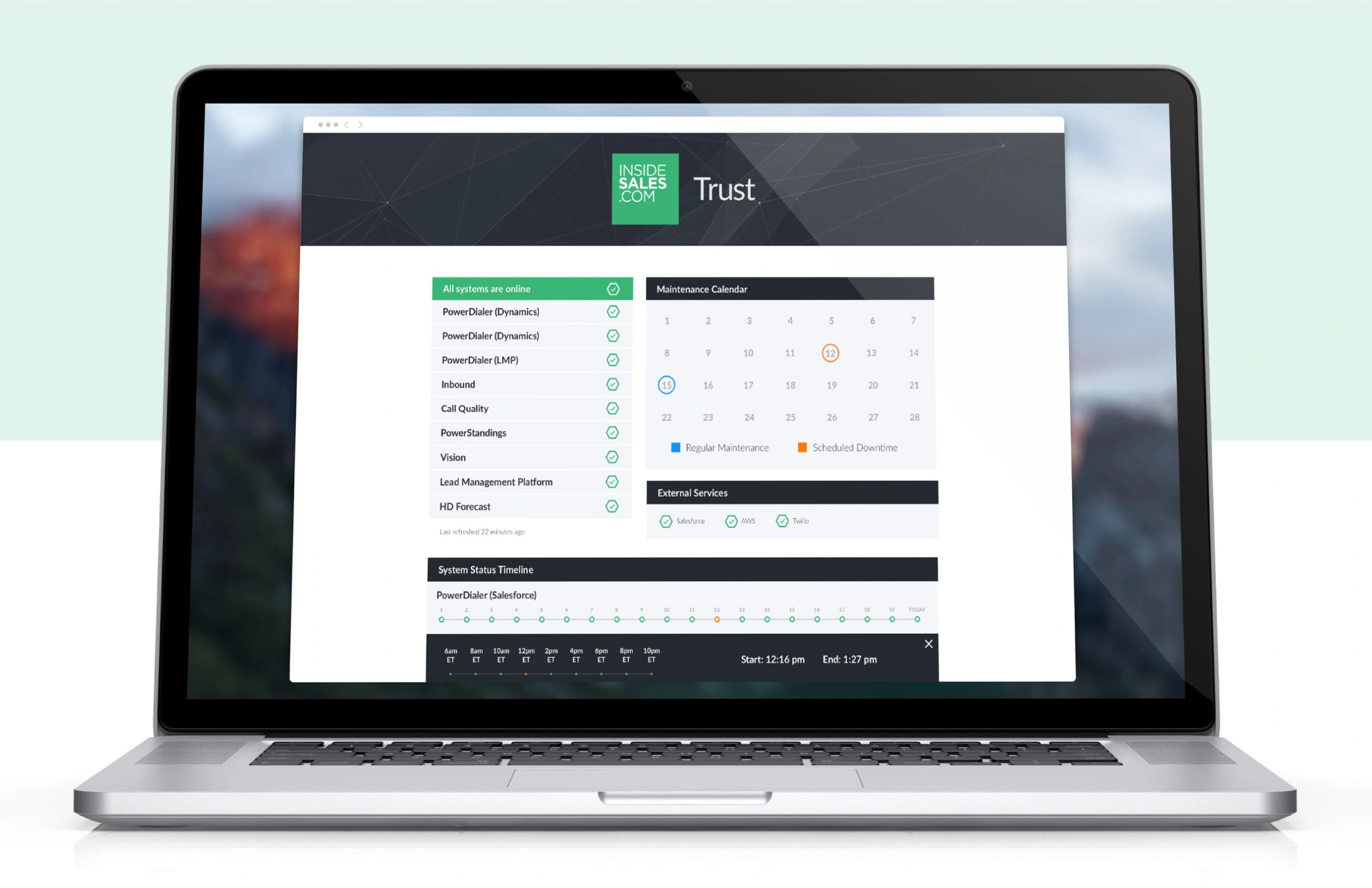 InsideSales.com. If our technology was down, partners could not use our technology to accelerate their sales cycles. The “Trust” moniker was given to the status pages to communicate the relationship that we strived to deliver to our customers.