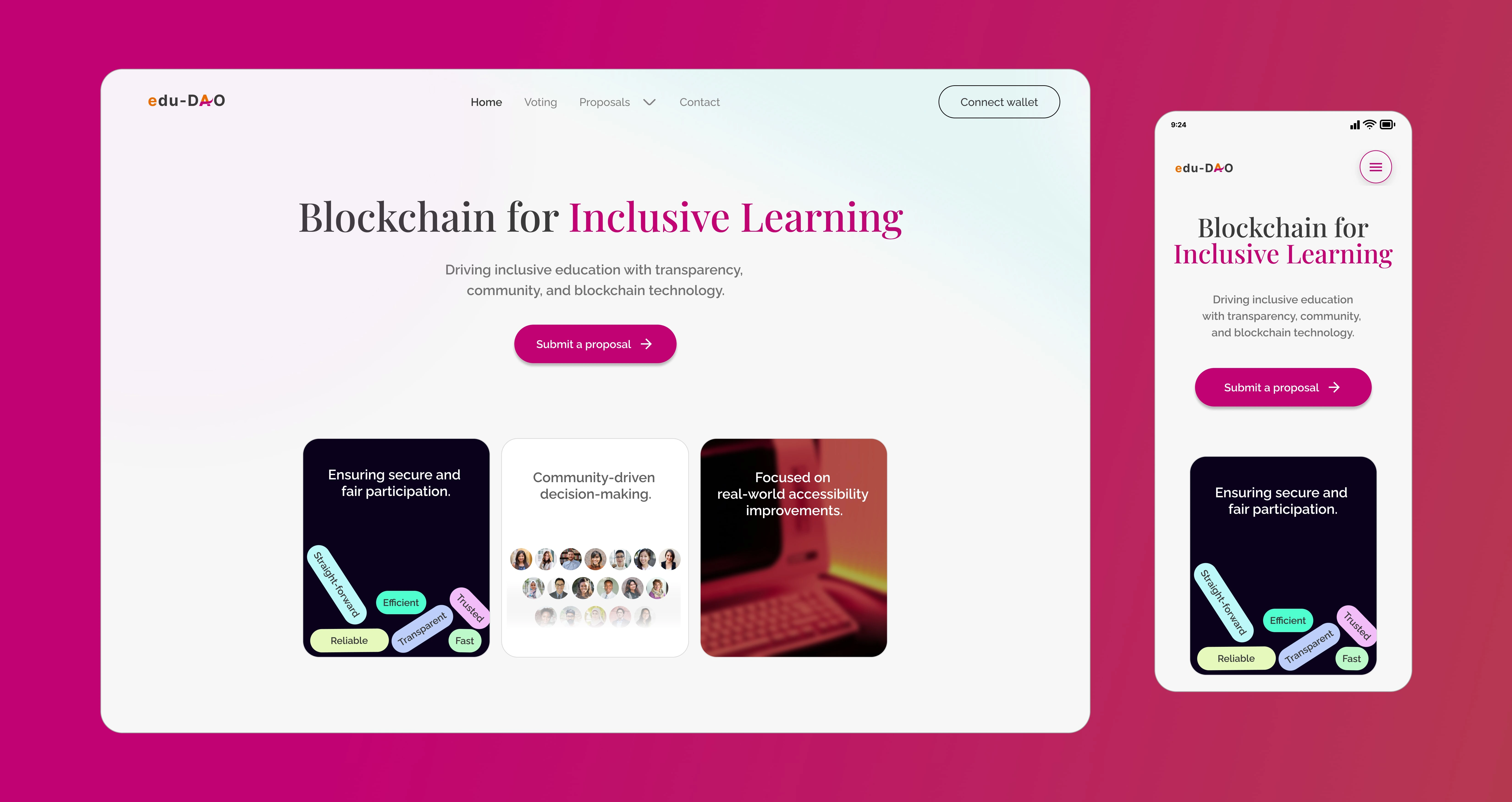EduDAO is a decentralized crypto-based platform where users can propose, vote on, and fund educational projects, creating a transparent, community-driven ecosystem for learning innovation.