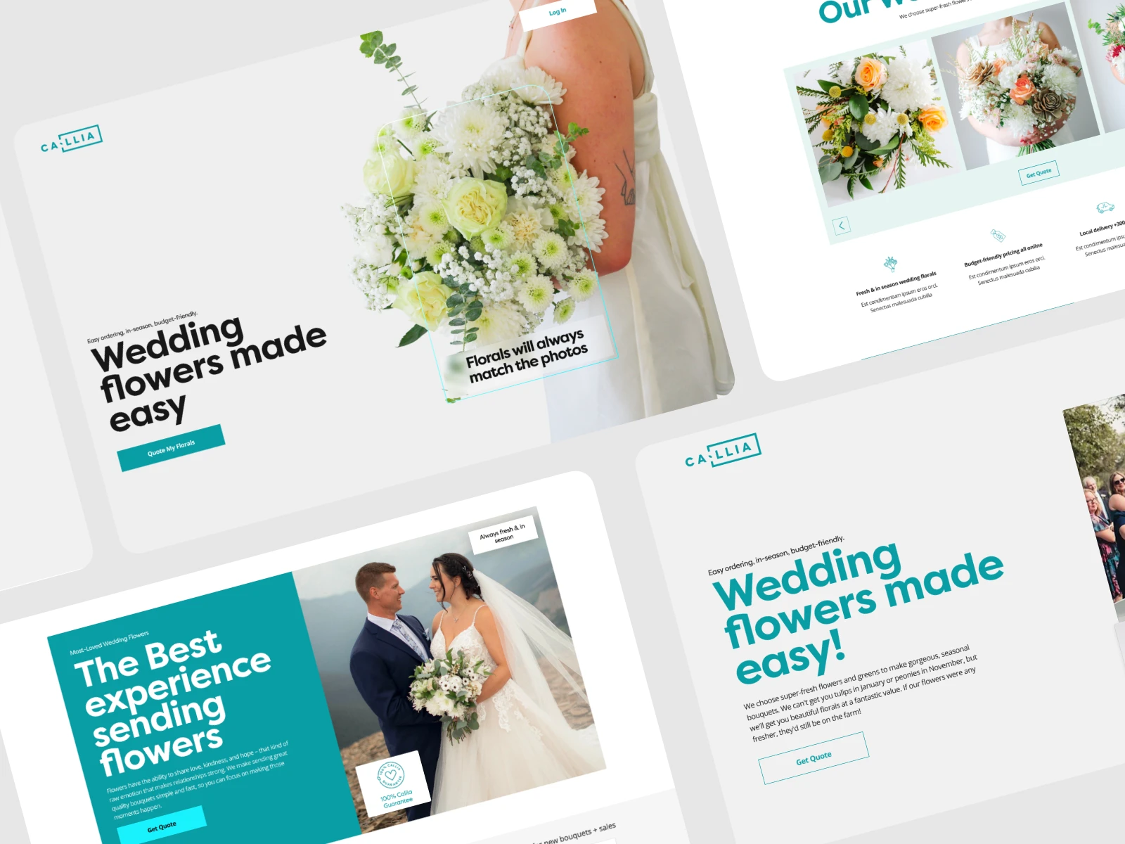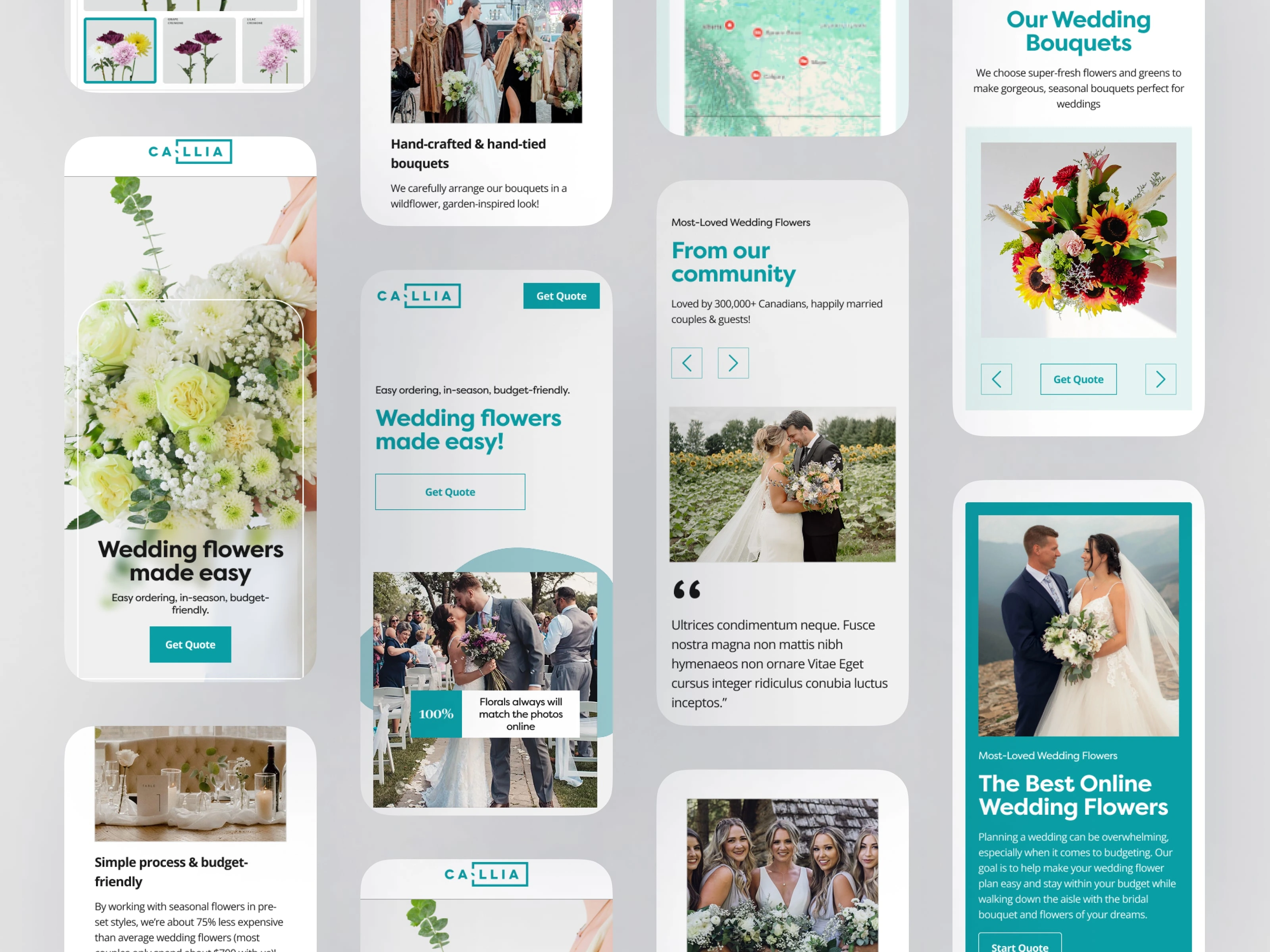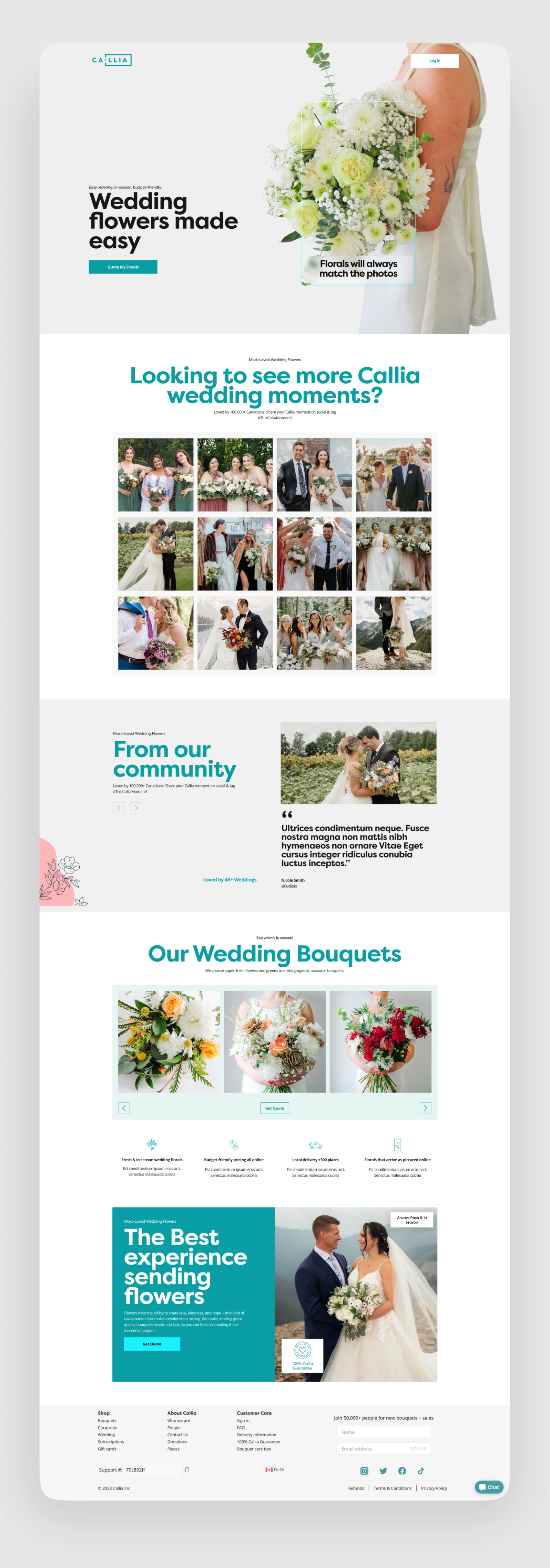 Key sections are structured to build trust and inspiration—combining real wedding imagery, community-driven content, and product showcases—while maintaining a cohesive and premium aesthetic. Overall, the design effectively balances emotional appeal with functional clarity, making the process feel simple, curated, and reliable.