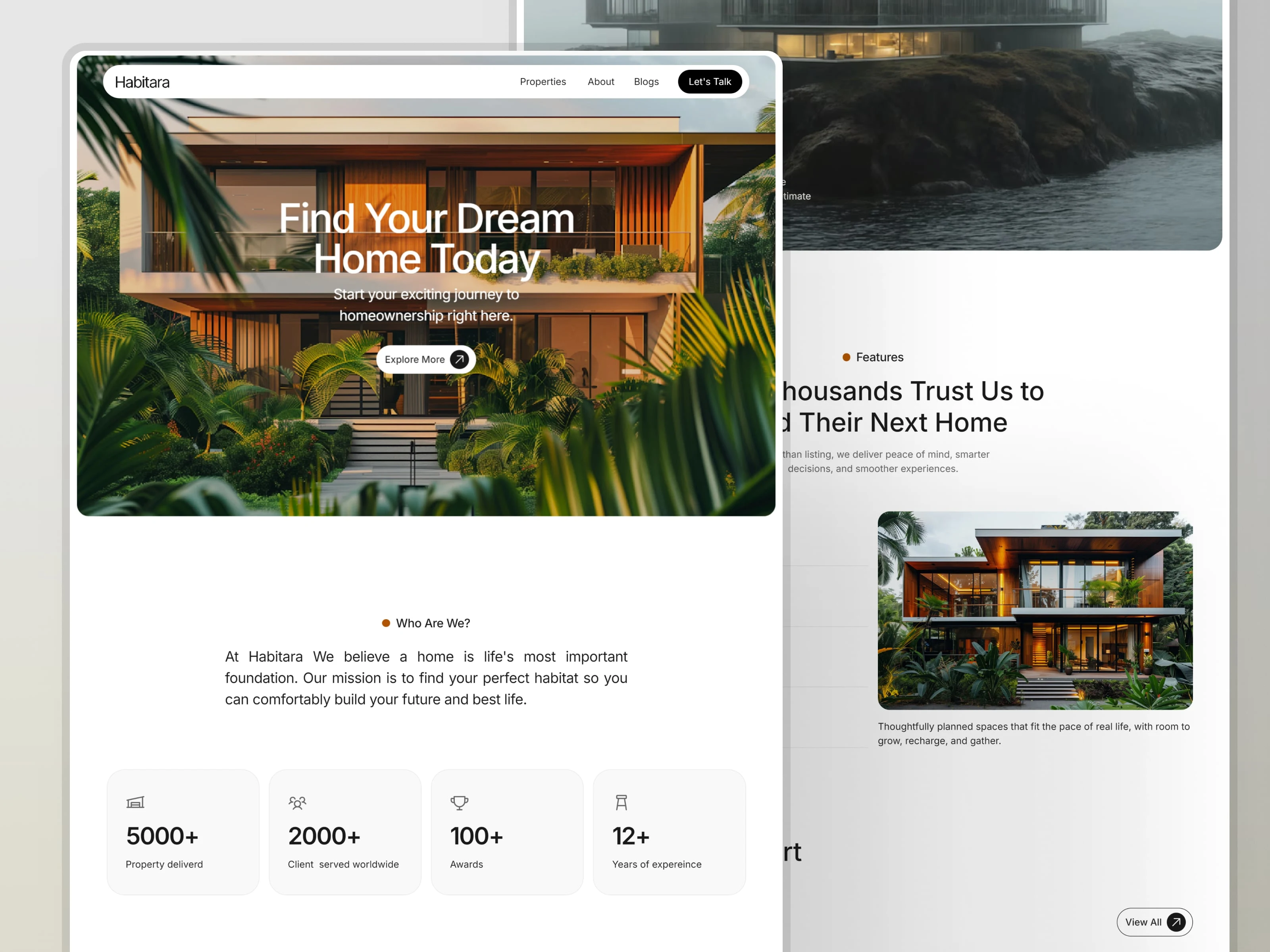 HABITARA is a modern real estate Framer website template built for agencies, architects, and construction companies to showcase properties and services with clarity and style.