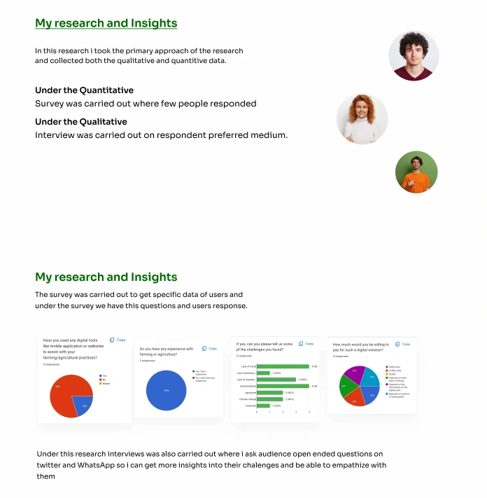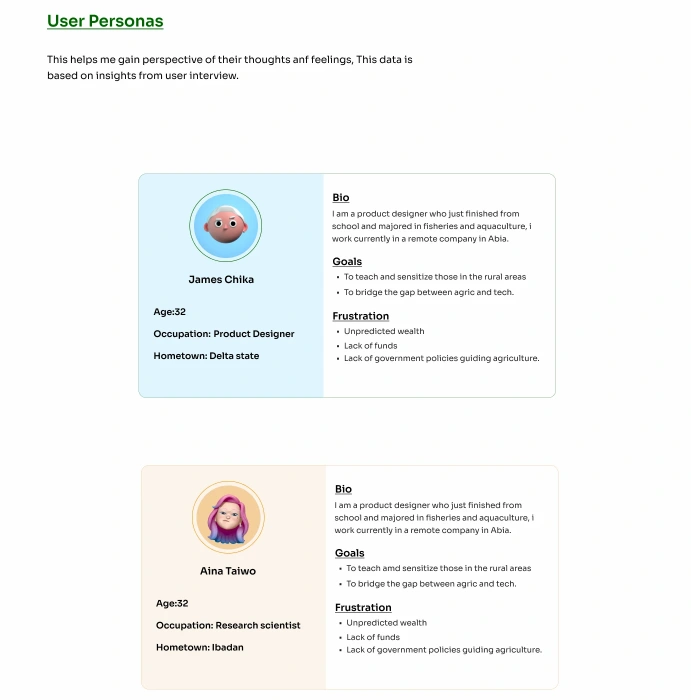 To understand the needs of the target users—smallholder farmers in rural areas—I conducted a mix of secondary research and user persona development. Key findings included: