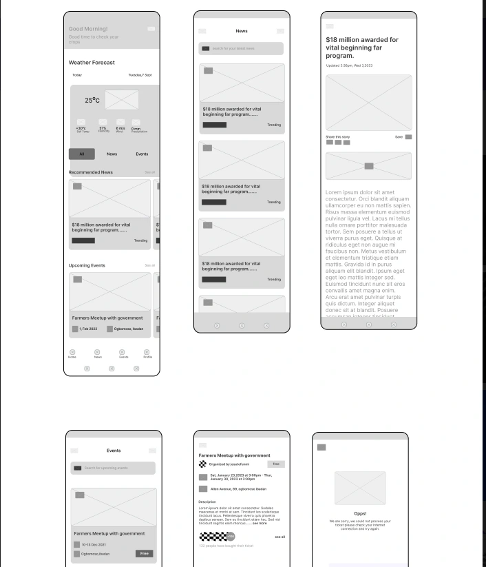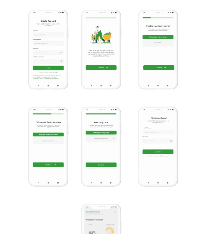 Agrikonnect is a conceptual mobile app designed to empower farmers with timely agricultural insights, market updates, and productivity tools. The goal was to create a digital product that bridges the gap between rural communities and essential farming resources—delivered through a clean, intuitive interface tailored for low-tech environments.