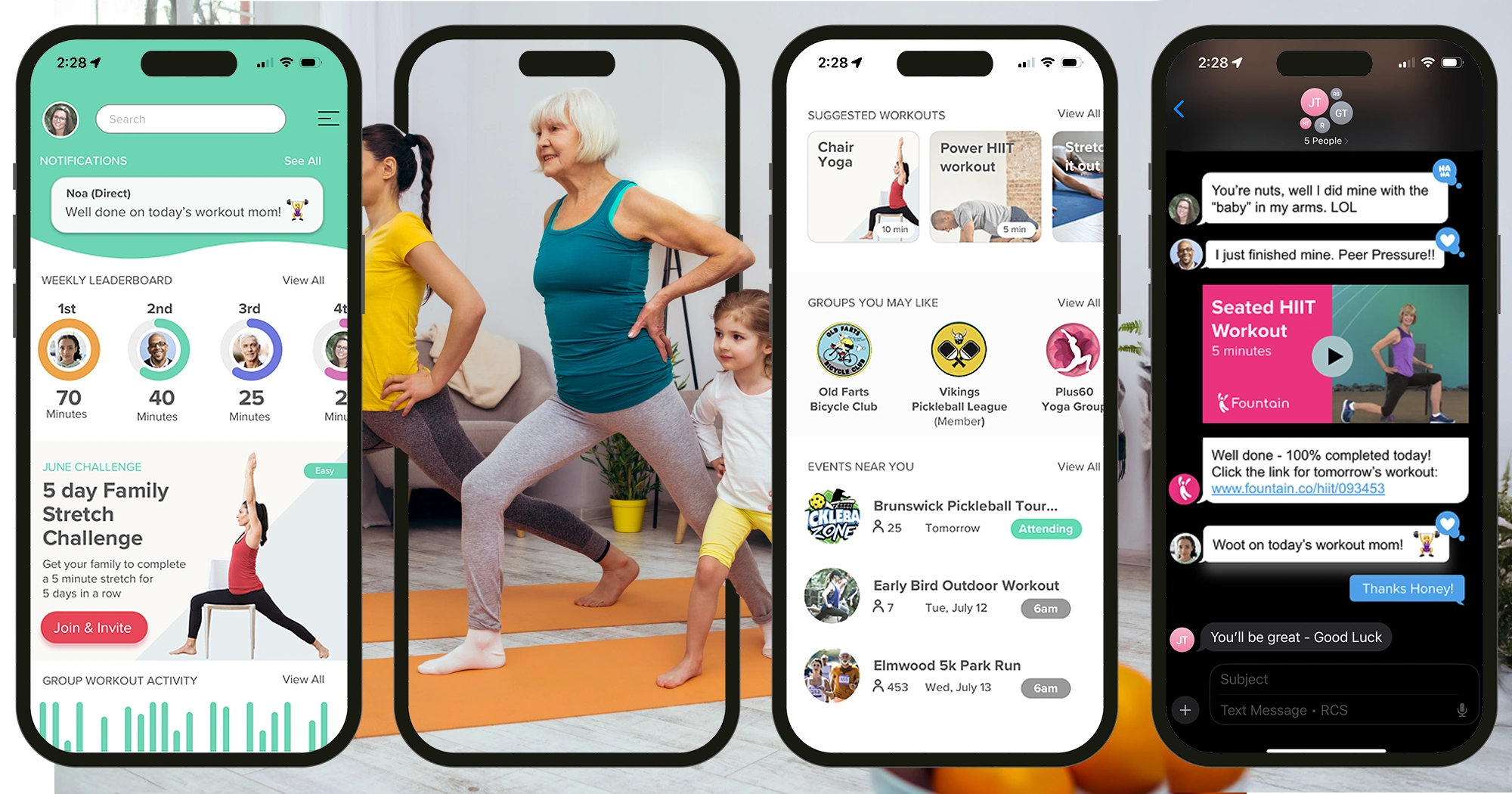 I founded and developed the end-to-end brand and design experience for Fountain Fitness, reimagining it as a habit-building, socially engaging fitness platform. We transformed a solo, transactional workout app into a vibrant, community-driven experience that could scale across generational audiences. The platform featured short, medically-reviewed workouts, social accountability mechanics, and dynamic personalization. Every design decision was guided by inclusive research and behavior design principles tailored to the needs of older users and their families.