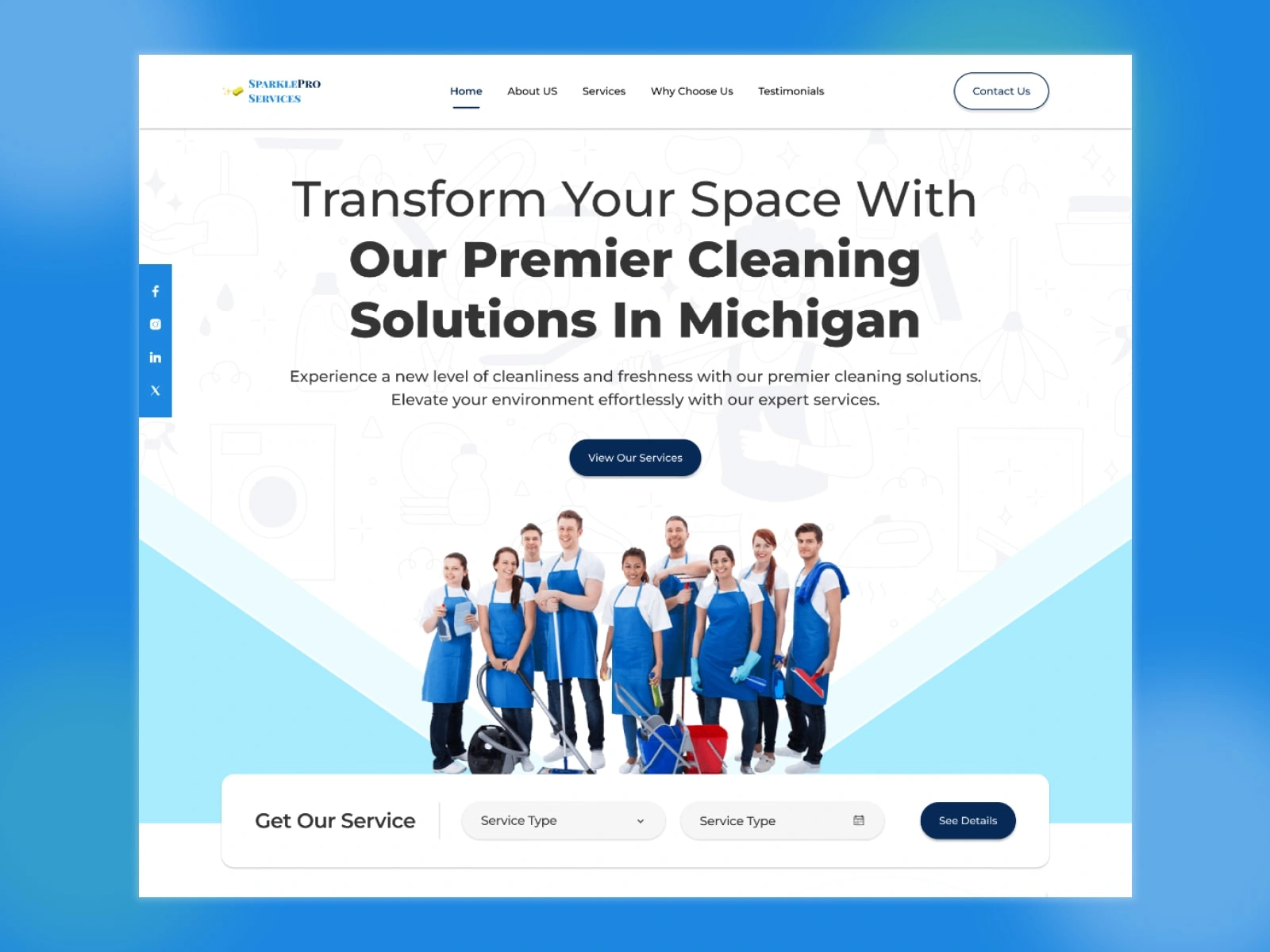 ๐ Bold, confident hero โ "Transform Your Space With Our Premier Cleaning Solutions In Michigan" โ local, direct & compelling