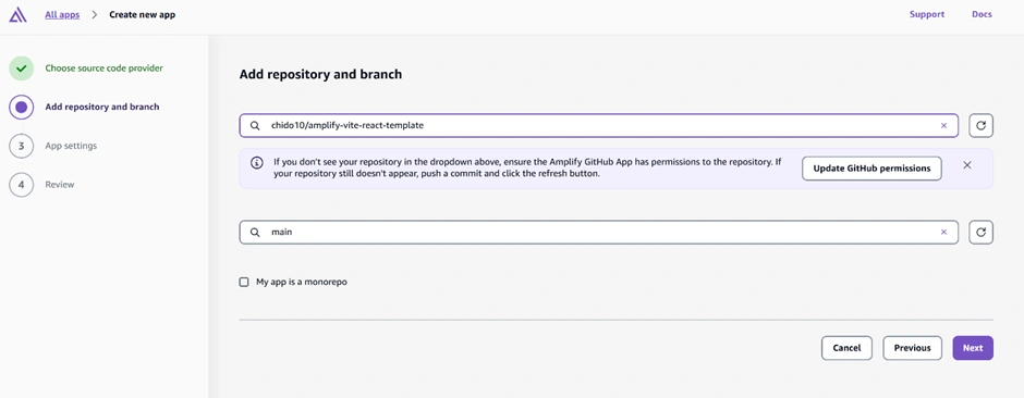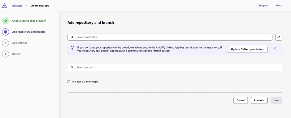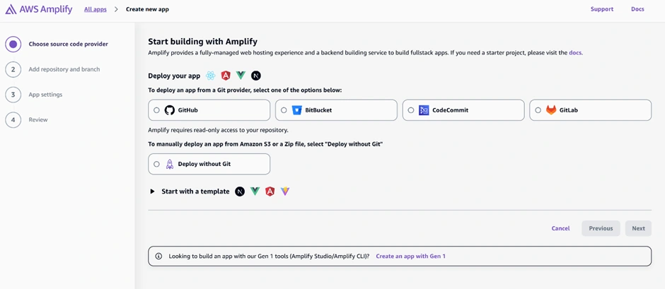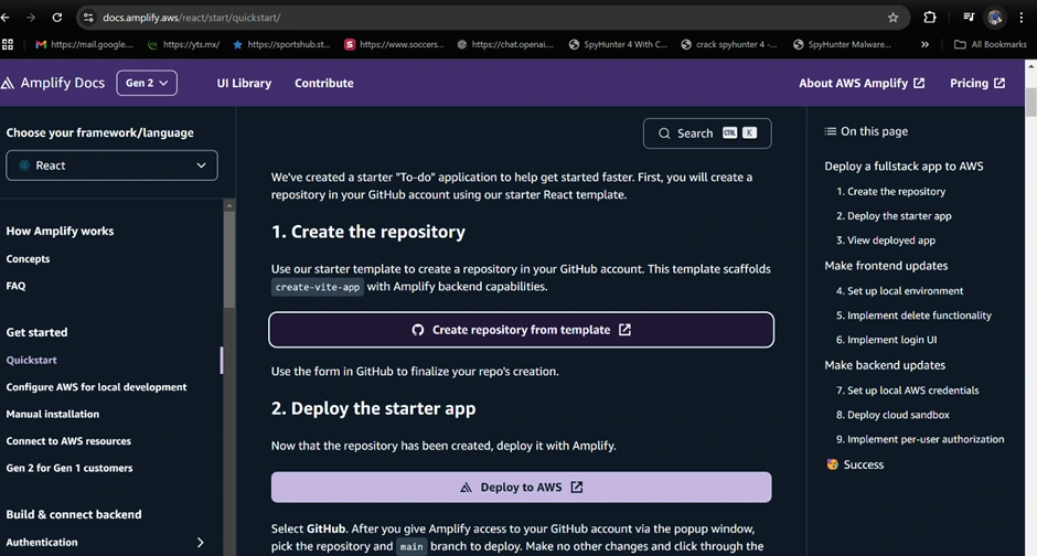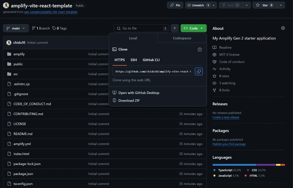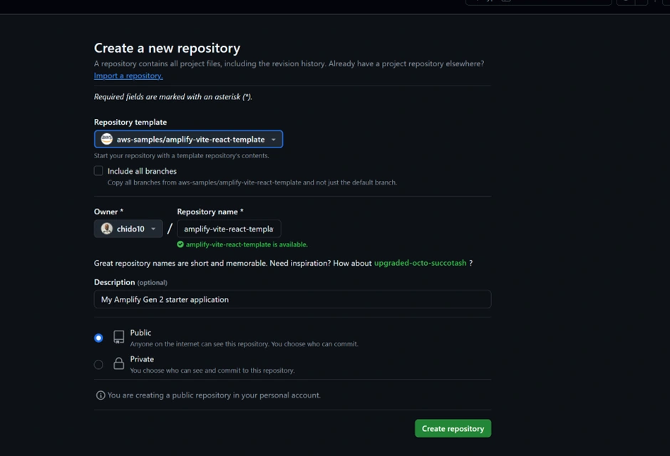 (If you prefer not to use SSO, you could create an IAM user with equivalent policies, but the above is the recommended approach for Amplify Gen 2.)amplify/ folder with predefined backend resources (a to-do database and authentication). Give your new repo a name (e.g., “amplify-todo-app”) and create it.
