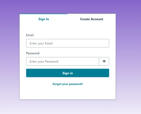 <Authenticator> component. This component automatically provides a complete authentication flow (sign-up, sign-in, password reset, etc.) without writing the forms manually. We must import the Authenticator UI as shown below if we want users to first log in using their user profiles, in our own project is email as shown above.