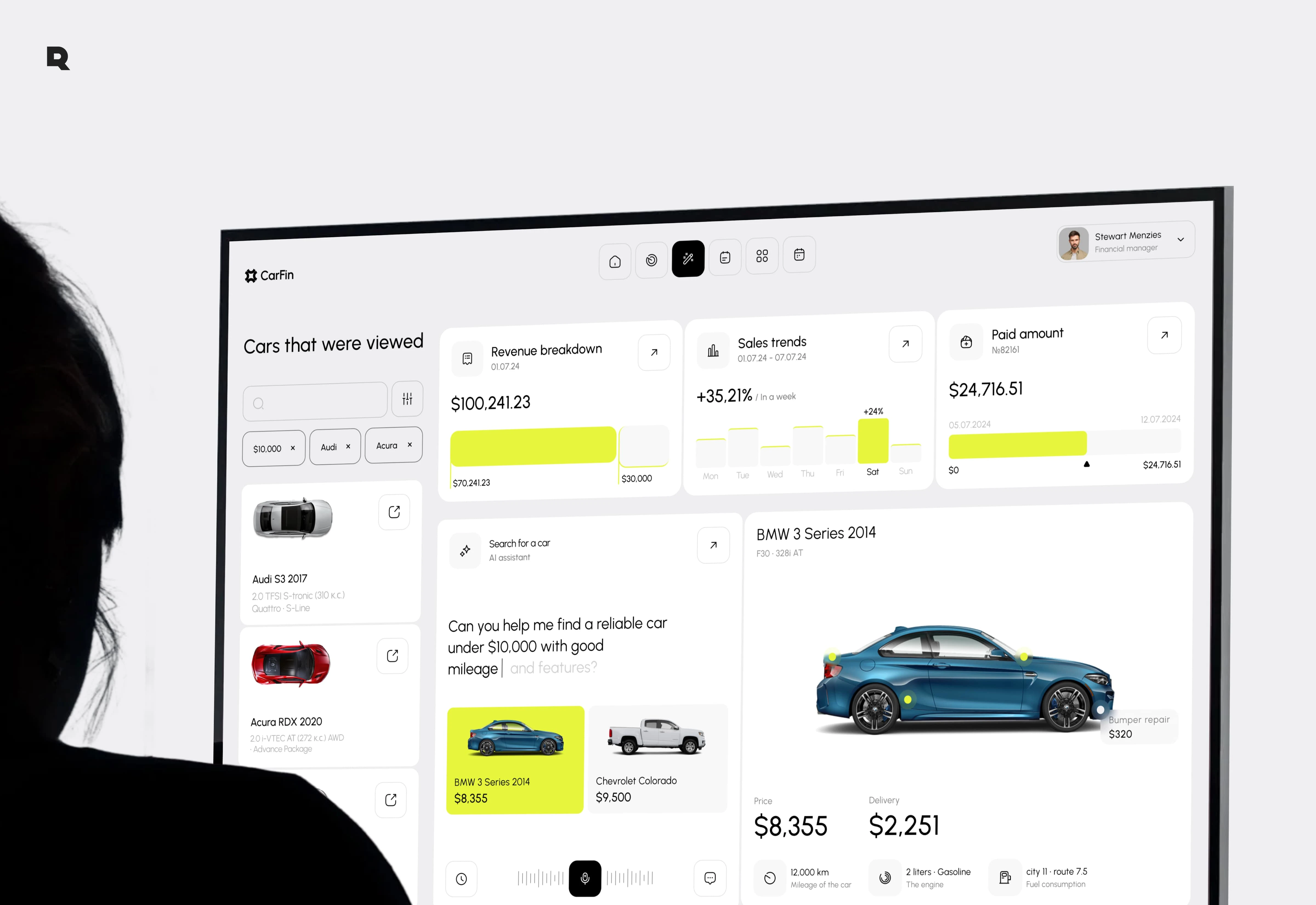 โCarFin is an AI-powered mobile application designed to revolutionize the car search and driving experience. Developed by RonDesignLab, the app integrates navigation, vehicle diagnostics, and personalized driving insights into a cohesive platform. By addressing common challenges such as cluttered interfaces and fragmented features in existing car AI assistants, CarFin aims to provide a seamless and intuitive user experience