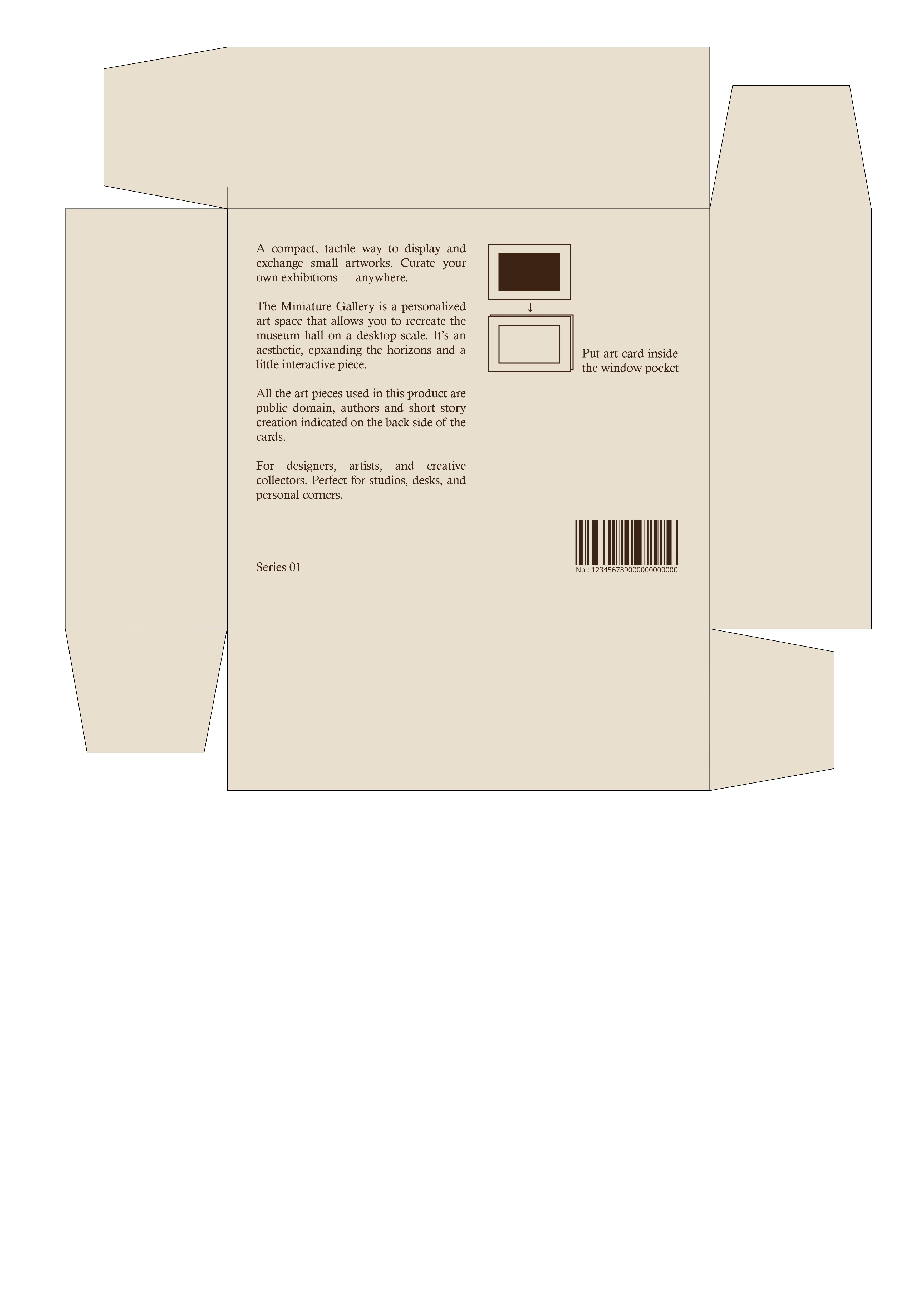 This project was created to become interactive packaging - product itself. This is a small gallery where artworks can be taken out and replaced with other