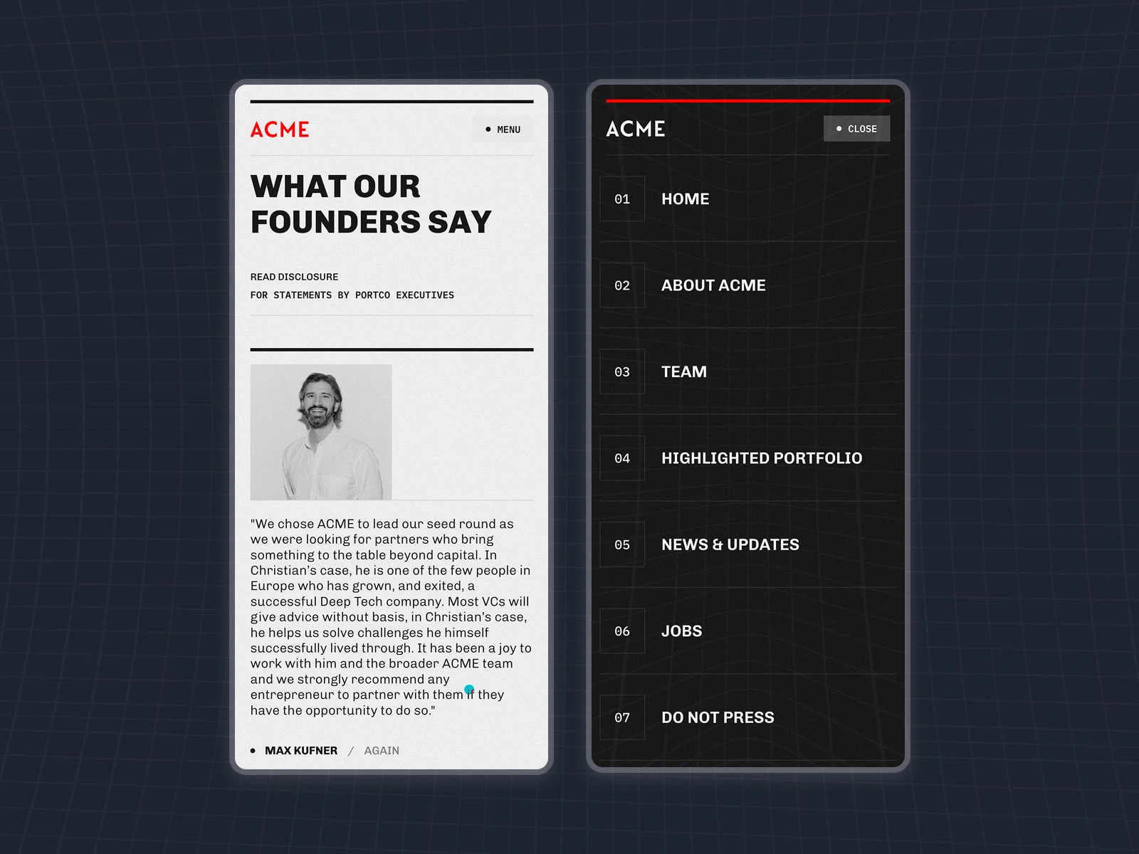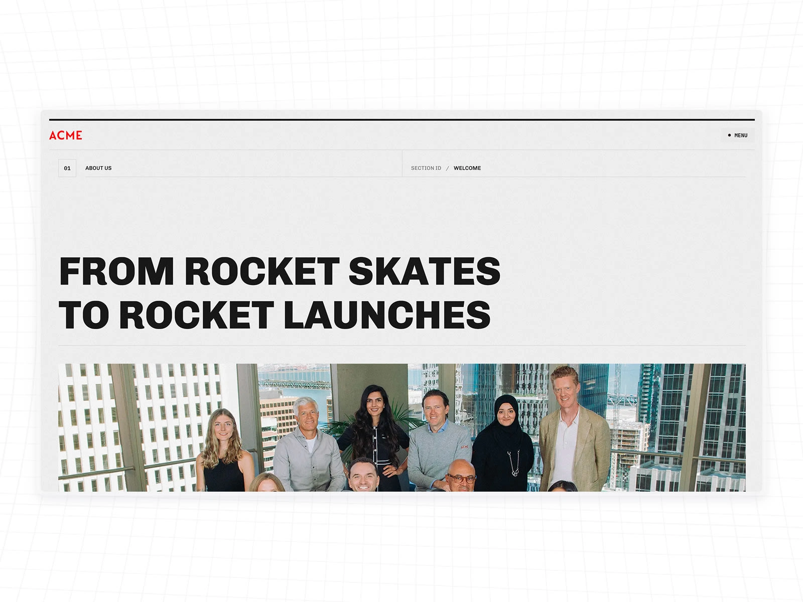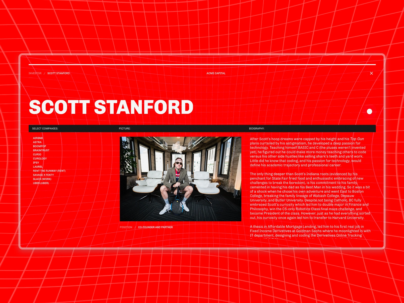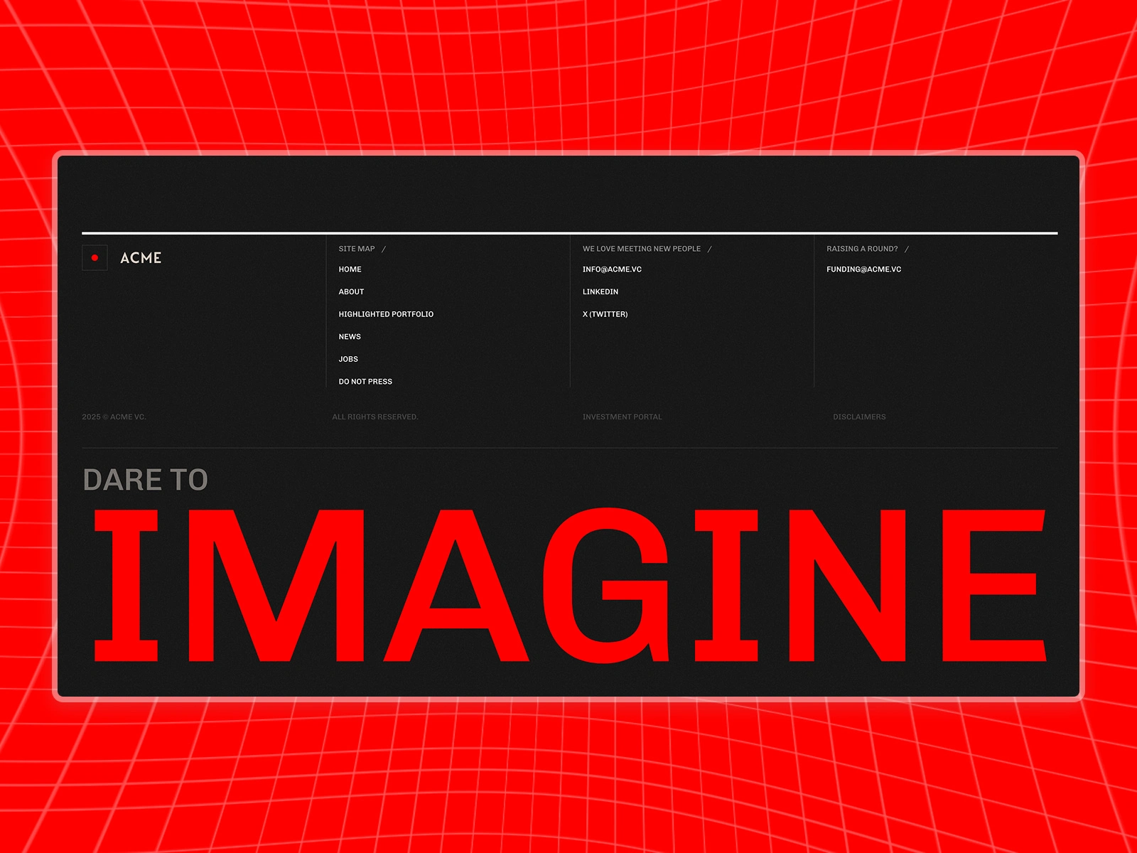 Redesigned and built Acme Capital's site in Framer with custom interactive features and WebGL interactive graphics.