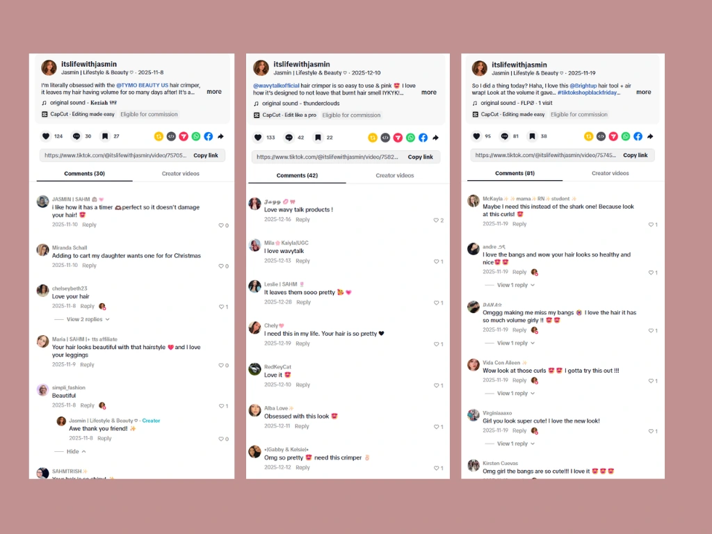Content highlights before-and-after results, styling versatility, and step-by-step routines, making product outcomes visually clear and engaging for TikTok audiences.