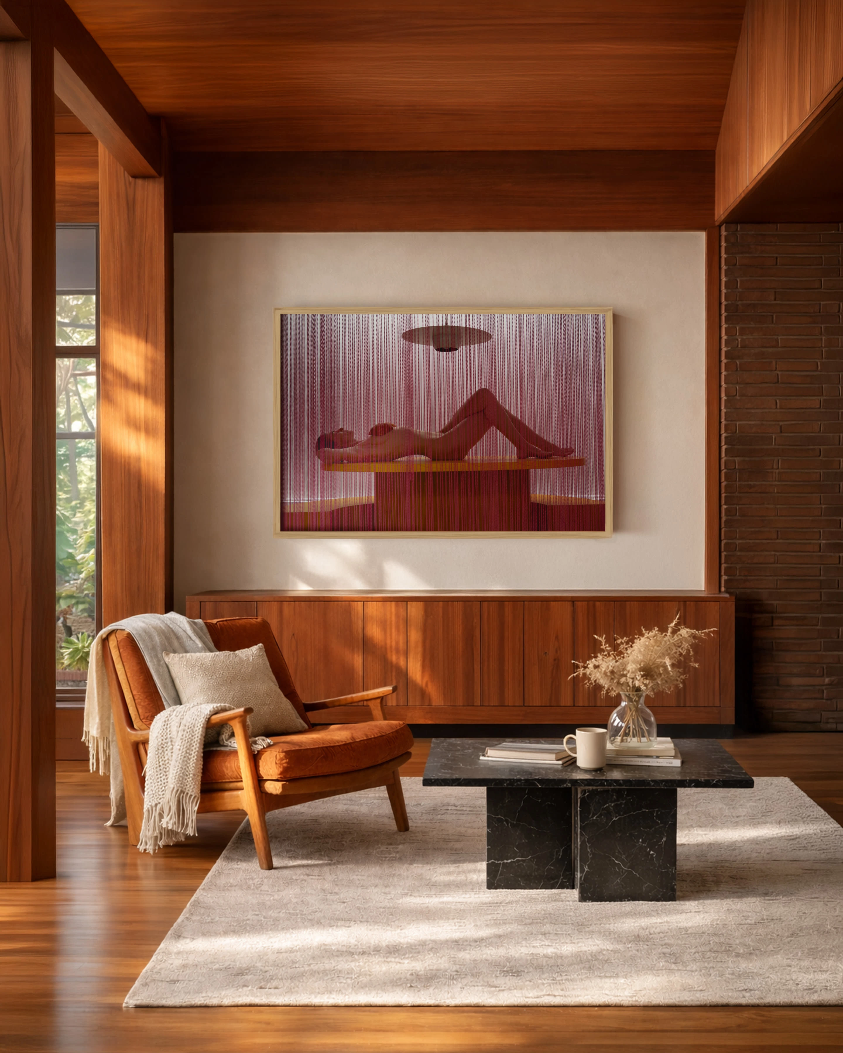 I collaborated with Irene to create AI-generated lifestyle mockups for her artwork, placing each piece in curated interior spaces designed to enhance mood, scale, and visual impact. Using her artworks as the starting point, I developed high-quality interiors and product scenes that felt bold, contemporary, and editorial, allowing the art to live naturally within aspirational environments. The final visuals were used to showcase different products and editions across her sales and marketing channels, helping present the work in a more immersive and desirable context.