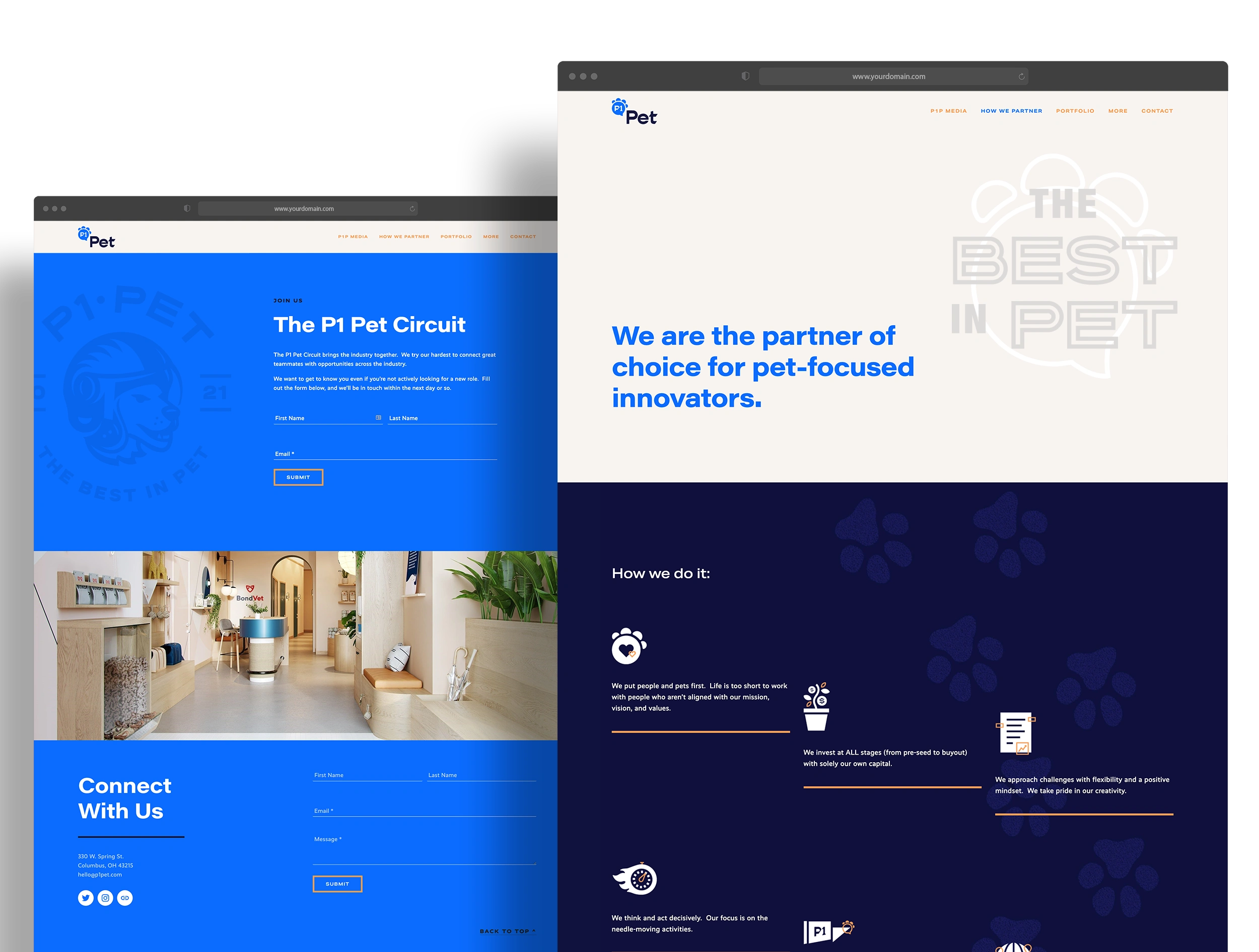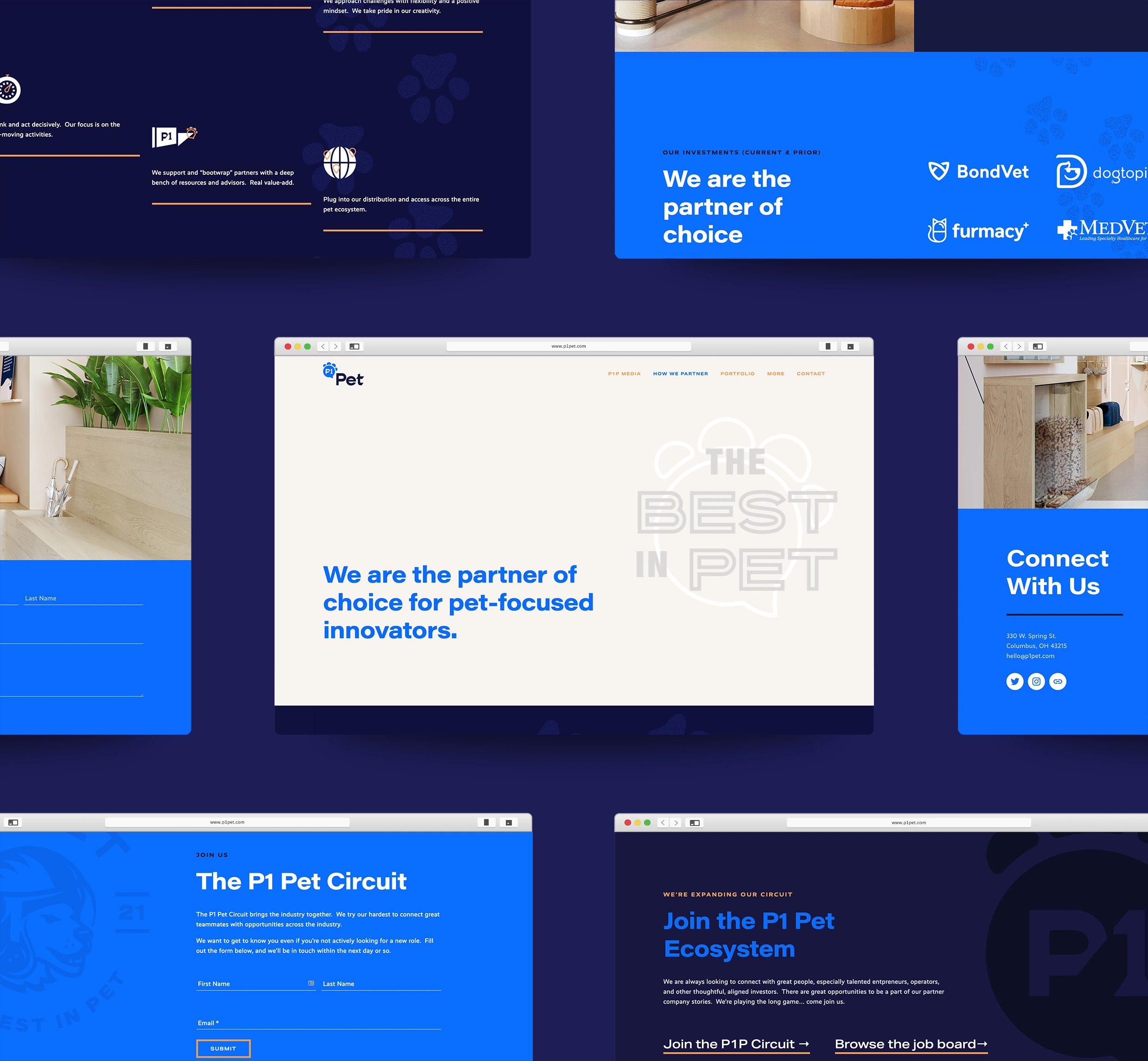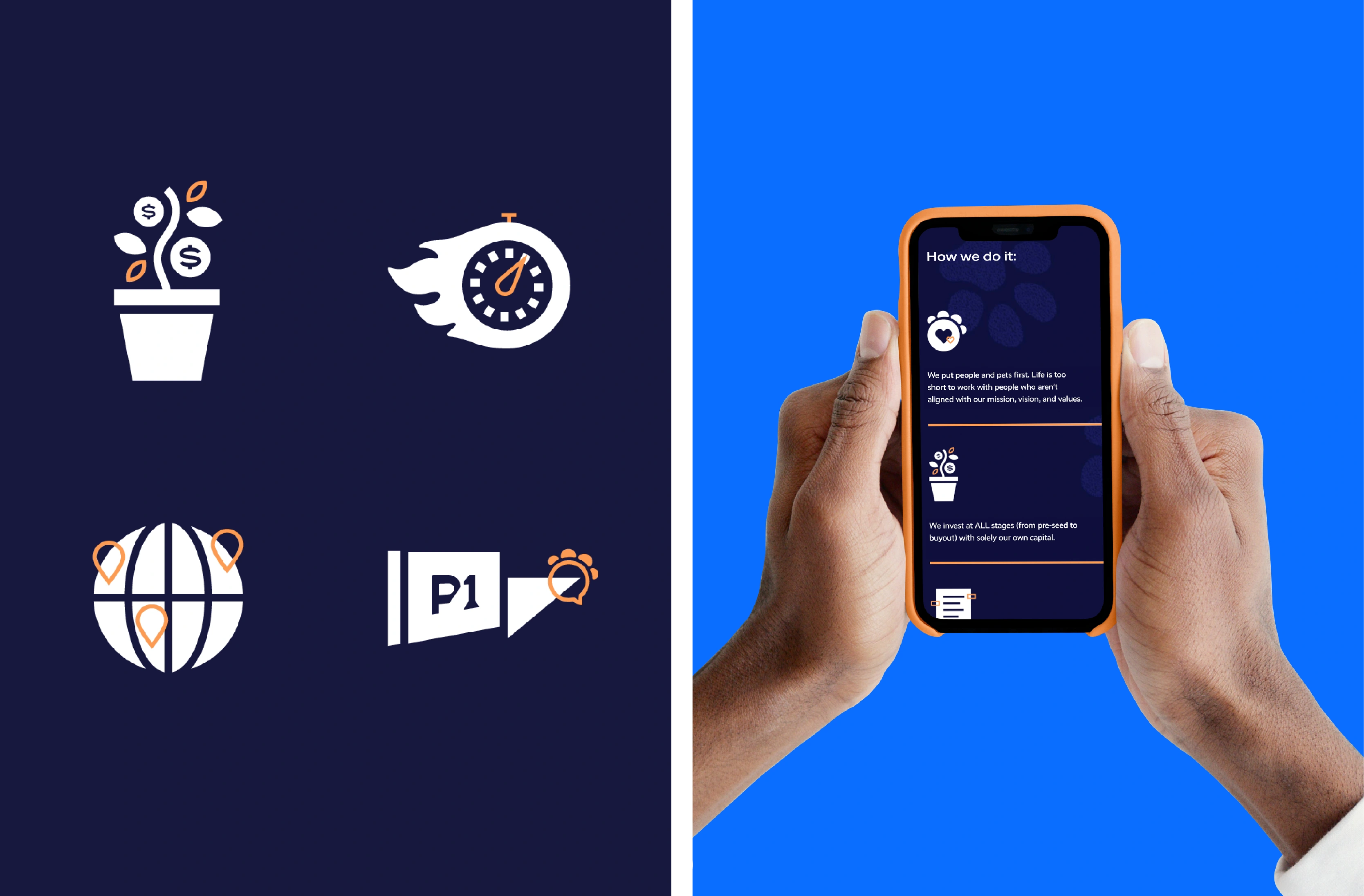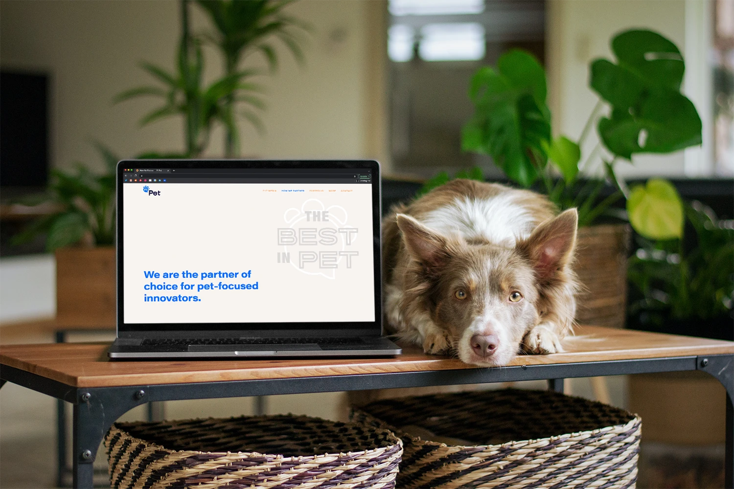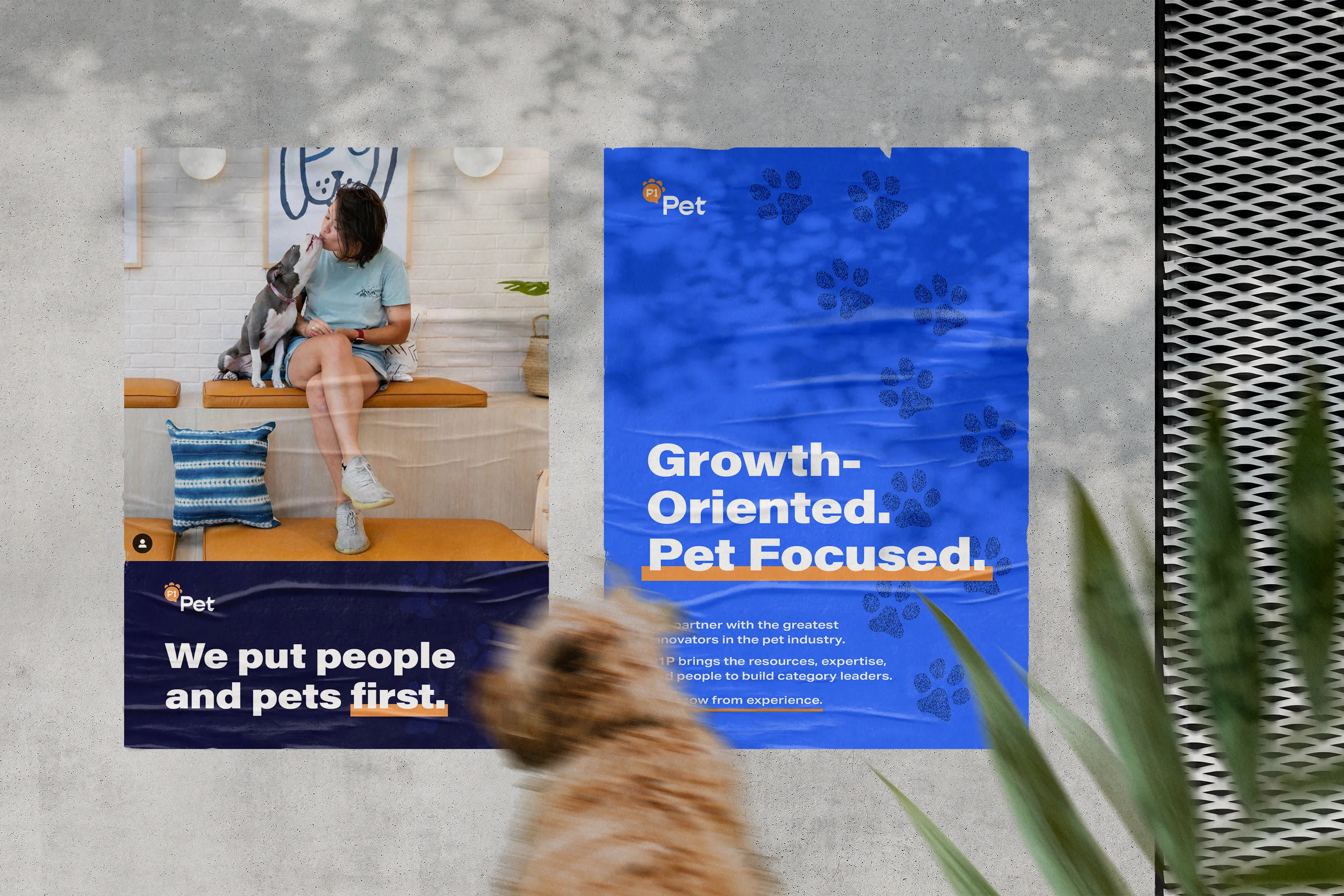 For this brand, I developed their brand strategy and full identity suite, including a logo, brand marks, color palette, typography, brand patterns, and a fully custom informational website. Since they were positioned at the intersection of pets and tech, the brand needed to balance warmth and personality with a sharp, future-forward aesthetic. The logo features a bold sans serif for a tech-driven feel, paired with a bright orange paw print icon. That paw icon was designed by merging a paw with a conversation bubble—signaling connection and community, two of their core values.