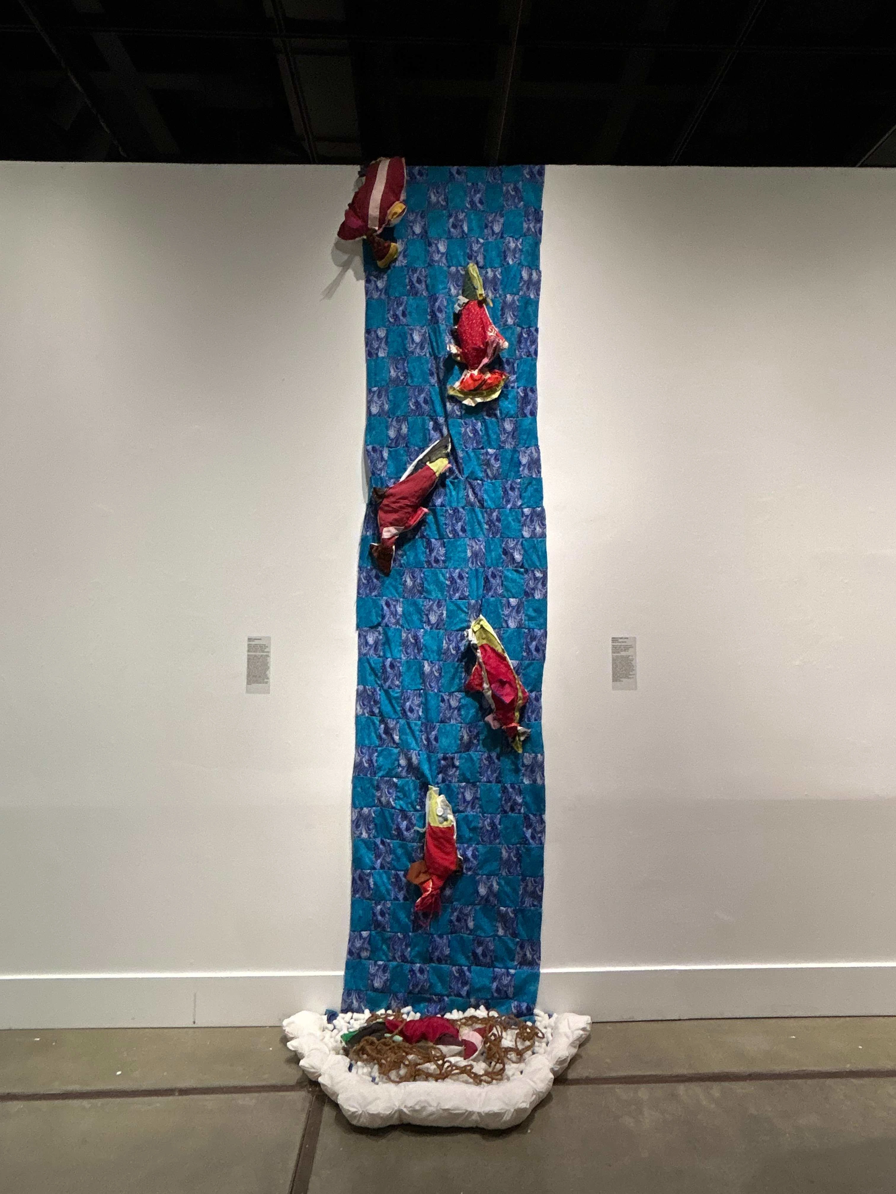 Mixed Media with Reclaim Fabric, Buttons, Zippers, and Packing Peanuts 2024 Made in collaboration with Miguel Gamez-Macias