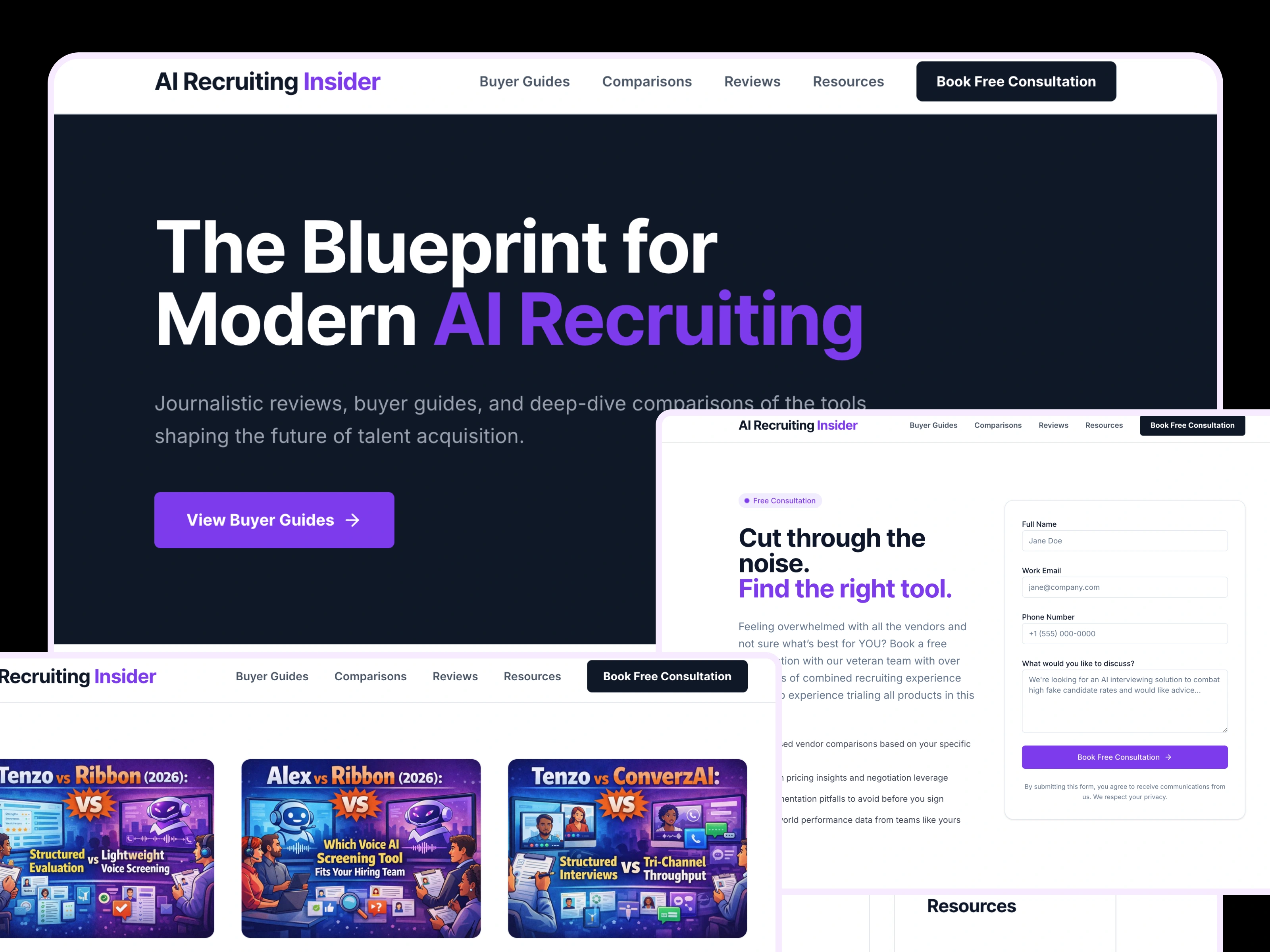 AI Recruiting Insider, a content platform tailored for HR tech buyers. The project focused on performance, clean architecture, and a strong visual identity.