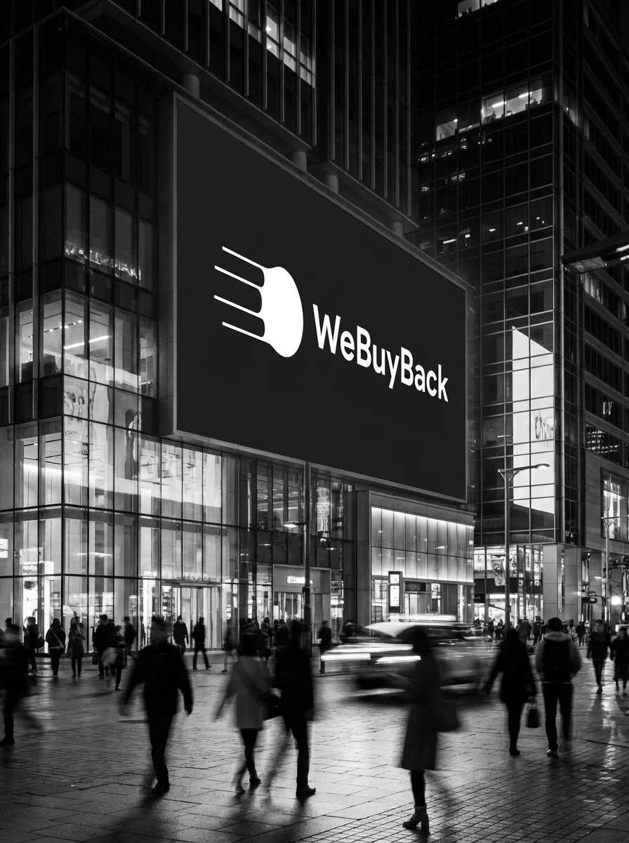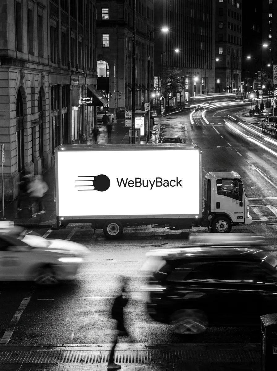 Full rebrand for WeBuyBack. The new logo utilizes a high-speed trailing effect to convey rapid movement and efficiency. By blending industrial minimalism with atmospheric motion, the brand now feels as fast as the service it provides.