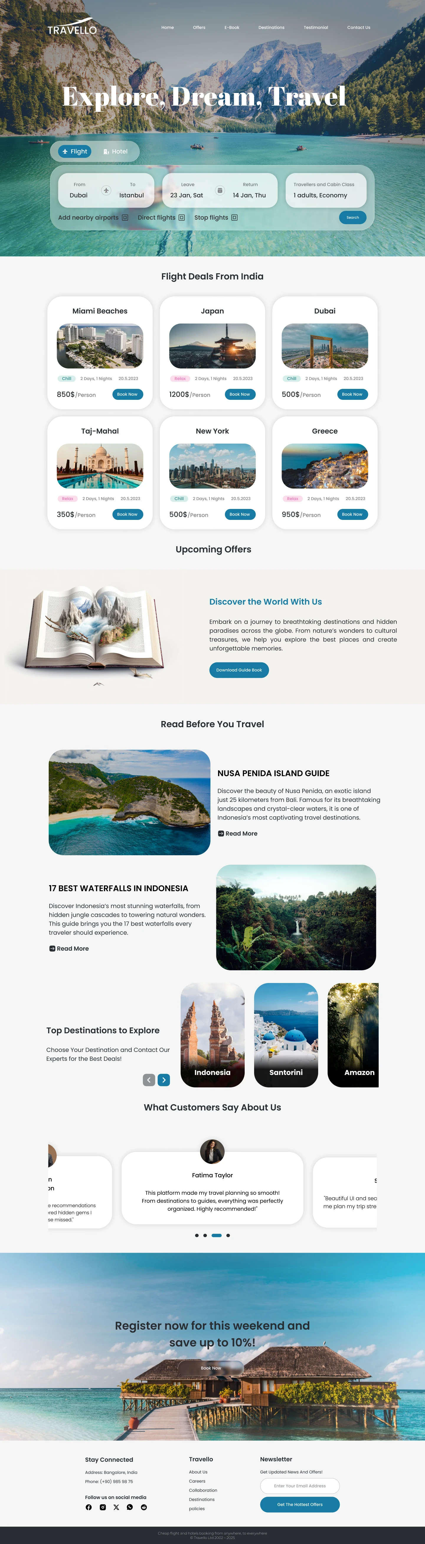 From curated guides to hidden gems, Travello combines stunning visuals, intuitive navigation, and seamless booking flows — making travel planning feel less like a task and more like an adventure.
