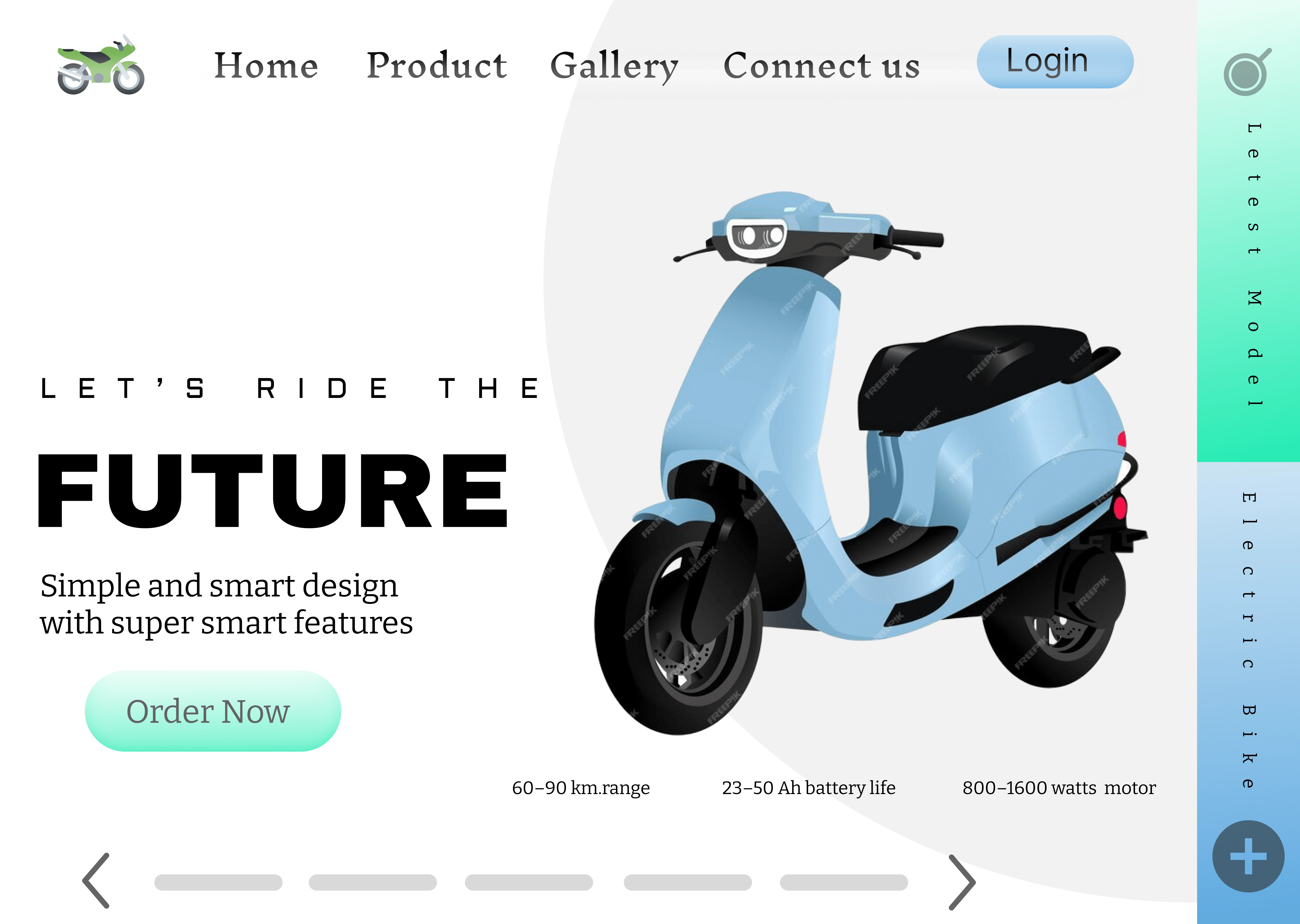 The EV Bike website layout is created in figma to represent the design as an example