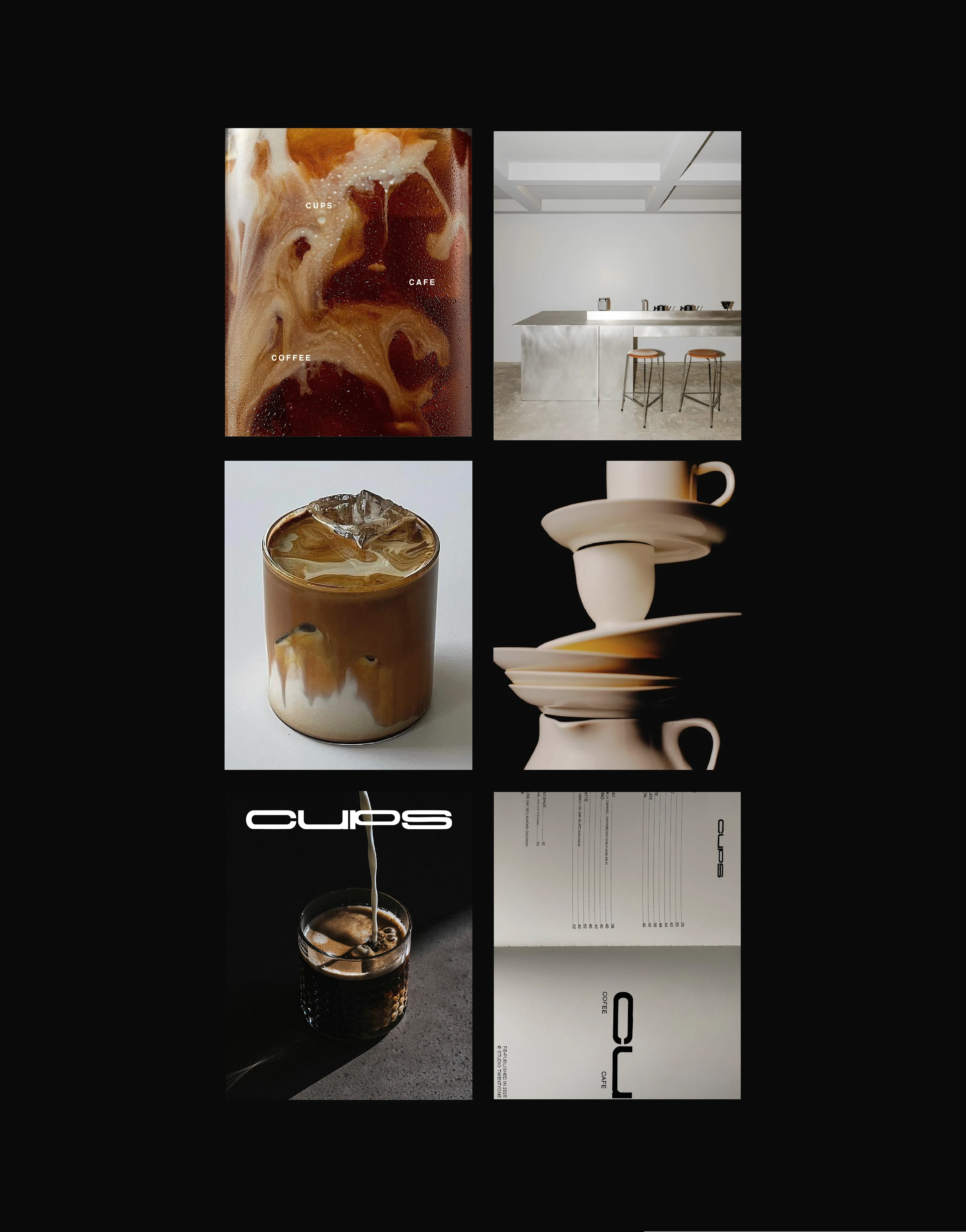 Full brand identity for a contemporary coffee shop with Scandinavian minimalism and East Asian interior influences.