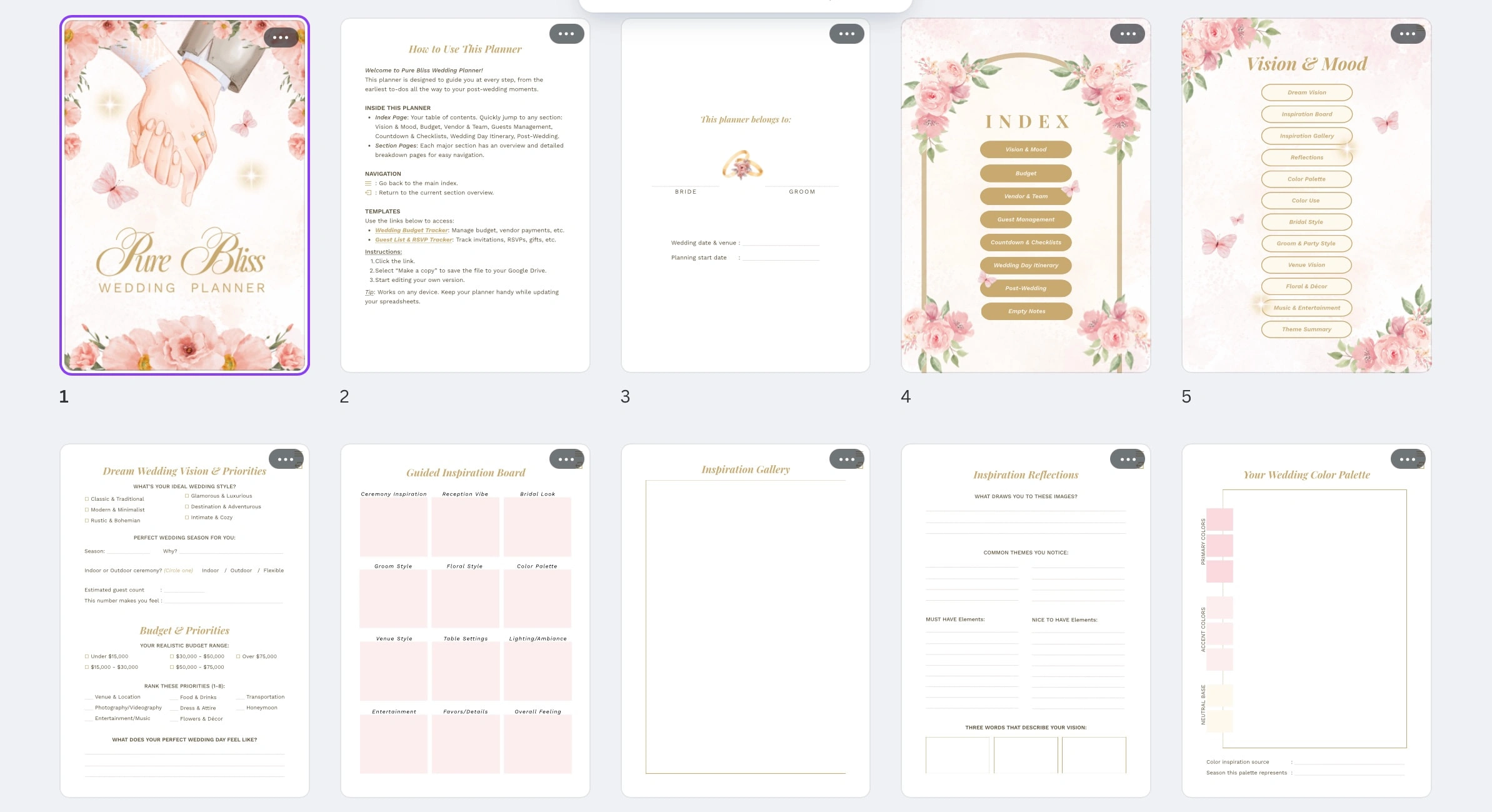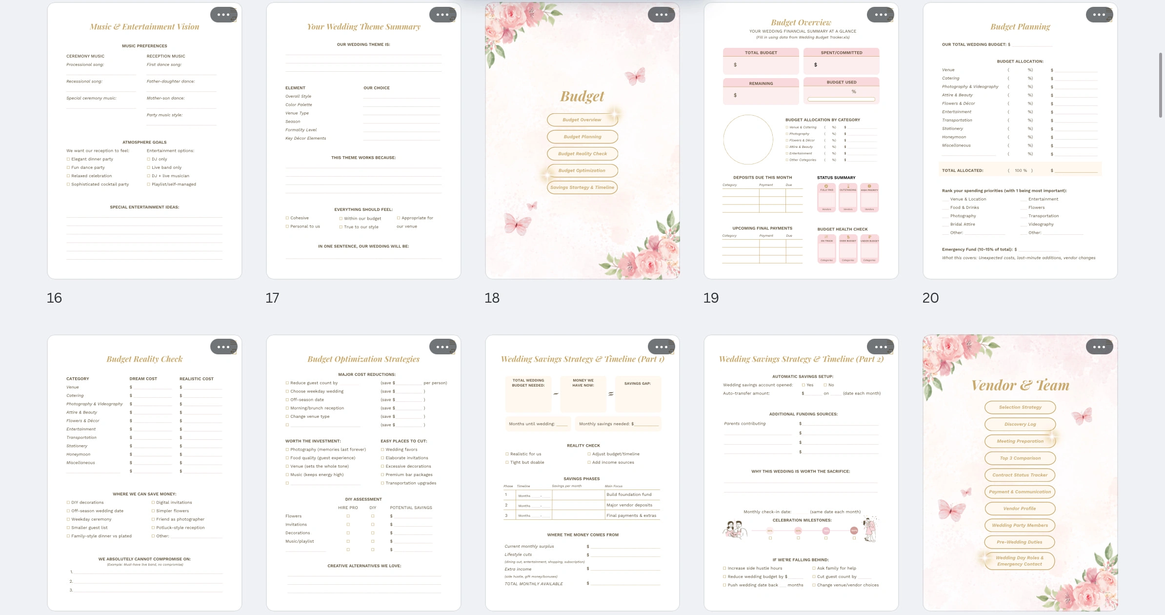 4. Design, Visuals & Interactivity – Once the structure was approved, I applied the full visual design: color palette, typography, and decorative elements. I also added hyperlink navigation to make the PDF interactive and easy to use. This turned the planner into a smooth, clickable experience rather than just a static document.