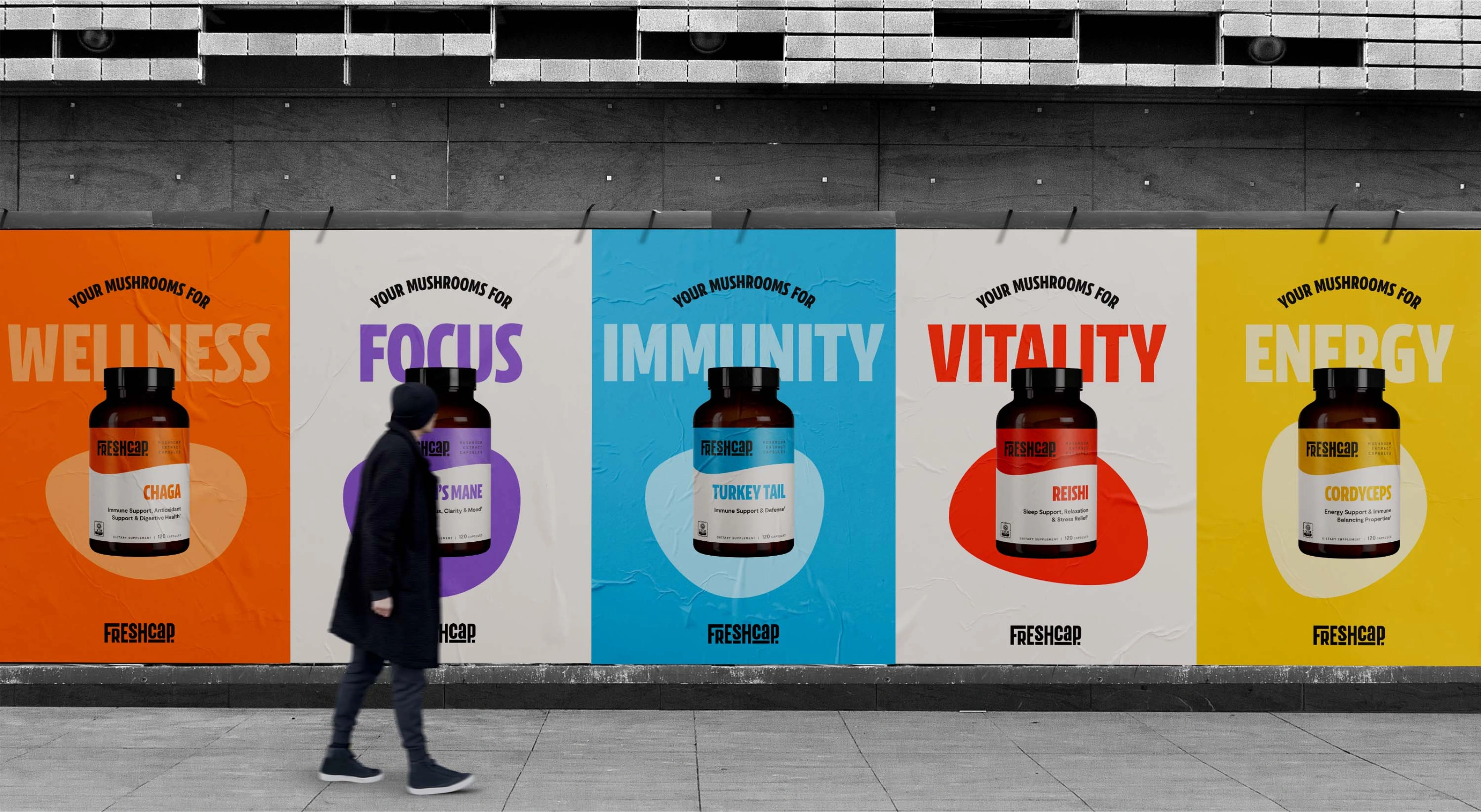 From the start we knew that FreshCap was going to be something special. Their brand needed to be functional and informative, but we also saw an opportunity to make a splash with something bold and unexpected. Our collaborative approach allowed the founders’ personalities to shine through, guiding us through the fantastic world of fungi to arrive at something energetic, authentic, and with tons of juicy personality.