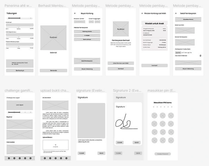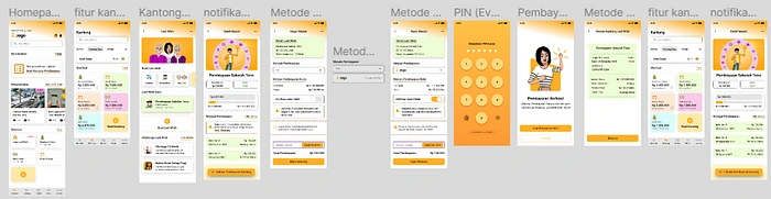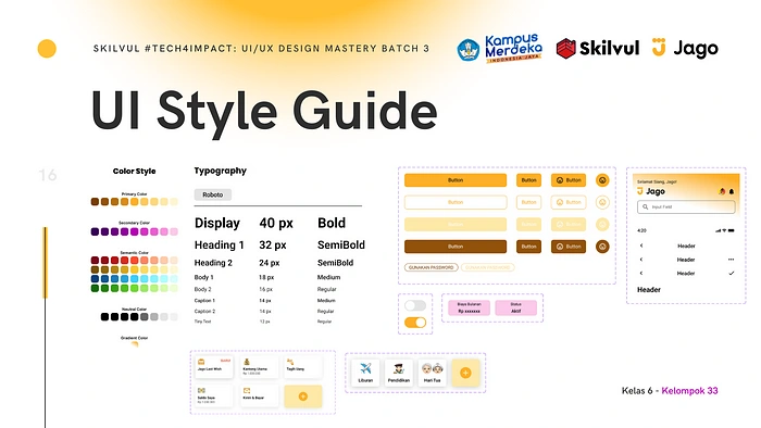 Wireframe ini berfungsi untuk mempermudah desainer dalam proses pembuatan pada tahap UI Design. Sebelum masuk ke dalam UI Design kami membuat design system, hal ini berguna untuk memudahkan masing-masing dari desainer agar dapat konsisten dalam pembuatan suatu aplikasi seperti color style, icon, dan yang lainnya.