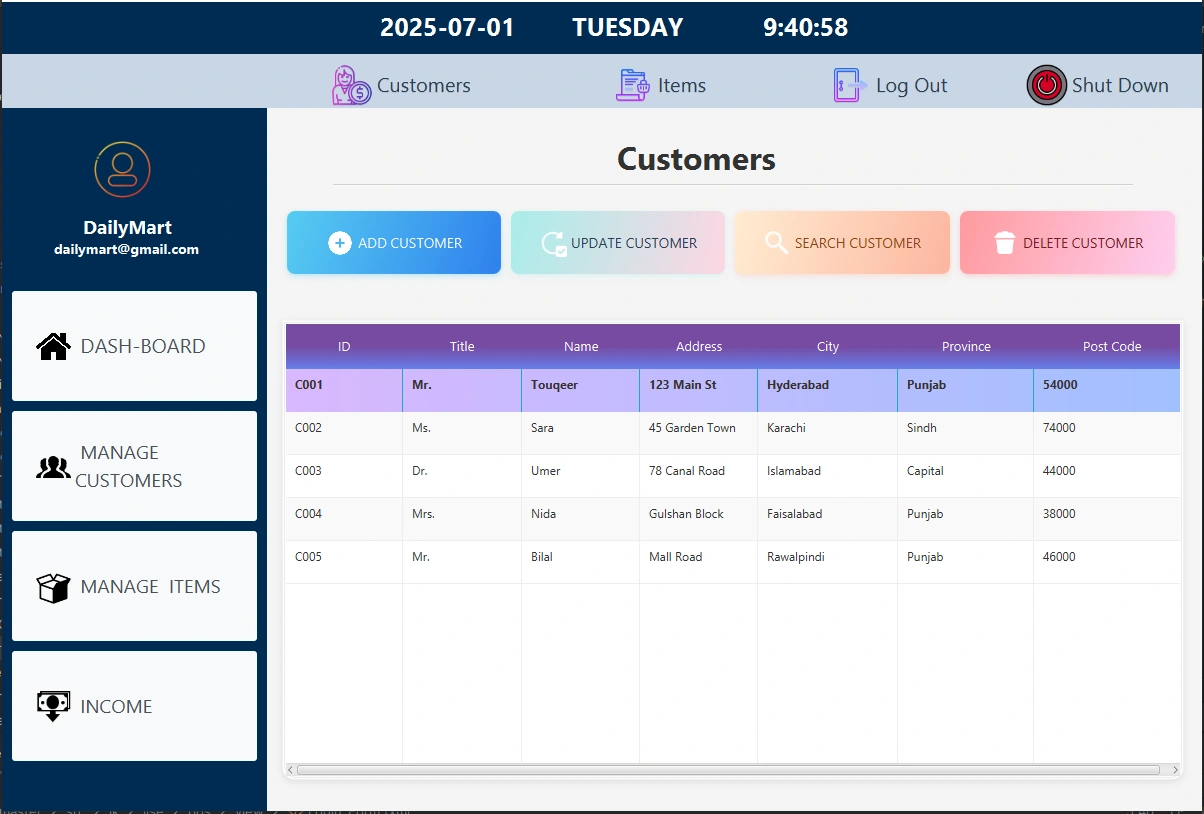 JavaFX POS : Features: role-based login, separate admin/cashier dashboards, order/customer/item management, and full order CRUD. Efficient inventory/sales