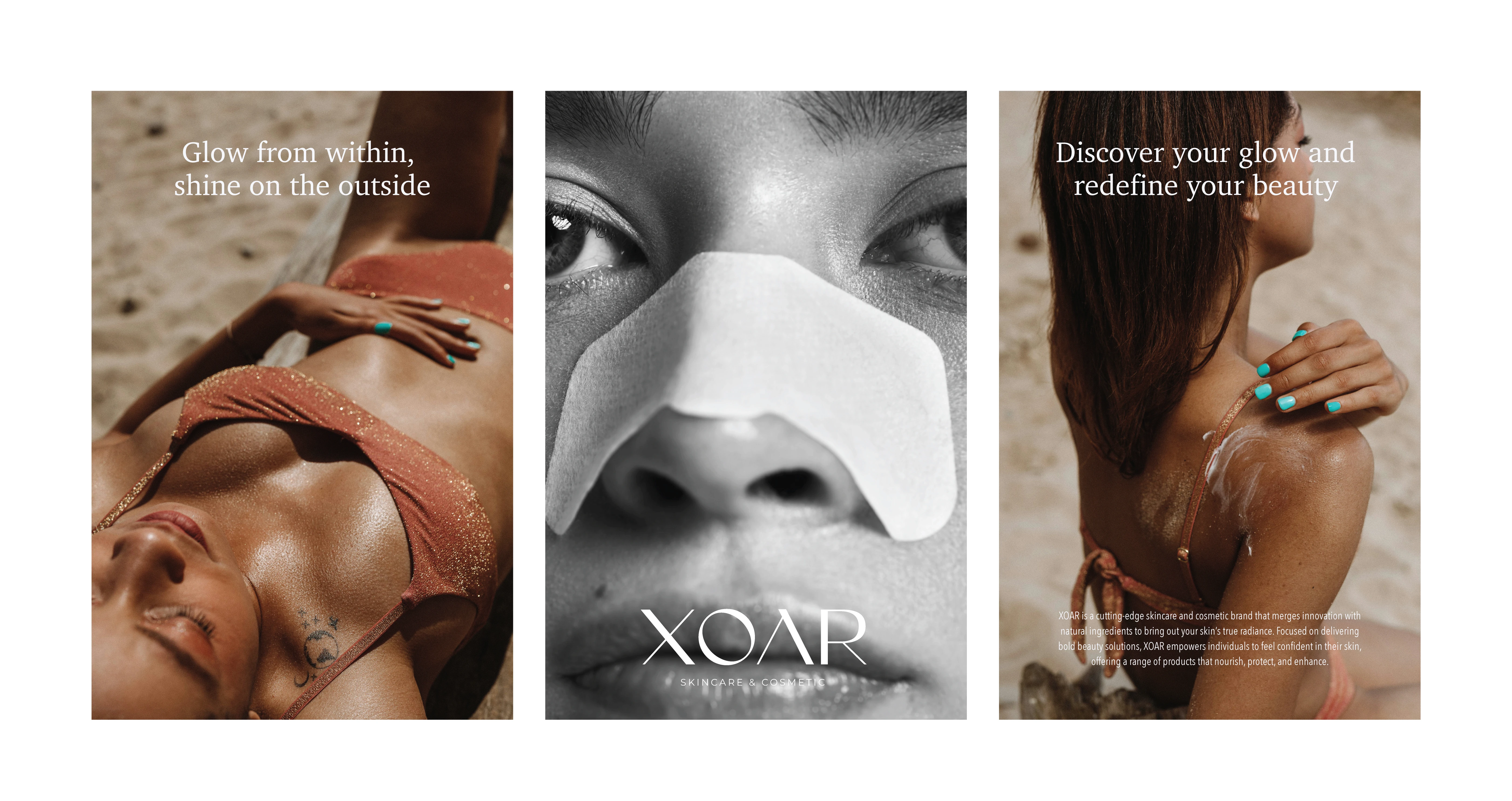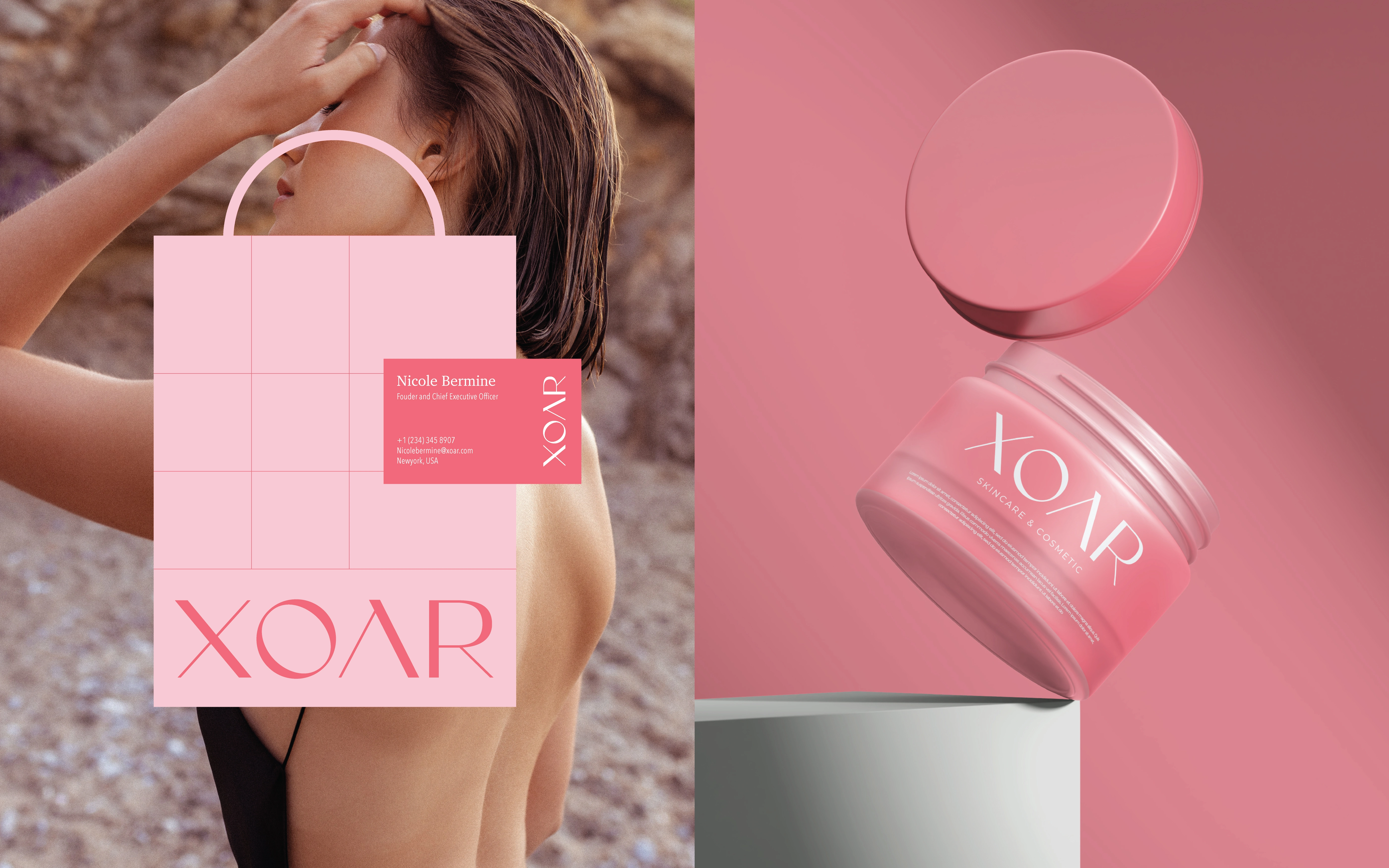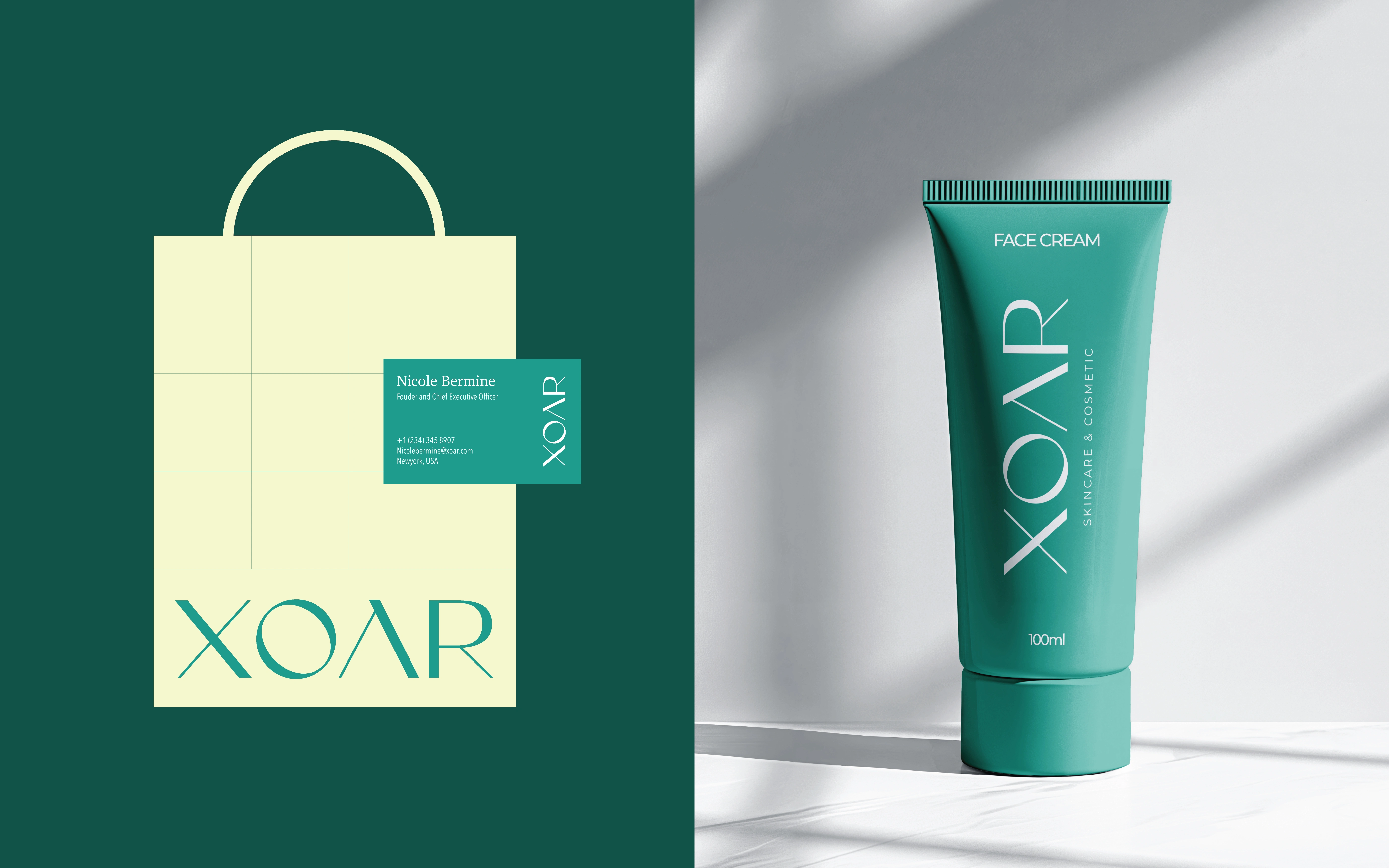 The XOAR logo, crafted as a sophisticated typography-based design, reflects the brand’s minimalist yet impactful approach to beauty. Set in warm, inviting colors, the logo embodies the essence of comfort, inclusivity, and the natural glow that the brand represents. The warm tones of the palette create a sense of trust and calm, mirroring XOAR’s dedication to nurturing and enhancing your skin with care.