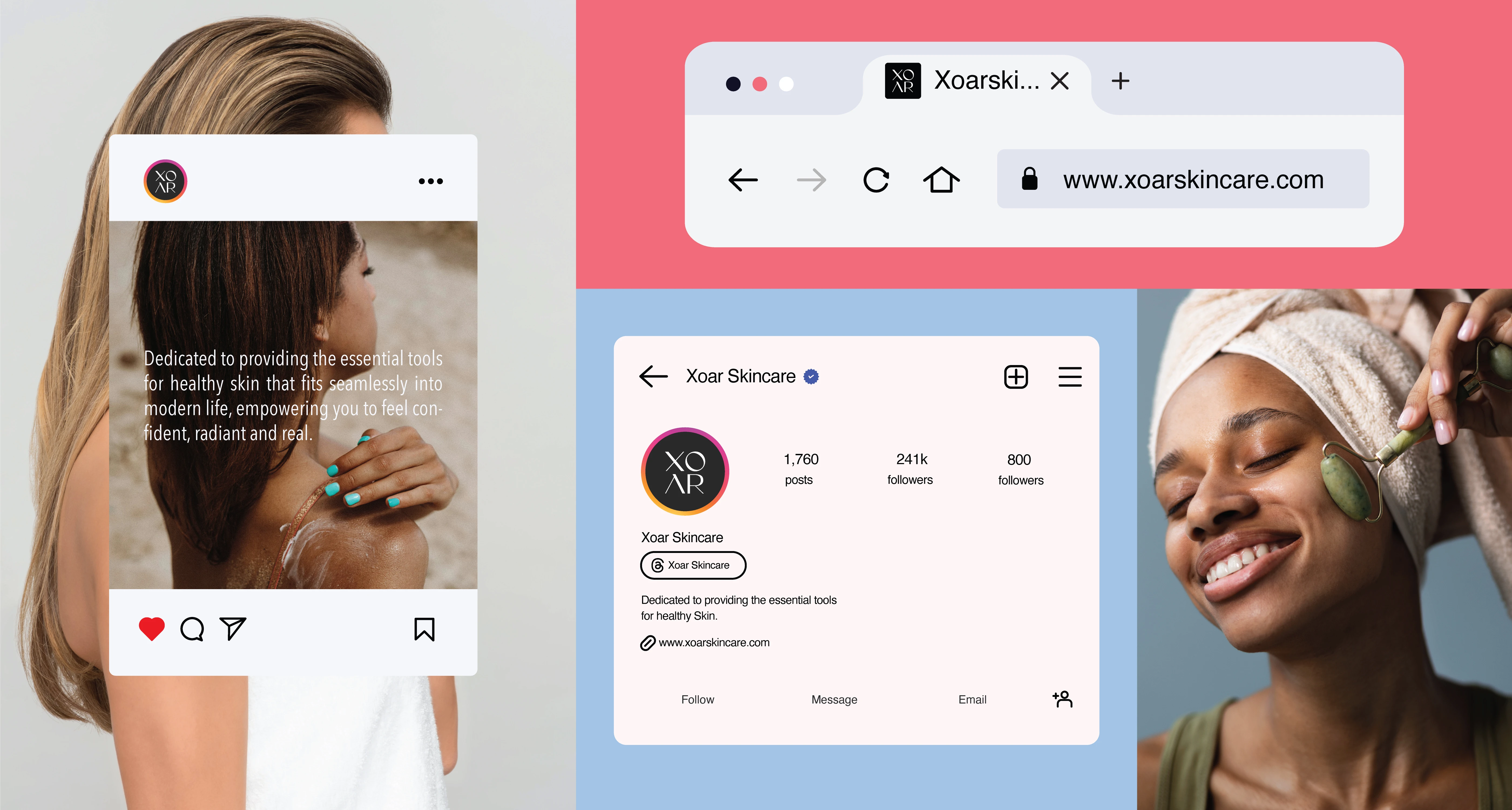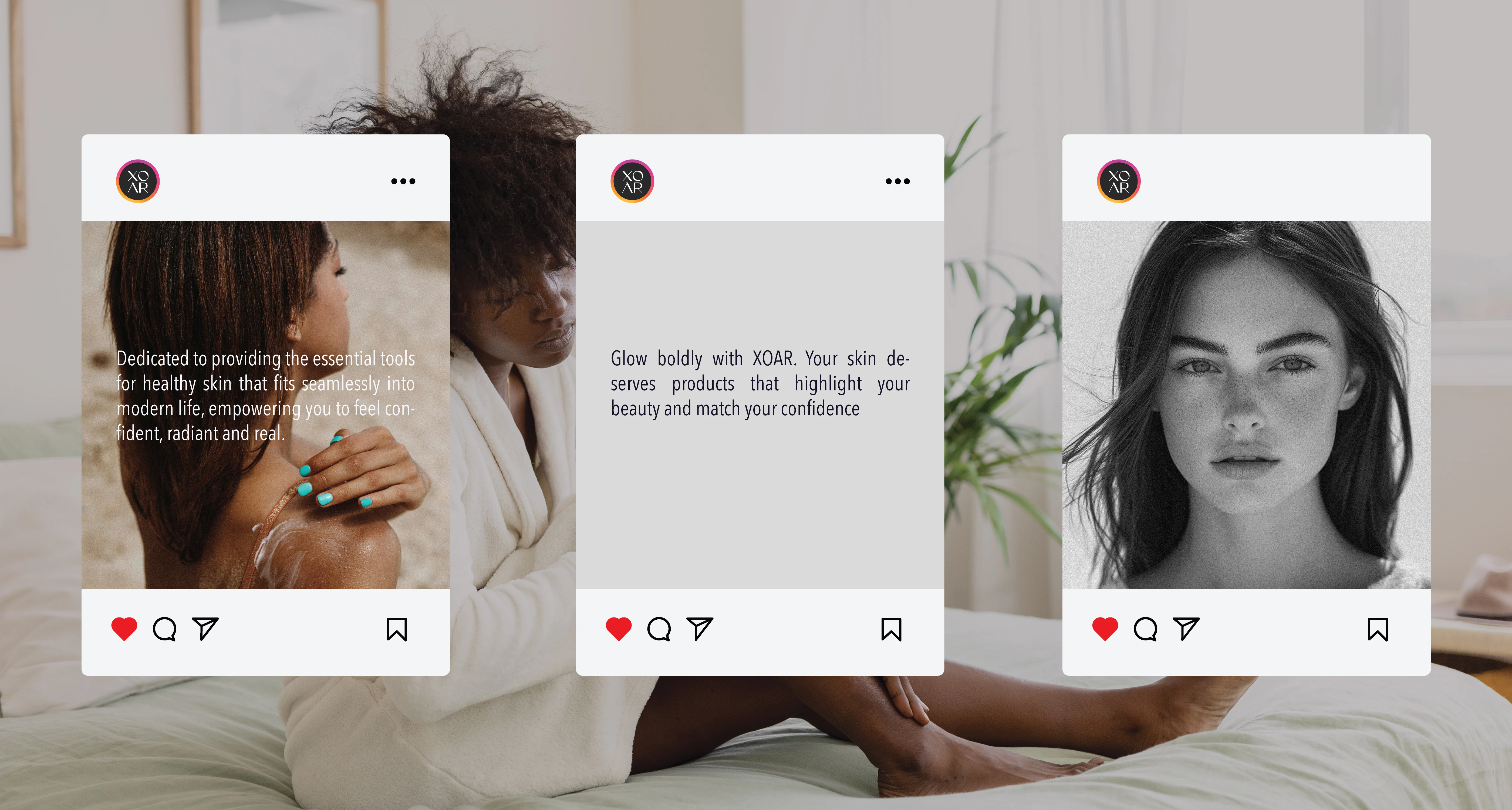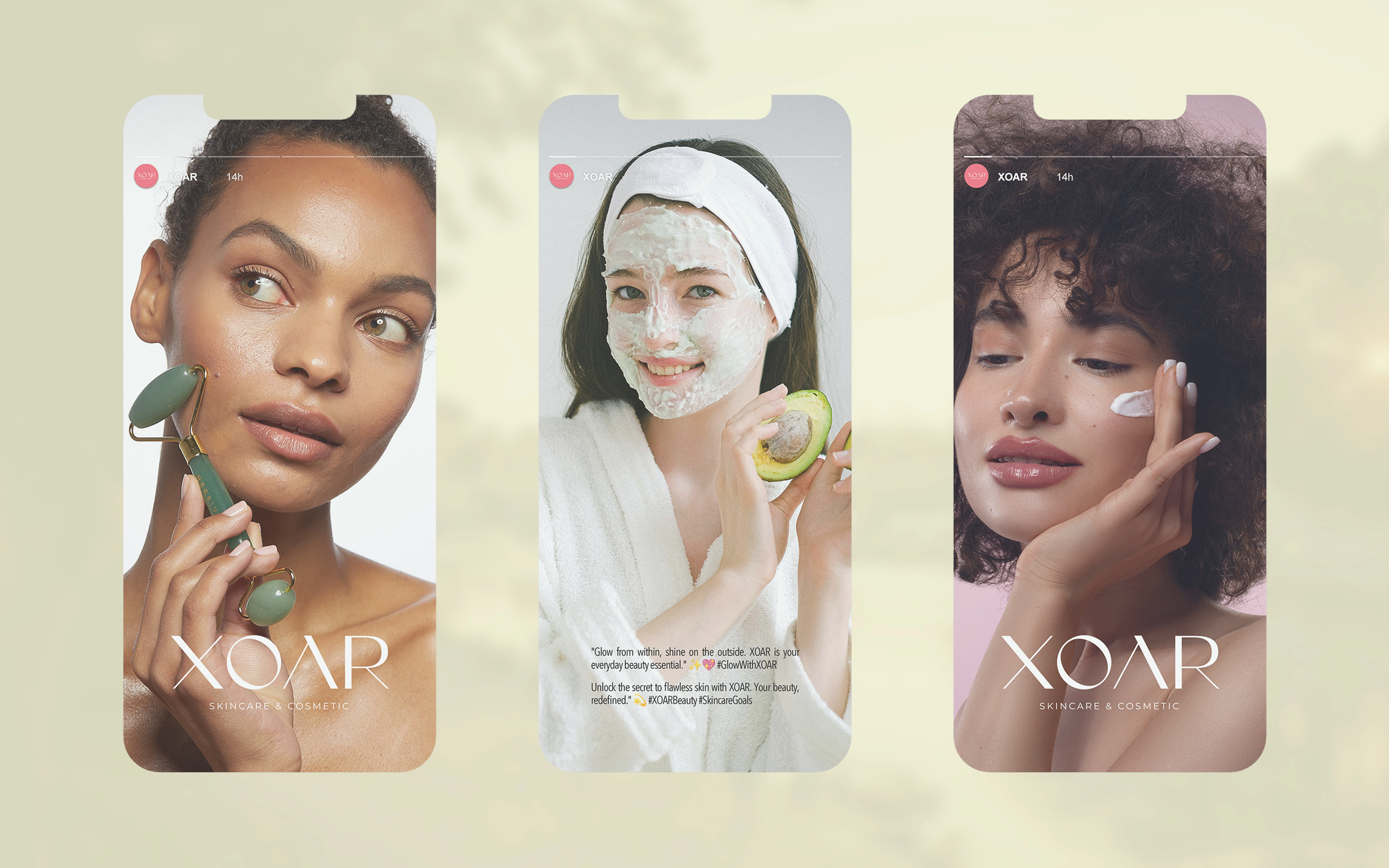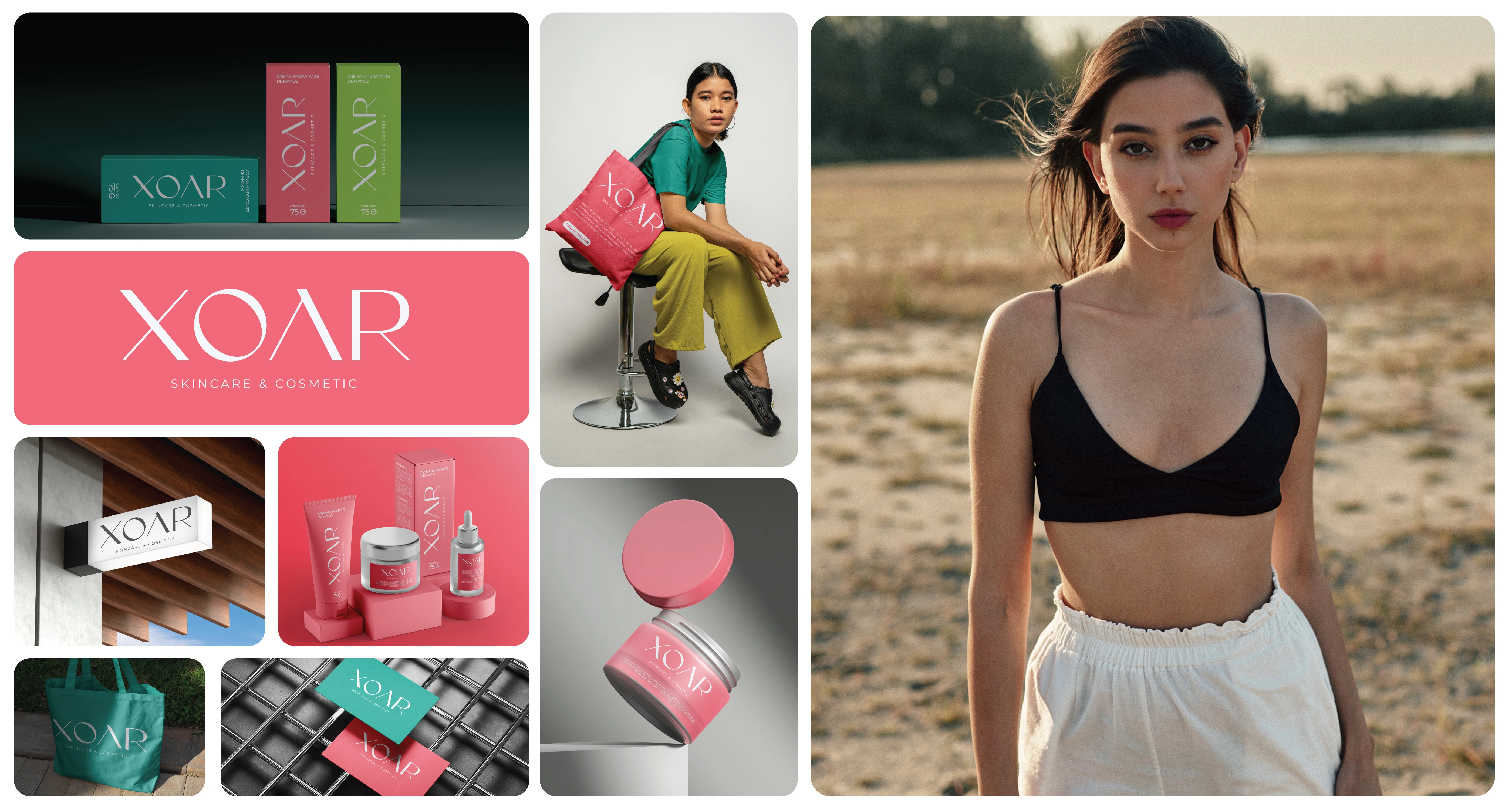 The XOAR logo, crafted as a sophisticated typography-based design, reflects the brand’s minimalist yet impactful approach to beauty. Set in warm, inviting colors, the logo embodies the essence of comfort, inclusivity, and the natural glow that the brand represents. The warm tones of the palette create a sense of trust and calm, mirroring XOAR’s dedication to nurturing and enhancing your skin with care.